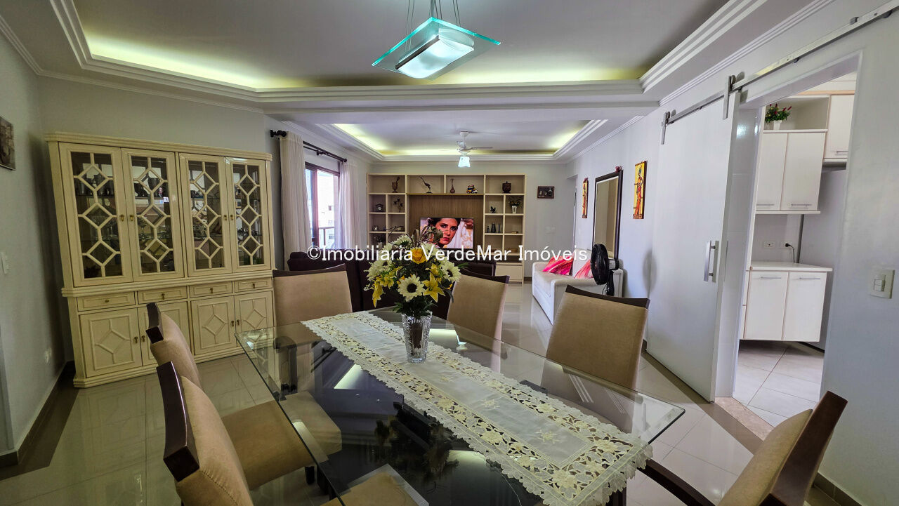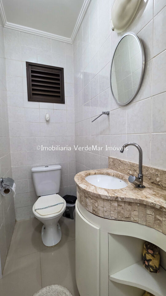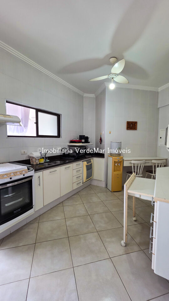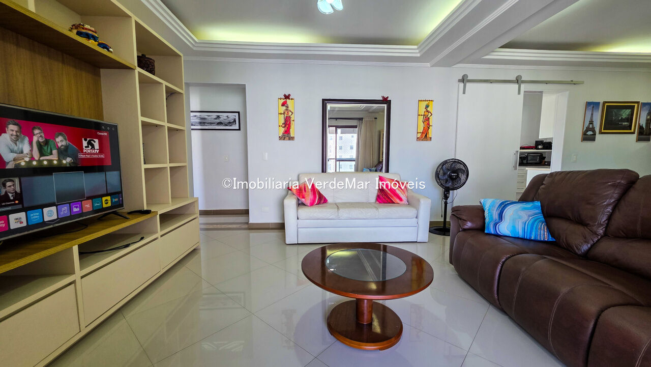 Apartamento à venda na praia das Pitangueiras em Guarujá, com 03 suítes, sala para 02 ambientes com varanda integrada, lavabo, cozinha planejada e área de serviços + dependência de empregada reversível com banheiro.