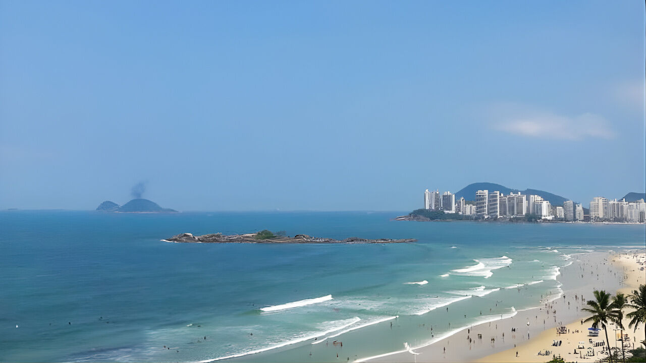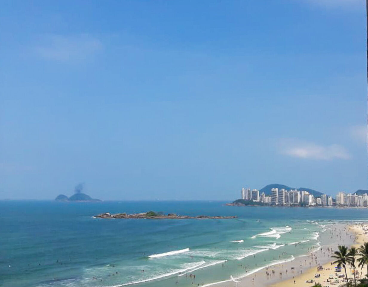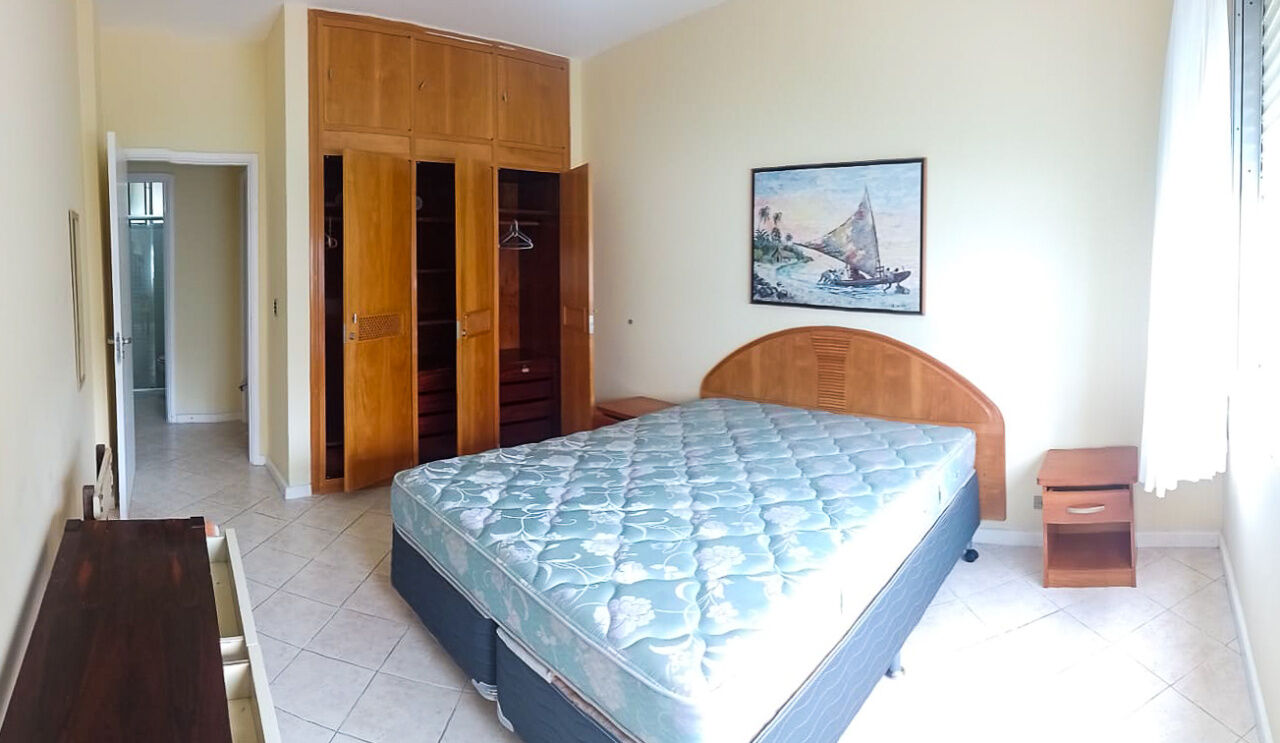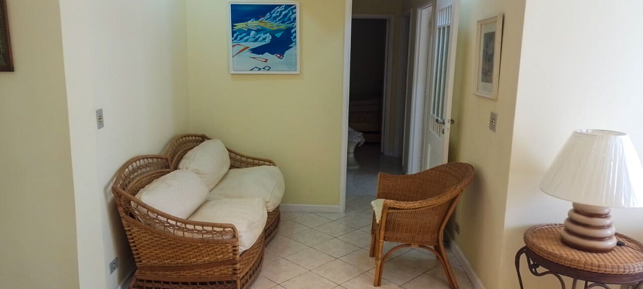Apartamento à venda na praia das Pitangueiras em Guarujá, mobiliado, com 02 dormitórios sendo 01 suíte, sala para 02 ambientes com varanda, vista para o mar, cozinha, área de serviços e dependência de empregada.