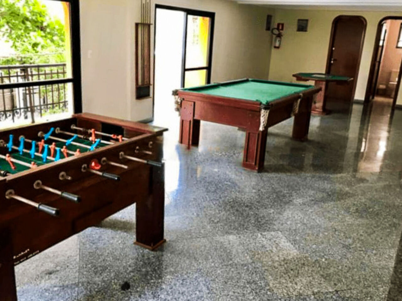 Lazer do prédio conta com piscina e cascata, churrasqueira, salão de festas e jogos, serviço de praia. Portaria 24 horas e Zeladoria.