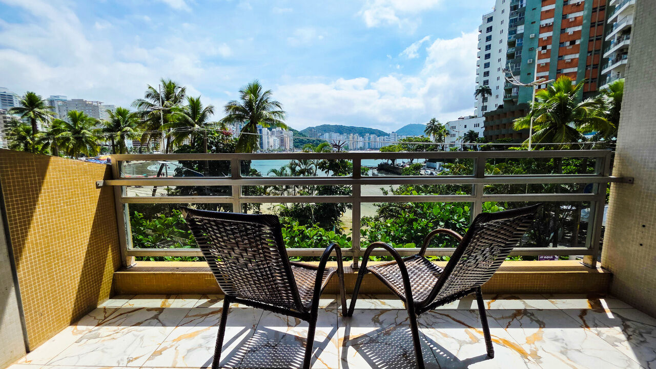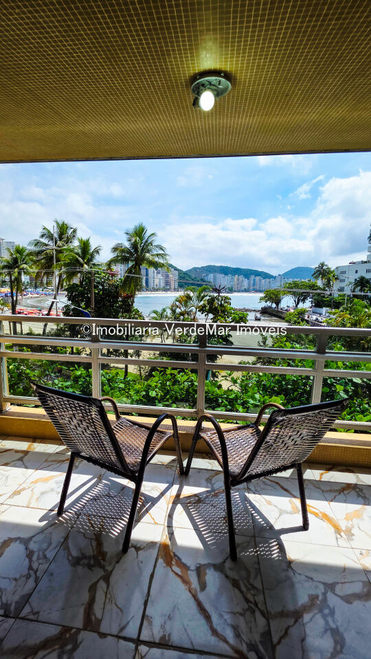Apartamento na praia das Astúrias em Guarujá, frente ao mar, mobiliado e decorado, com 3 dormitórios sendo 01 suite, sala para 2 ambientes com sacada, cozinha, lavanderia e dependência de empregada reversível
