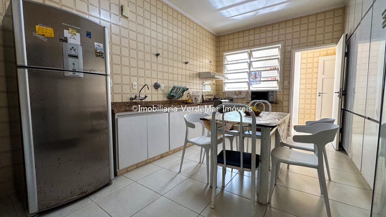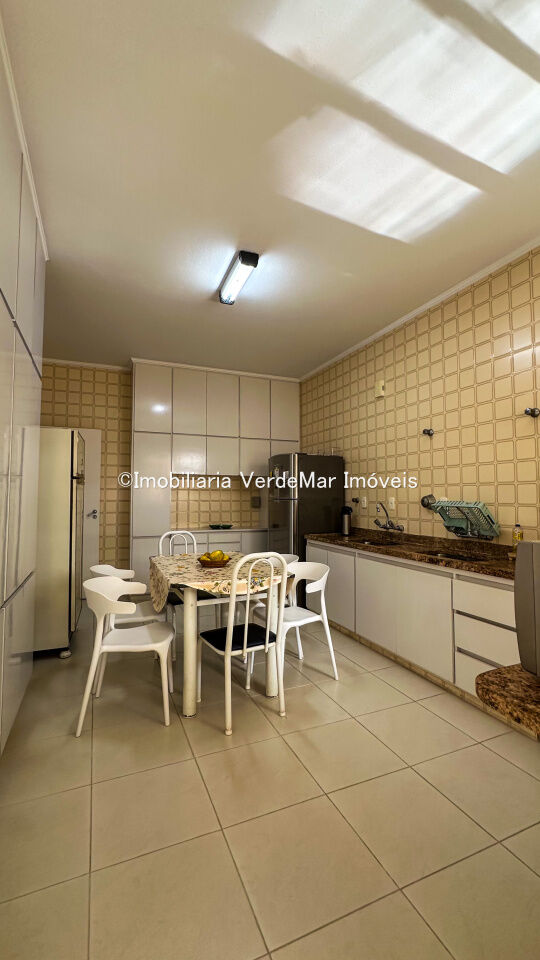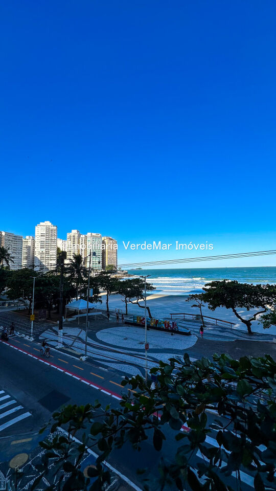 Apartamento frente à praia das Pitangueiras em Guarujá, com 04 dormitórios sendo 01 suíte, sala para 3 ambientes com ampla sacada, cozinha com armários, dependência de empregada e área de serviço com banheiro.