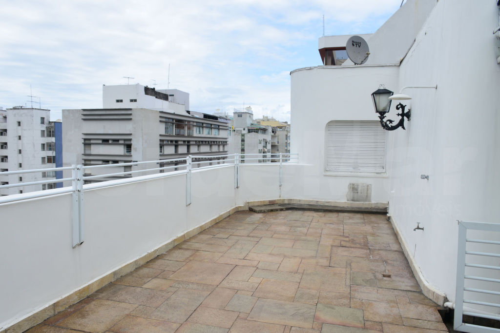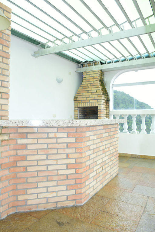 Cobertura Duplex a 100 metros da praia das Pitangueiras em Guarujá, com 03 suítes, ar condicioando split, sala para 03 ambientes com ampla sacada, cozinha, despensa, lavanderia e suíte de empregada.Lazer da cobertura com piscina, churrasqueira e solarium
