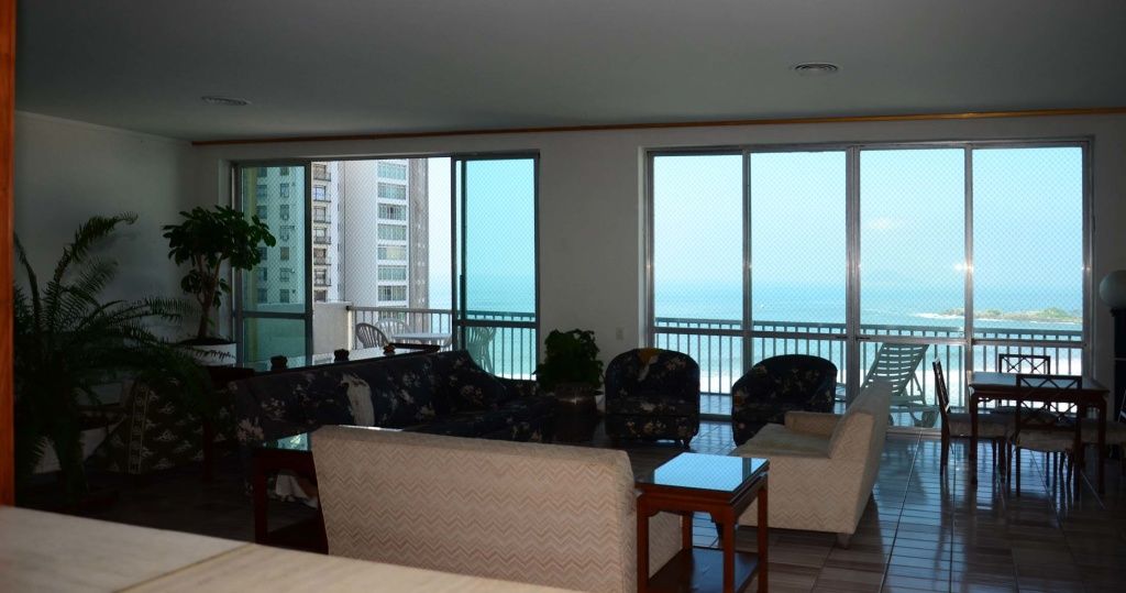 Apartamento pé na areia na praia de Pitangueiras em Guarujá, com 06 dormitórios sendo 04 suítes, ampla sala de estar, sala de jantar e sala de tv, terraço com vista frontal para o mar, cozinha com armários, lavanderia, dependência de empregada e garagem com quarto de motorista.