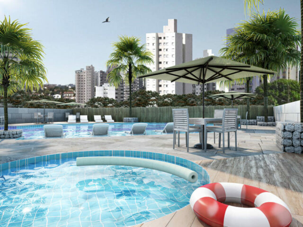 Lazer conta com piscina adulto e infantil, deck/solarium, sauna, salão de festas, salão de jogos, academia, brinquedoteca e playground.