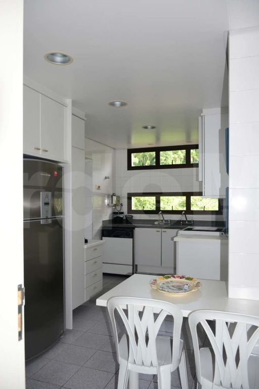 Apartamento reformado no condomínio Sorocotuba III na praia do Sorocotuba em Guarujá, 4 suítes, sala para 2 ambientes com lareira, ampla varanda com churrasqueira, cozinha com armários, lavabo e dependência de empregada.