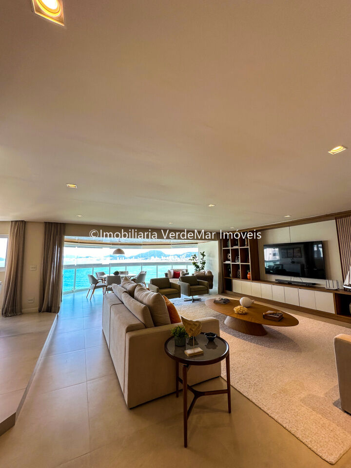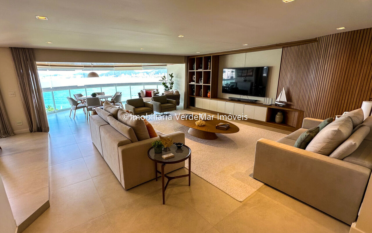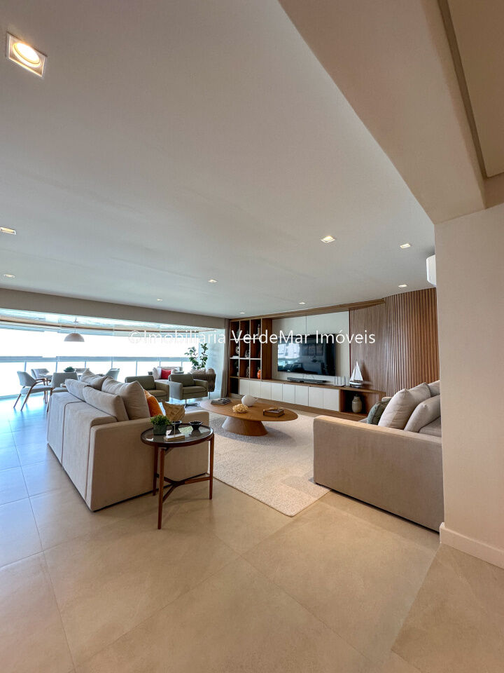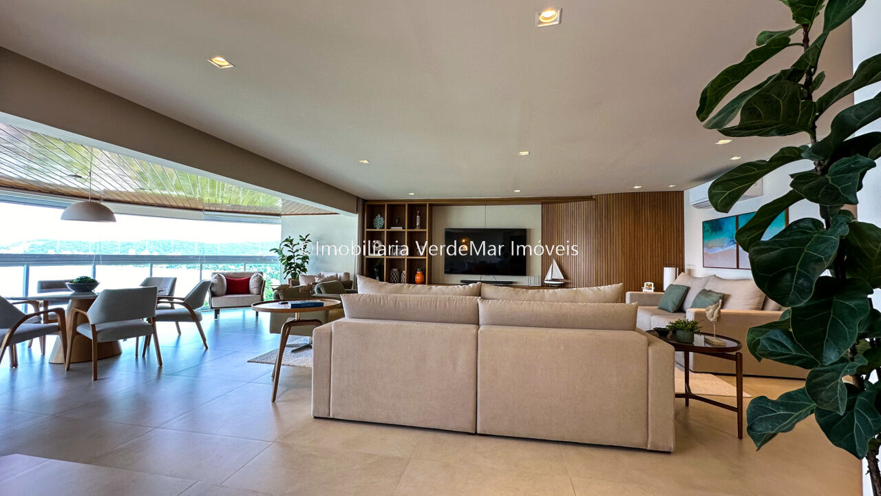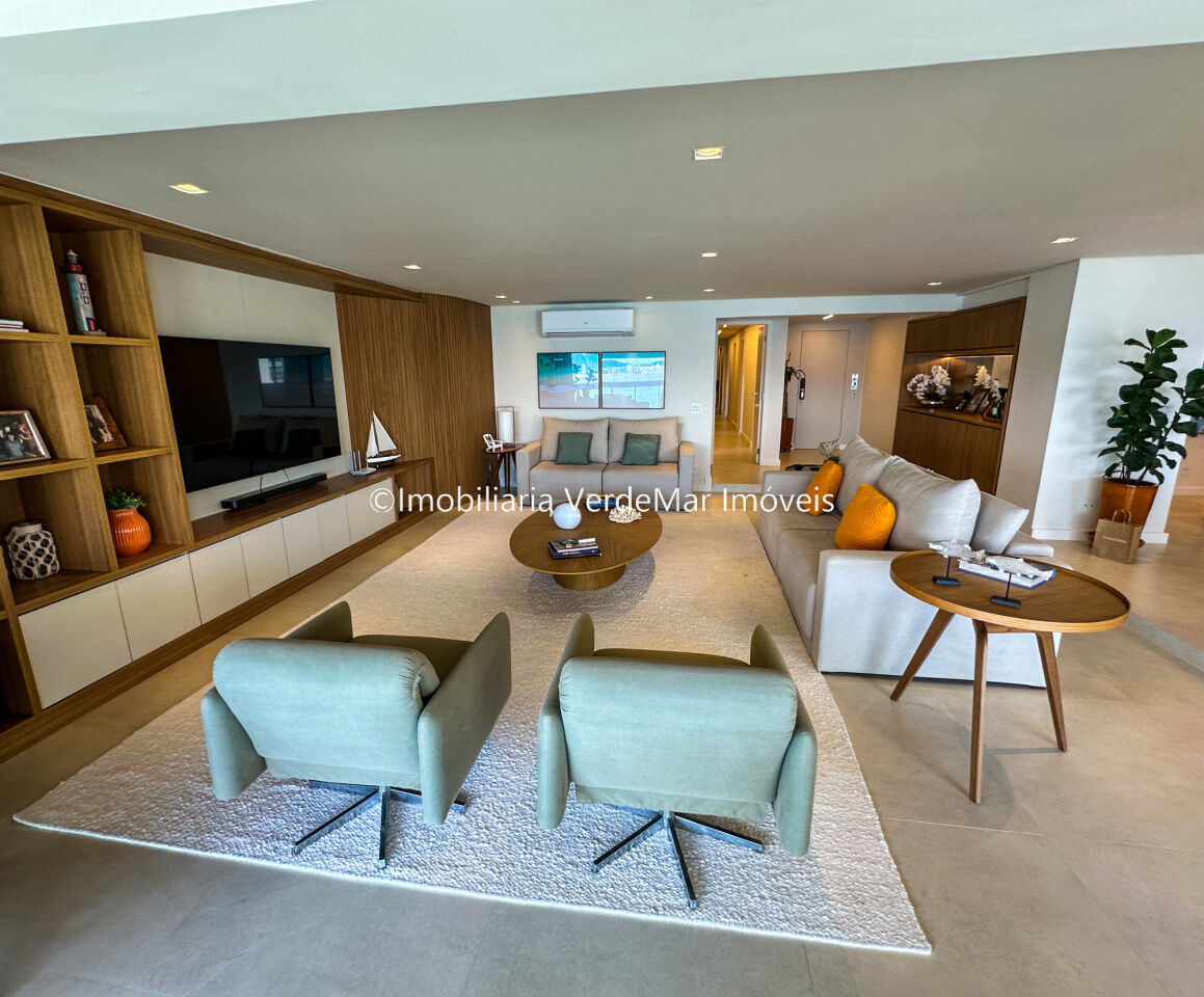 Apartamento decorado à venda no condomínio Tortugas na praia da Enseada no Guarujá, vista mar, com 4 suítes sendo a máster com closet, sala para 3 ambientes com sacada, copa, cozinha planejada e dependência de empregada reversível.