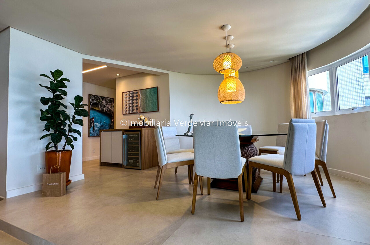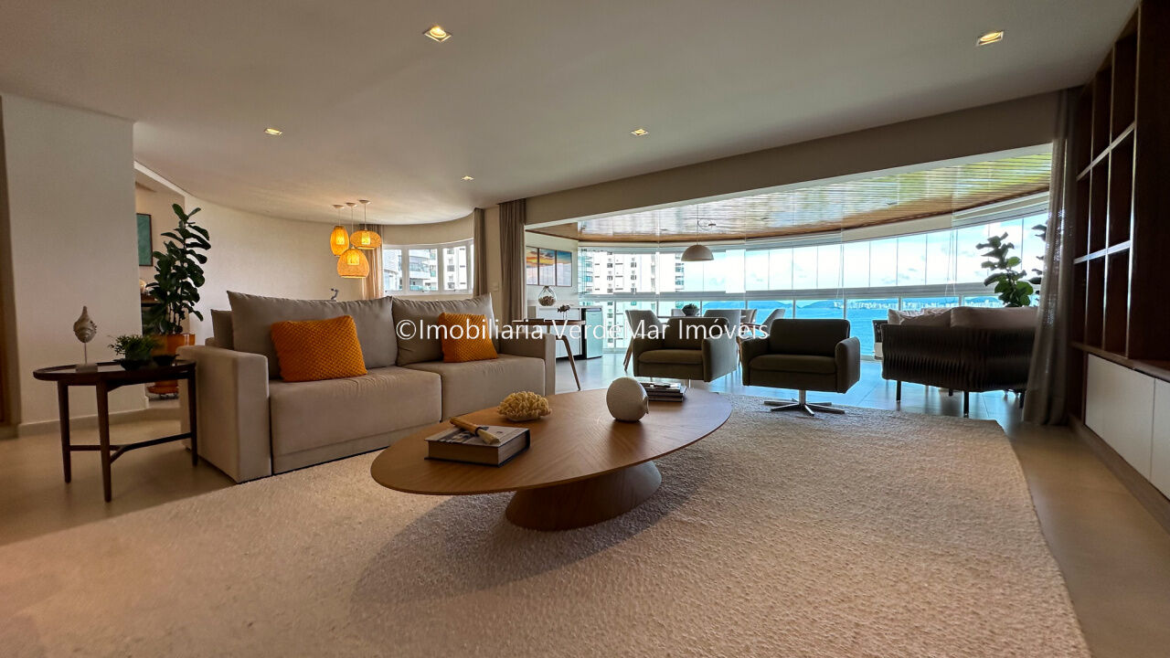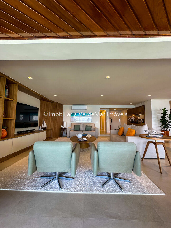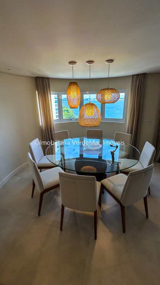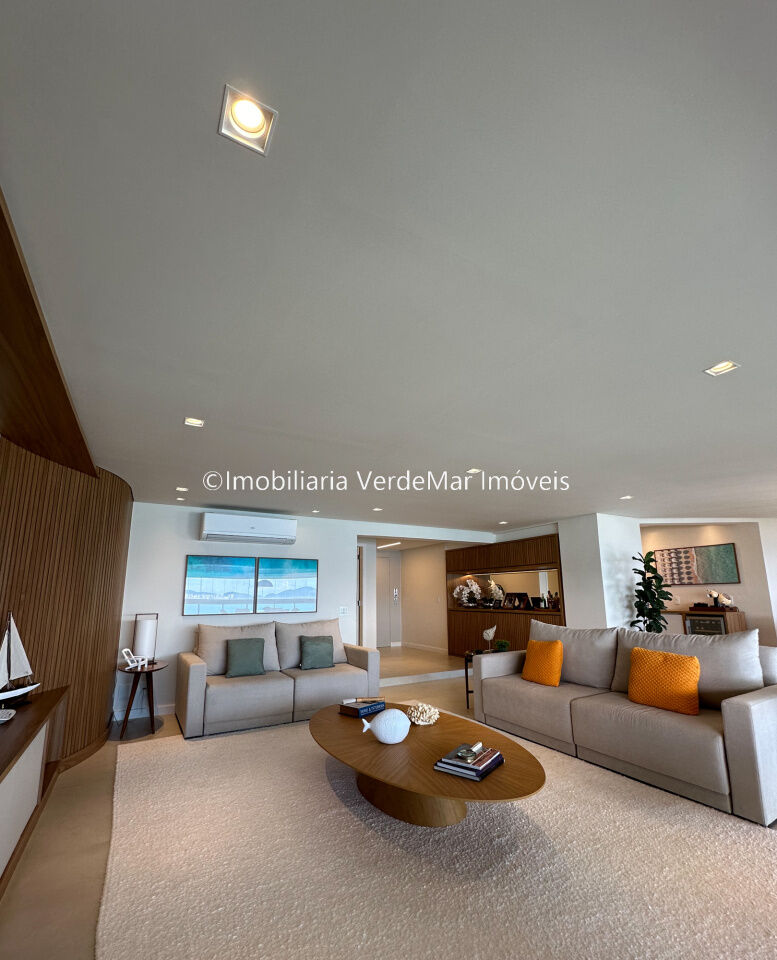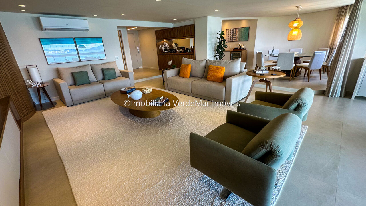 Apartamento decorado à venda no condomínio Tortugas na praia da Enseada no Guarujá, vista mar, com 4 suítes sendo a máster com closet, sala para 3 ambientes com sacada, copa, cozinha planejada e dependência de empregada reversível.
