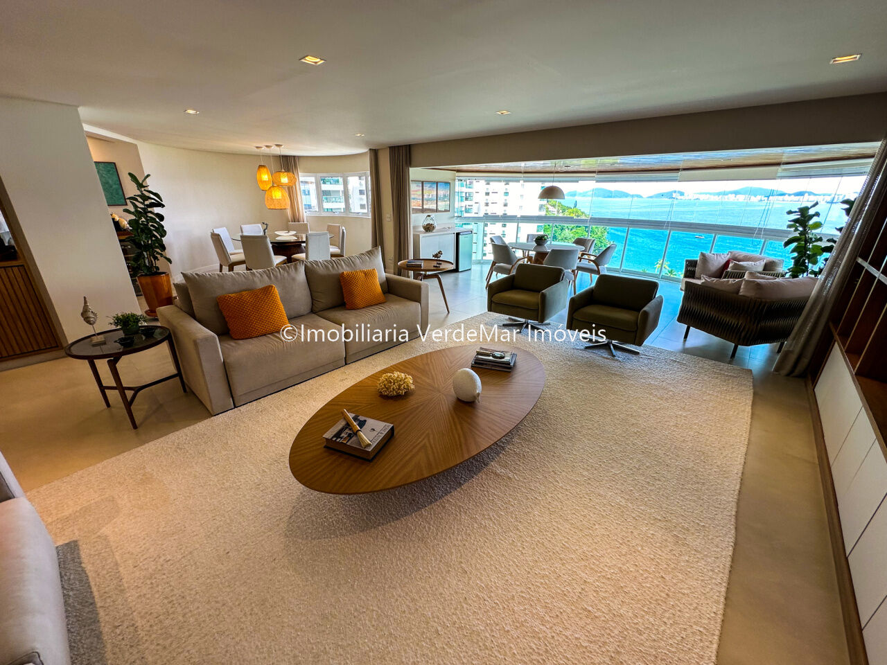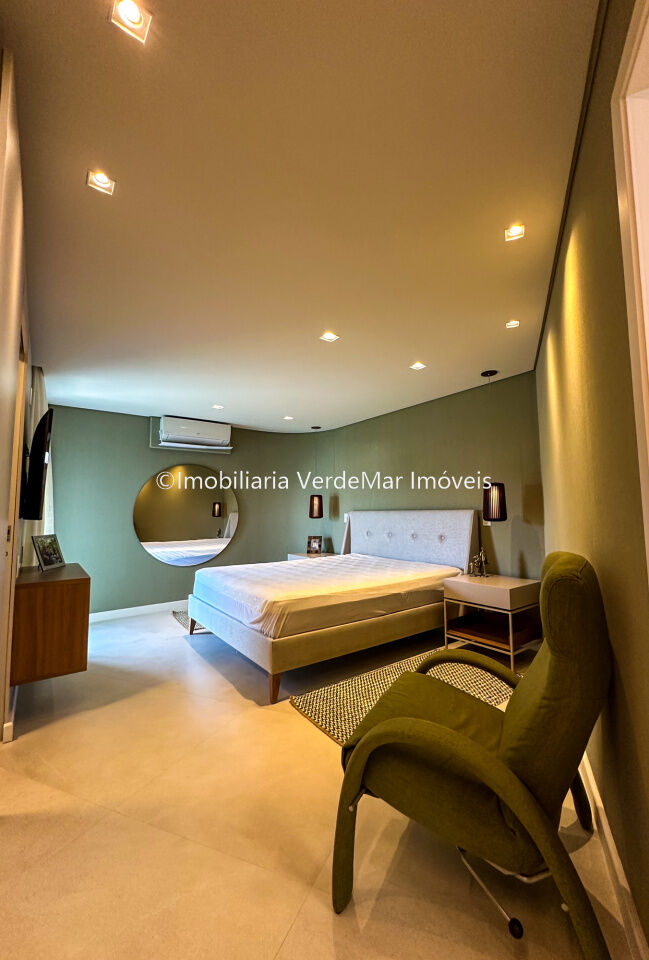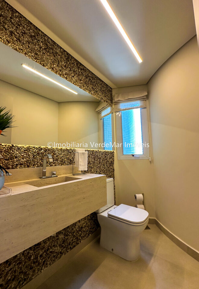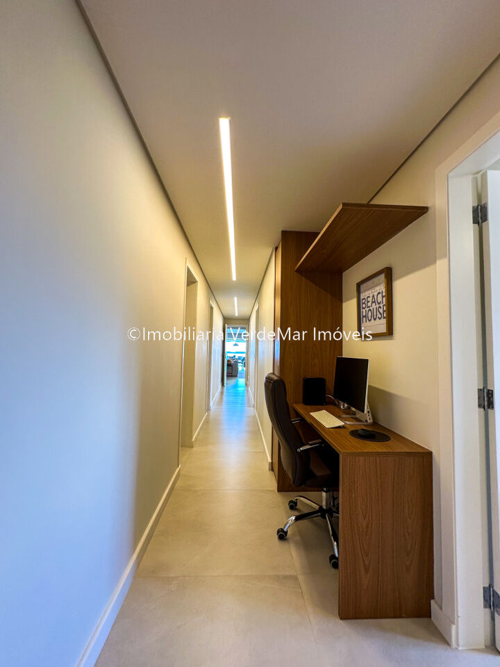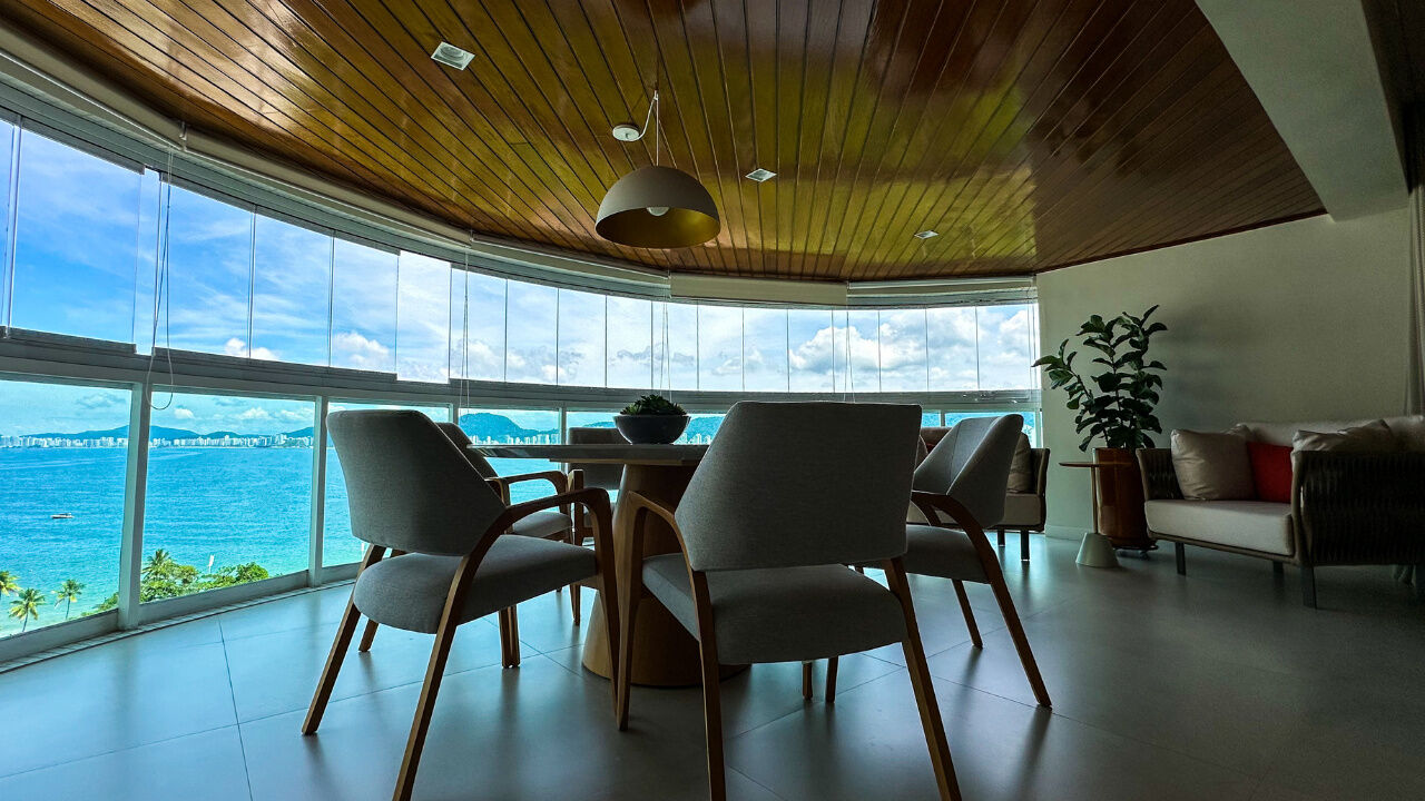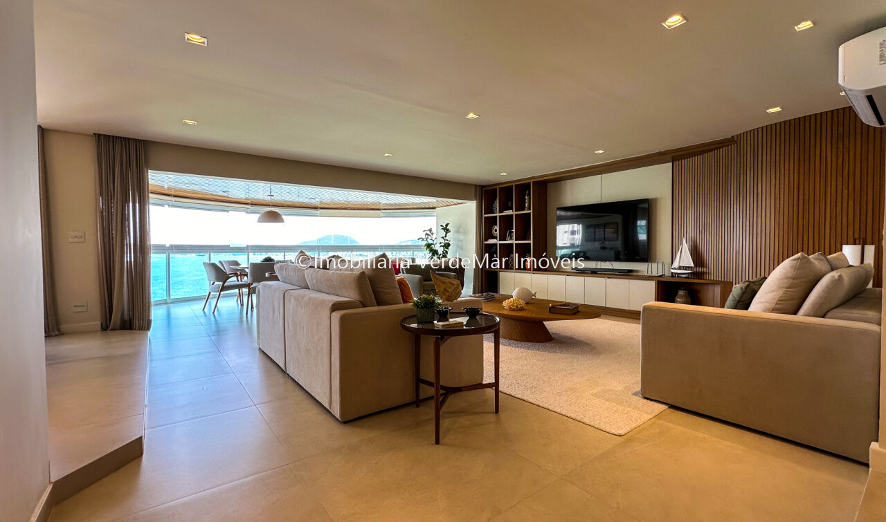 Apartamento decorado à venda no condomínio Tortugas na praia da Enseada no Guarujá, vista mar, com 4 suítes sendo a máster com closet, sala para 3 ambientes com sacada, copa, cozinha planejada e dependência de empregada reversível.