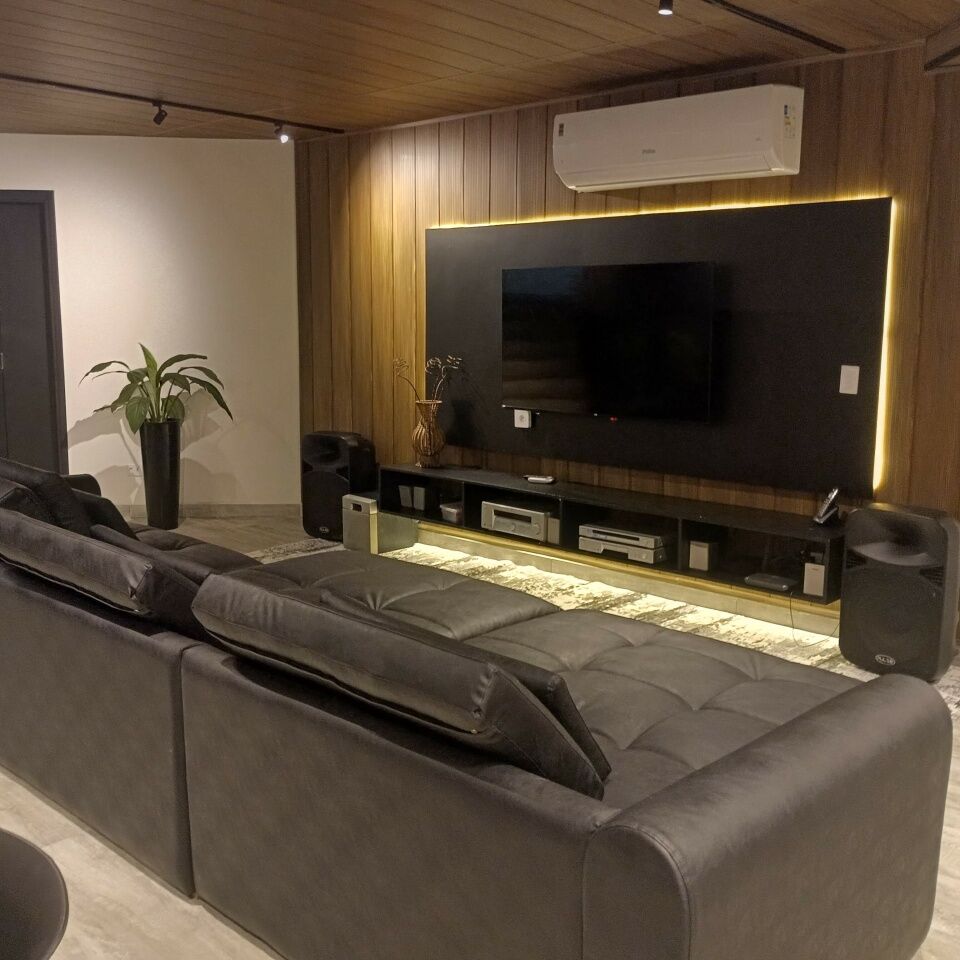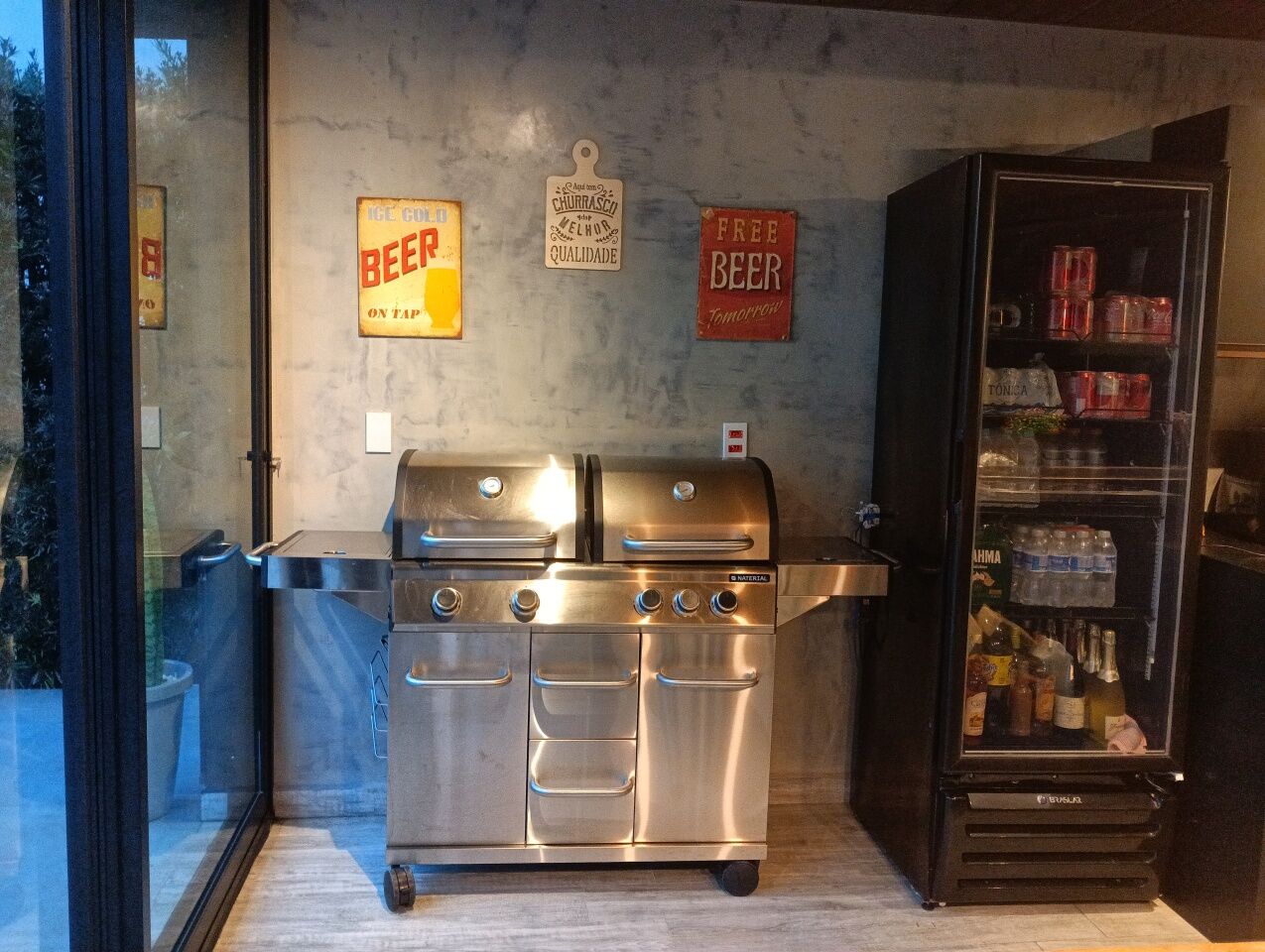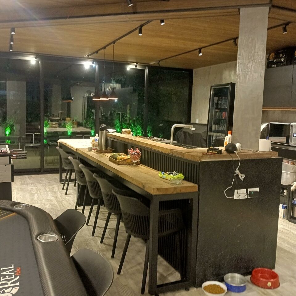 sala de tv, sala de estar, lavabo que serve a área social e a piscina. Cozinha integrada com área gourmet, churrasqueira dupla de carrinho a gás estilo americana, jardim vertical, piscina, lavanderia ampla, garagem para 2 carros. Pavimento do 1º andar com 3 suítes e um espaço para leitura. Pavimento 2º andar com 1 suíte ampla, e espaço de manutenção das caixas d'água e boiler.