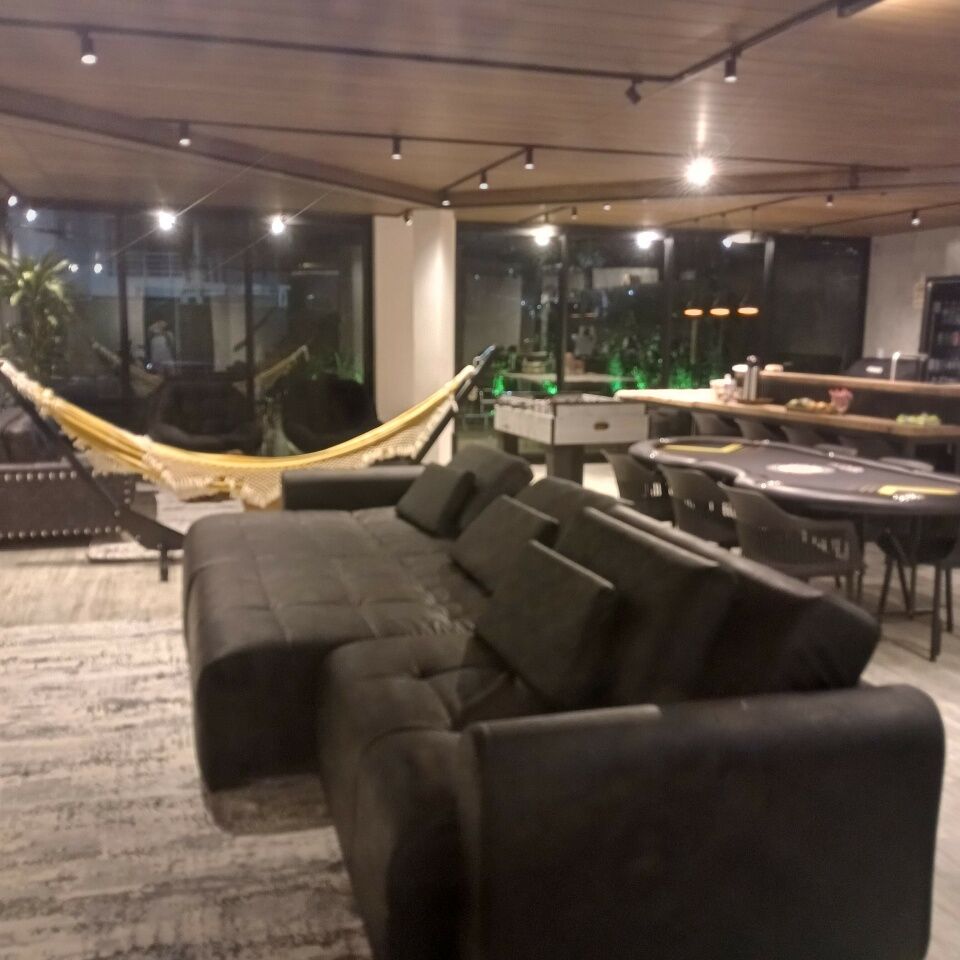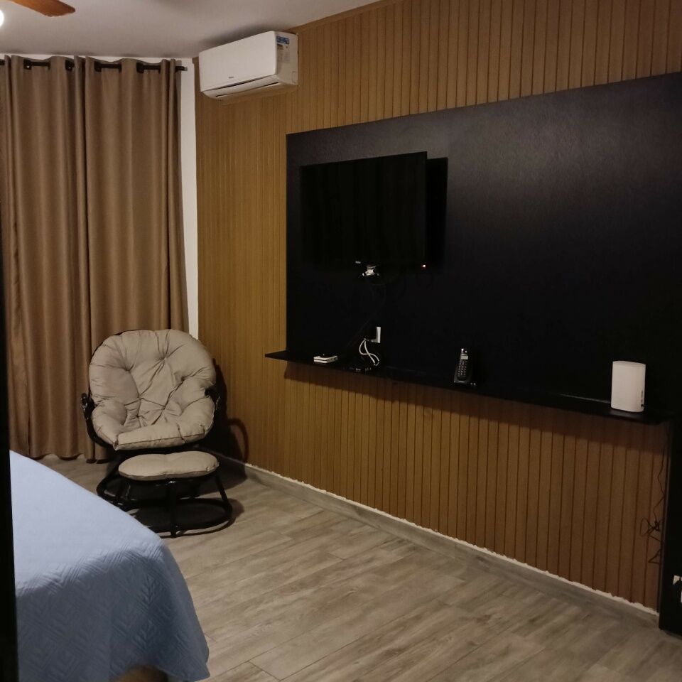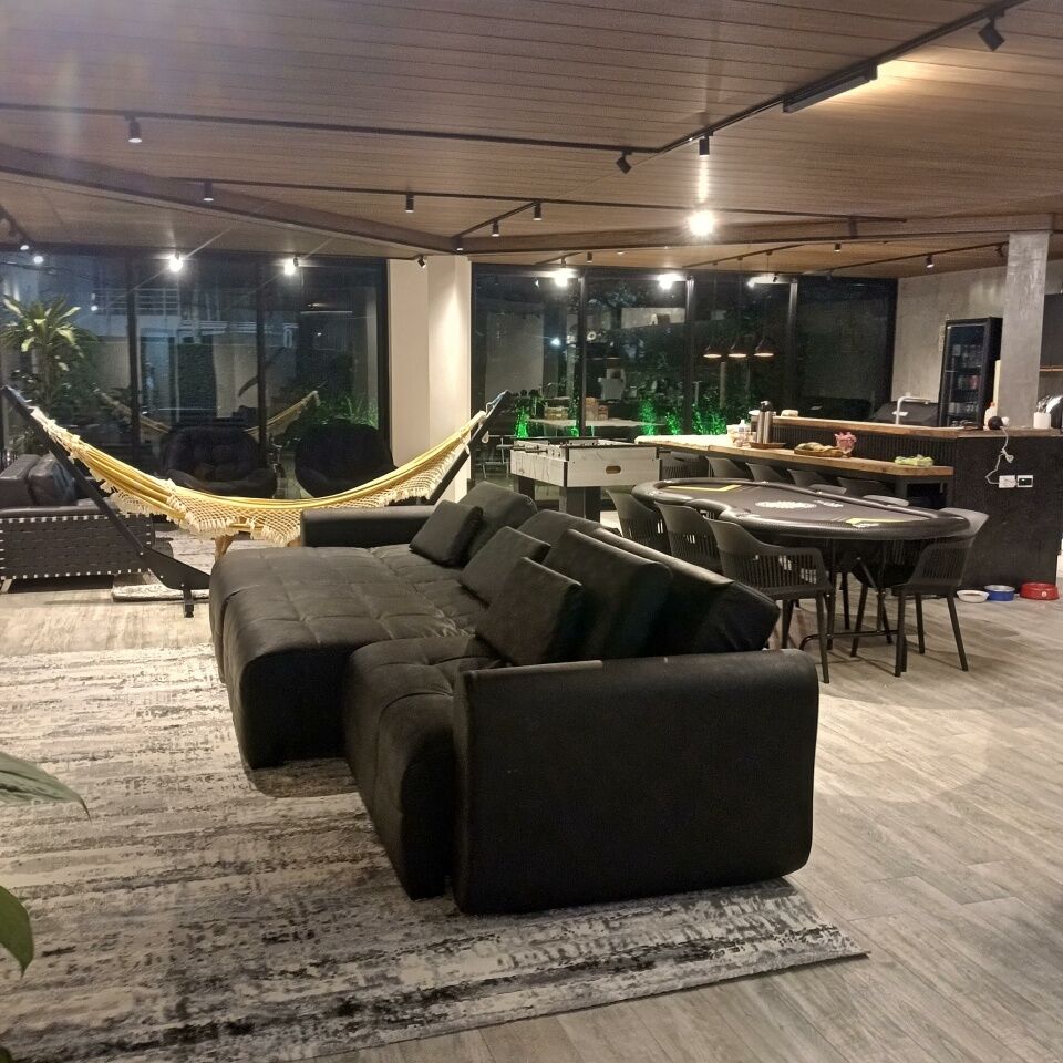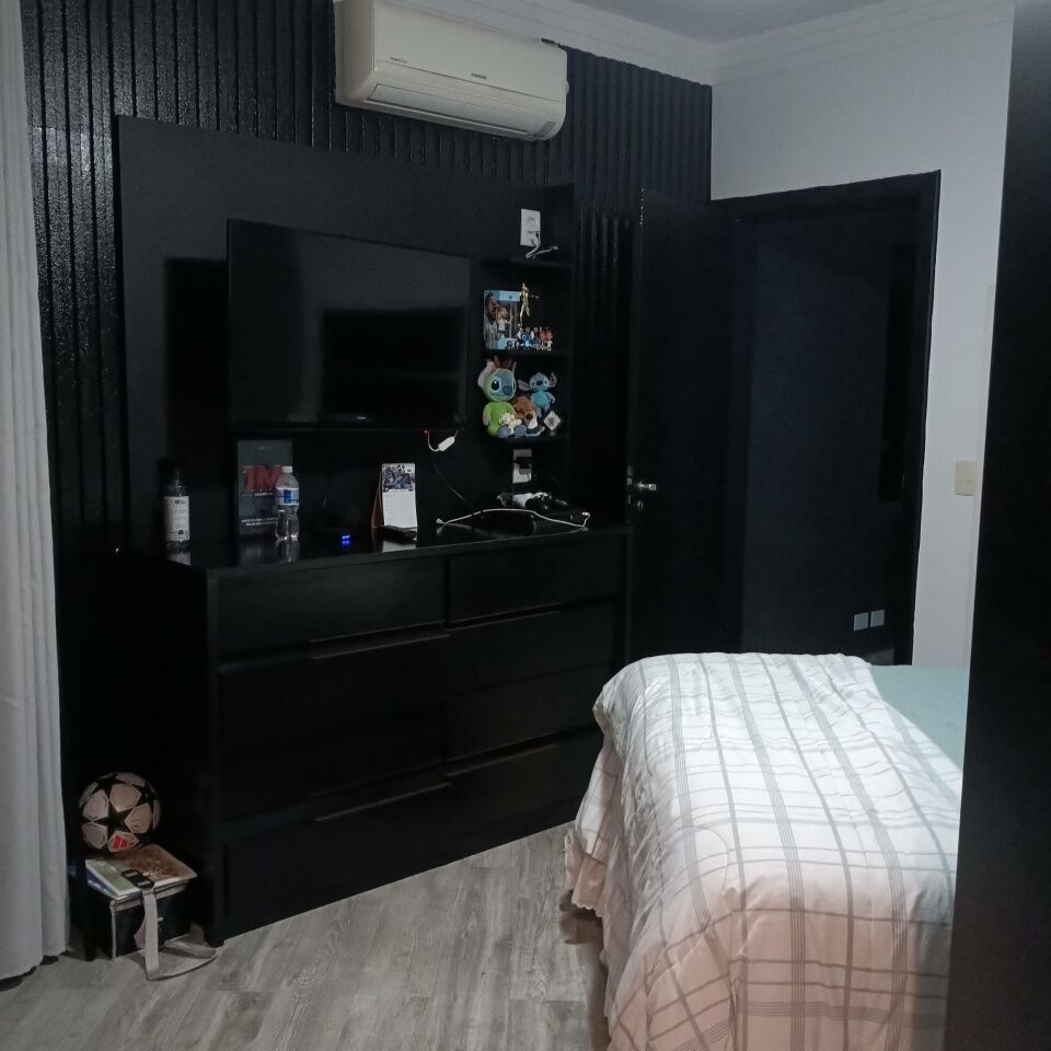 sala de tv, sala de estar, lavabo que serve a área social e a piscina. Cozinha integrada com área gourmet, churrasqueira dupla de carrinho a gás estilo americana, jardim vertical, piscina, lavanderia ampla, garagem para 2 carros. Pavimento do 1º andar com 3 suítes e um espaço para leitura. Pavimento 2º andar com 1 suíte ampla, e espaço de manutenção das caixas d'água e boiler.
