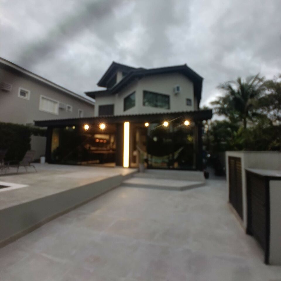 Casa à venda no condomínio Hanga Roa em Bertioga, mobiliada e decorada, com 6 suítes sendo 2 no térreo. Pavimento térreo todo em conceito aberto, integrando
