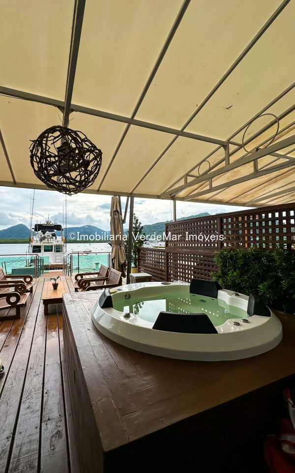 Lazer do condomínio com área de recreação, piscina adulto infantil, espaço gourmet com churrasqueira, restaurante com amplo deck frente ao canal, academia, mini quadra, vaga para barco no pier e jet sky no seco, portaria 24 horas e serviço de zeladoria.