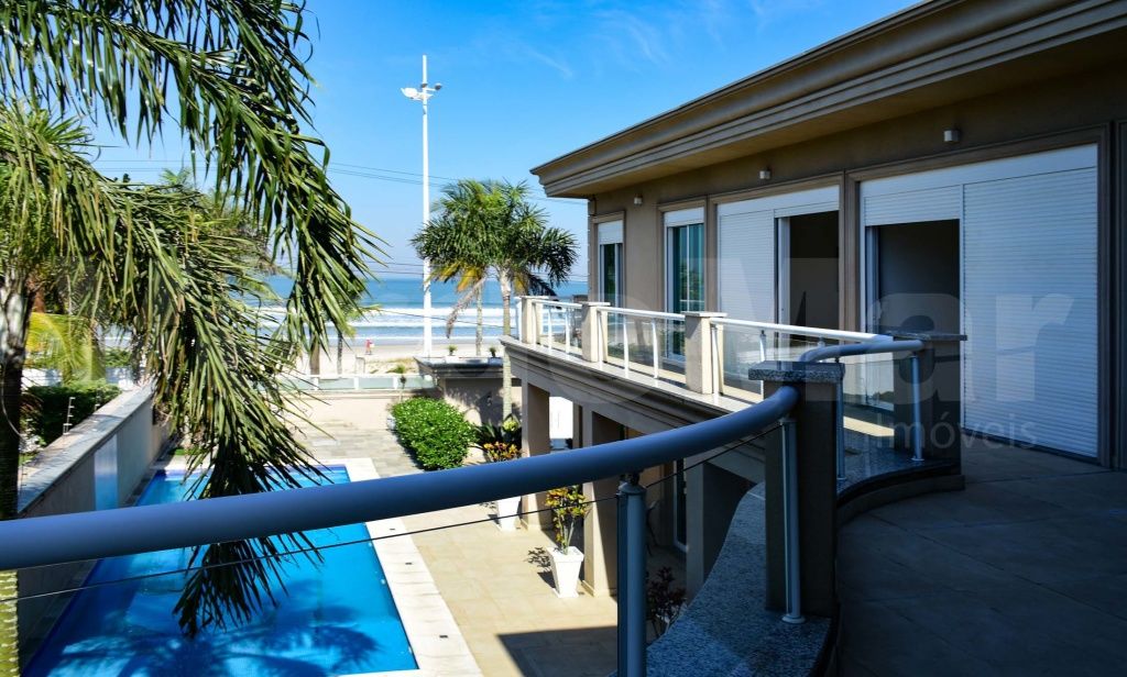 Casa frente ao mar na praia da Enseada em Guarujá, mobiliada e decorada, com 06 suítes, varanda com vista para o mar, sala para 03 ambientes, lareira, Home Theater, lavabo, cozinha planejada, despensa, lavanderia e casa de caseiro completa com 02 quartos.