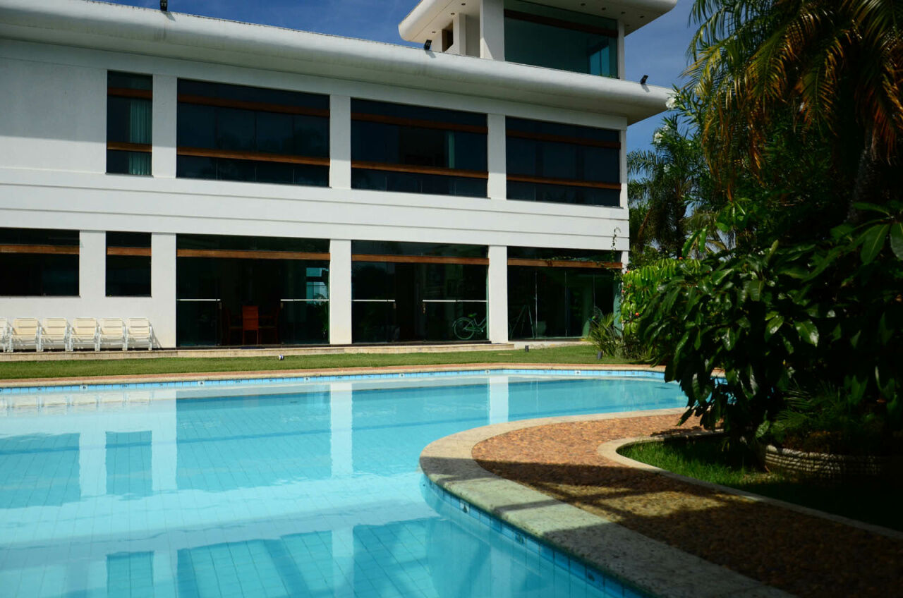 Lazer com jardim, piscina com cascata e amplo espaço gourmet com churrasqueira.