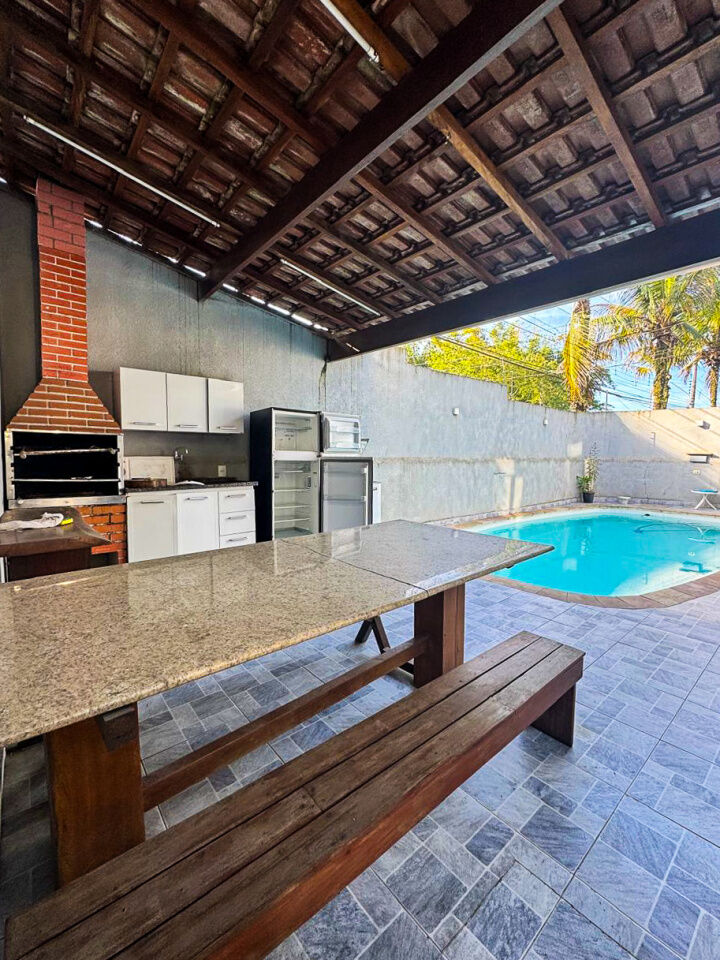 O paisagismo no bairro e o espaço generoso ao ar livre completam o cenário ideal para quem busca uma casa de praia com personalidade e requinte.