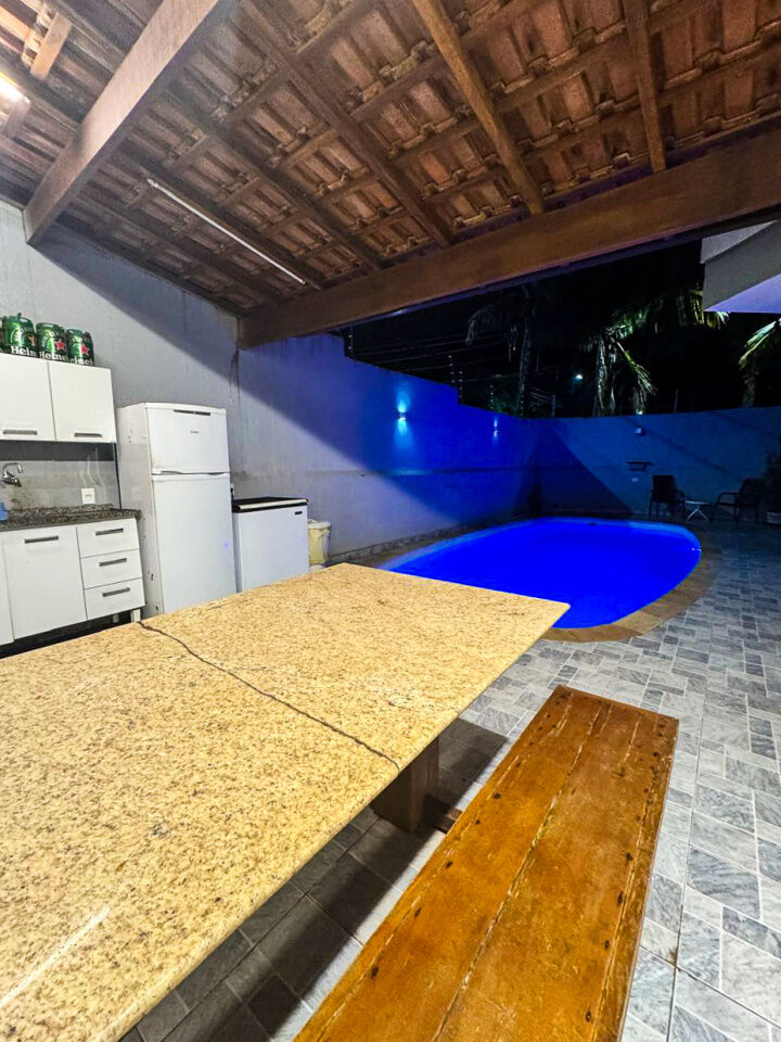 Lazer com piscina, e espaço gourmet com churrasqueira.