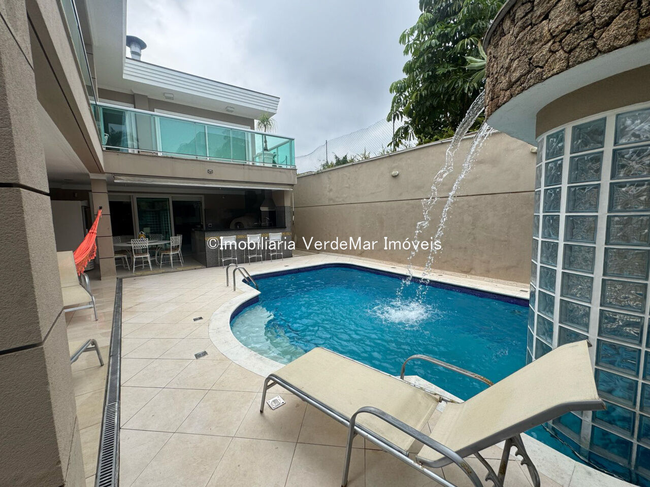 Casa a 50 metros da praia da Enseada em Guarujá, mobiliada, com 7 dormitórios sendo suítes, sala para 2 ambientes (estar e jantar), varanda e lavabo, mezanino com lareira e jogos, cozinha planejada, lavanderia e casa de caseiros.