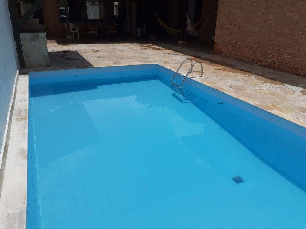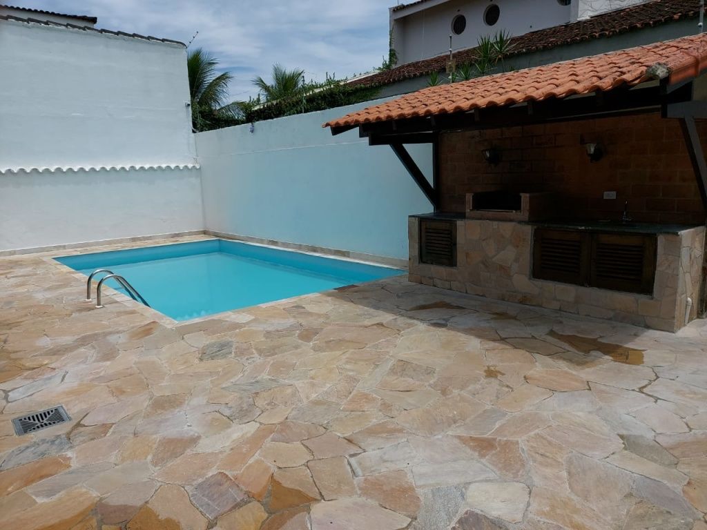Lazer com piscina e churrasqueira.