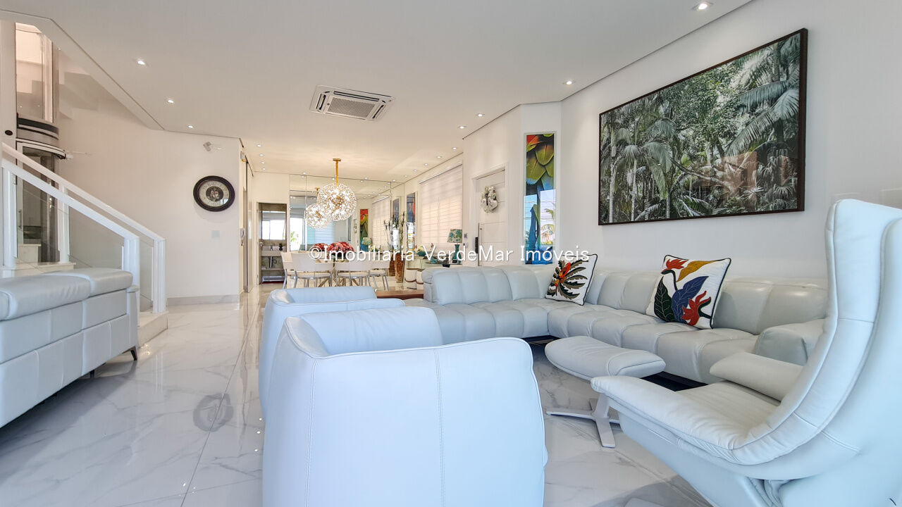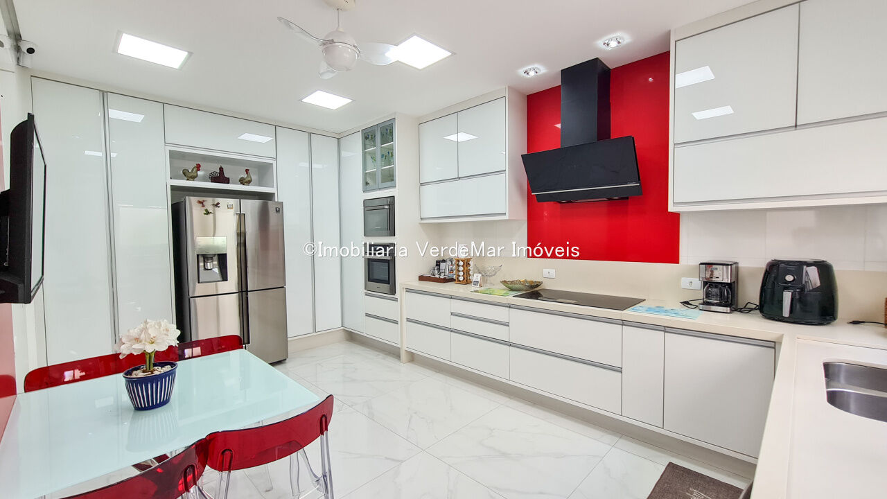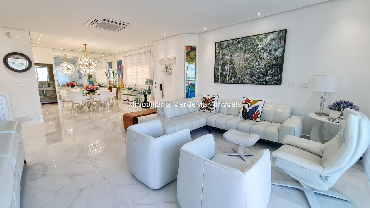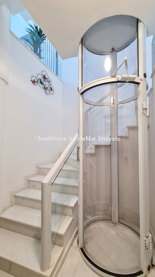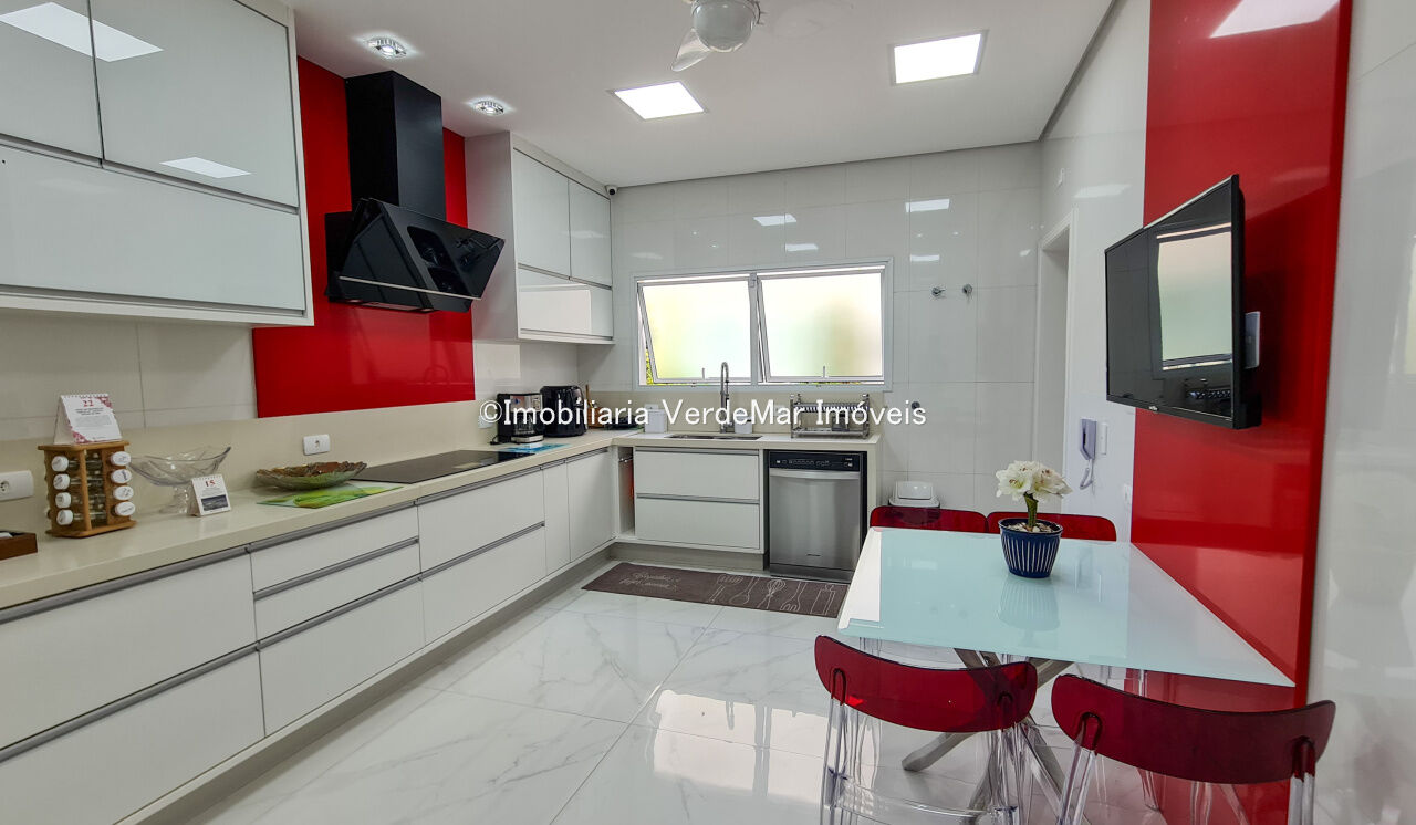 Casa frente a praia da Enseada em Guarujá, mobiliada, com 5 suítes, sala para 3 ambientes com ar condicionado, cozinha planejada, lavabo, área de serviço, e dependência de empregada. Lazer da casa com piscina aquecida e churrasqueira.