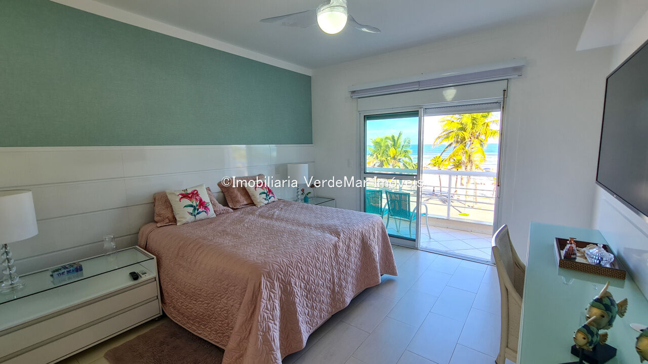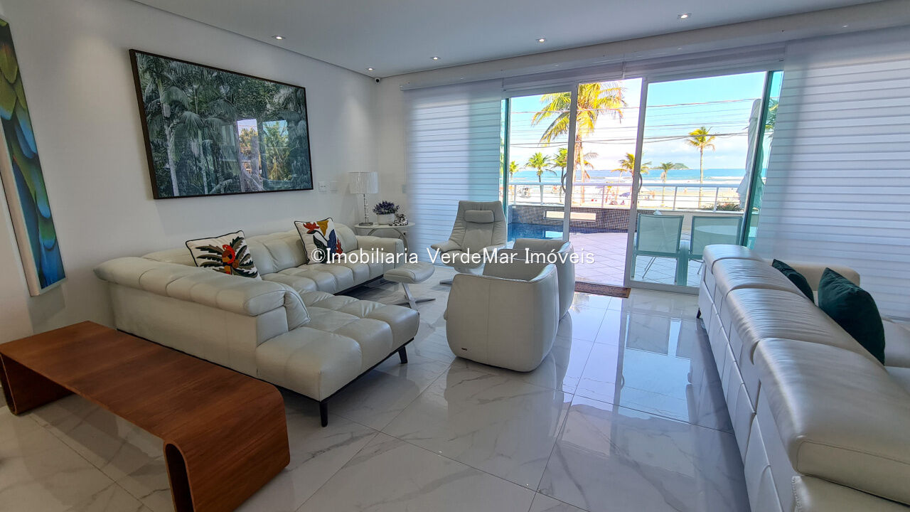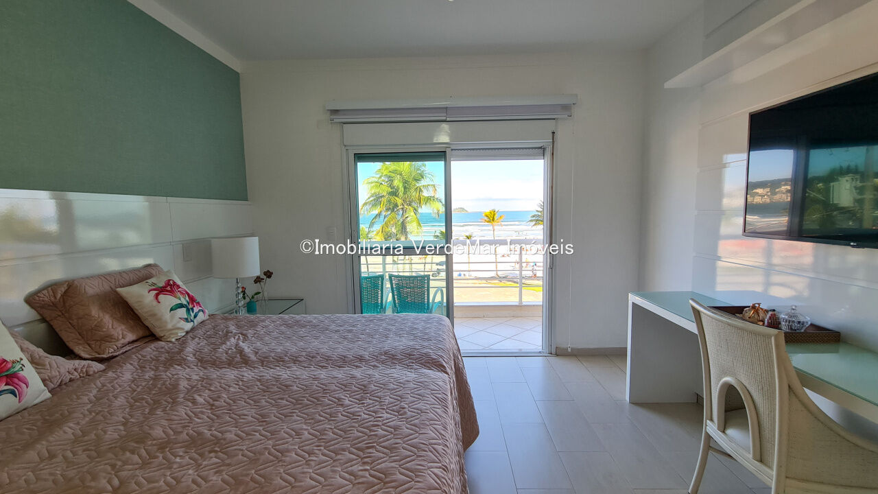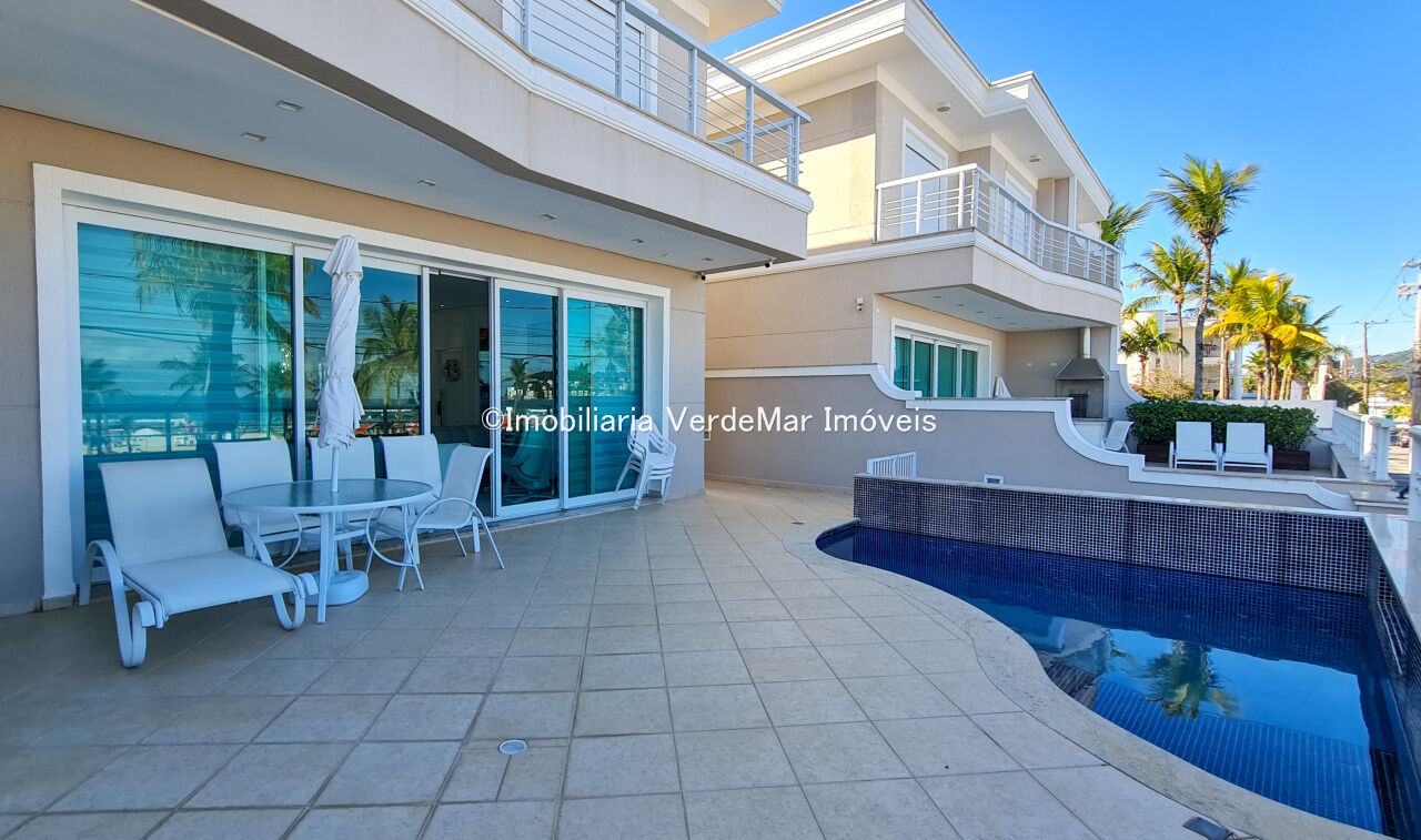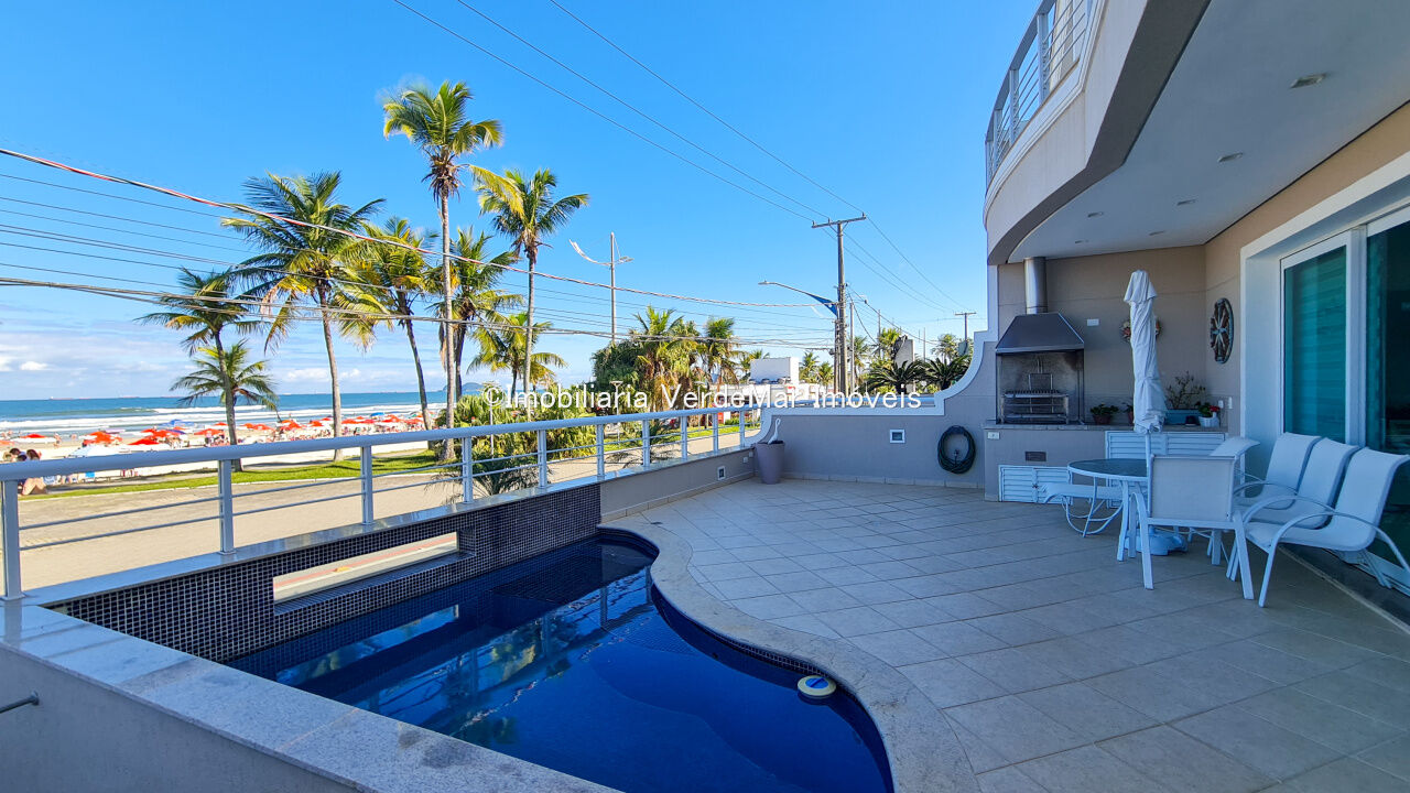 Casa frente a praia da Enseada em Guarujá, mobiliada, com 5 suítes, sala para 3 ambientes com ar condicionado, cozinha planejada, lavabo, área de serviço, e dependência de empregada. Lazer da casa com piscina aquecida e churrasqueira.