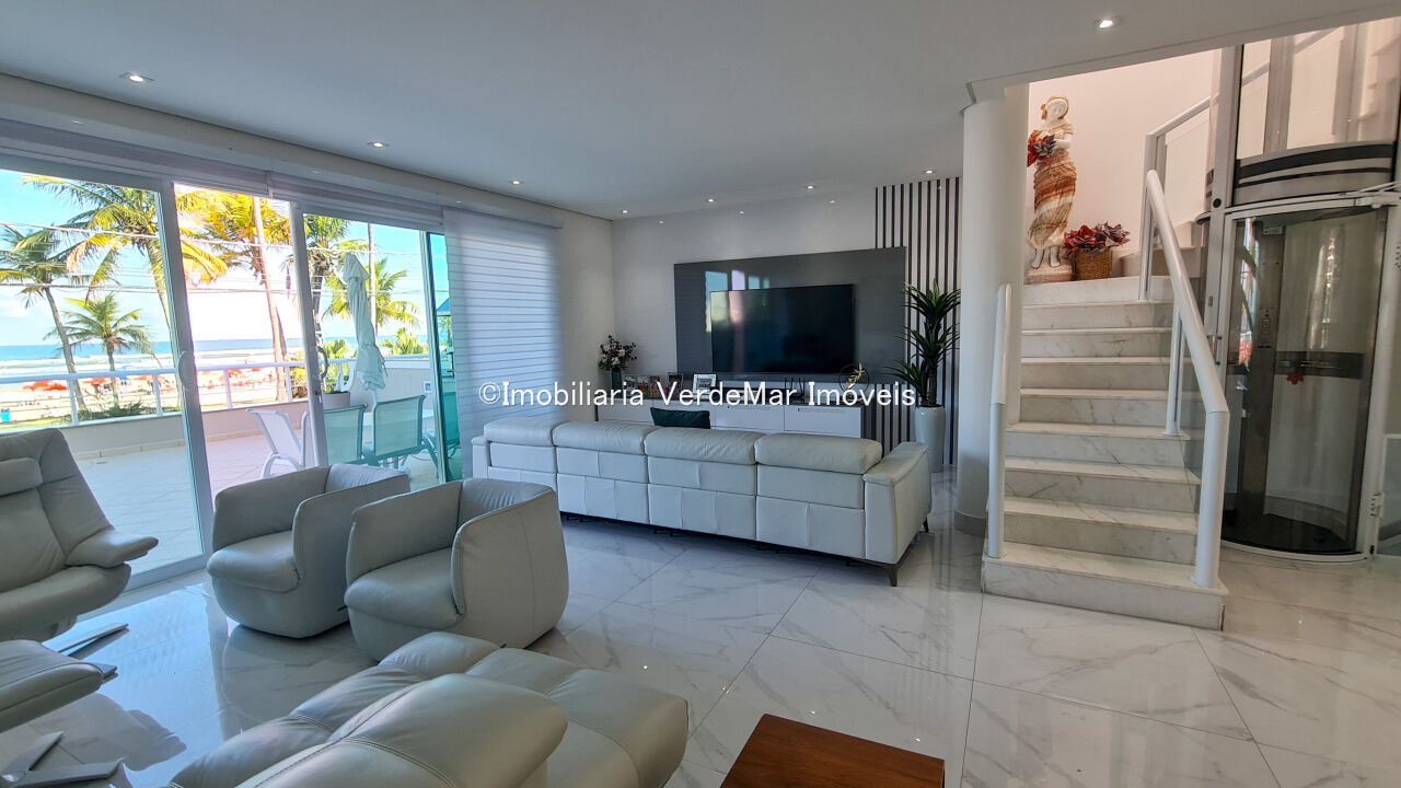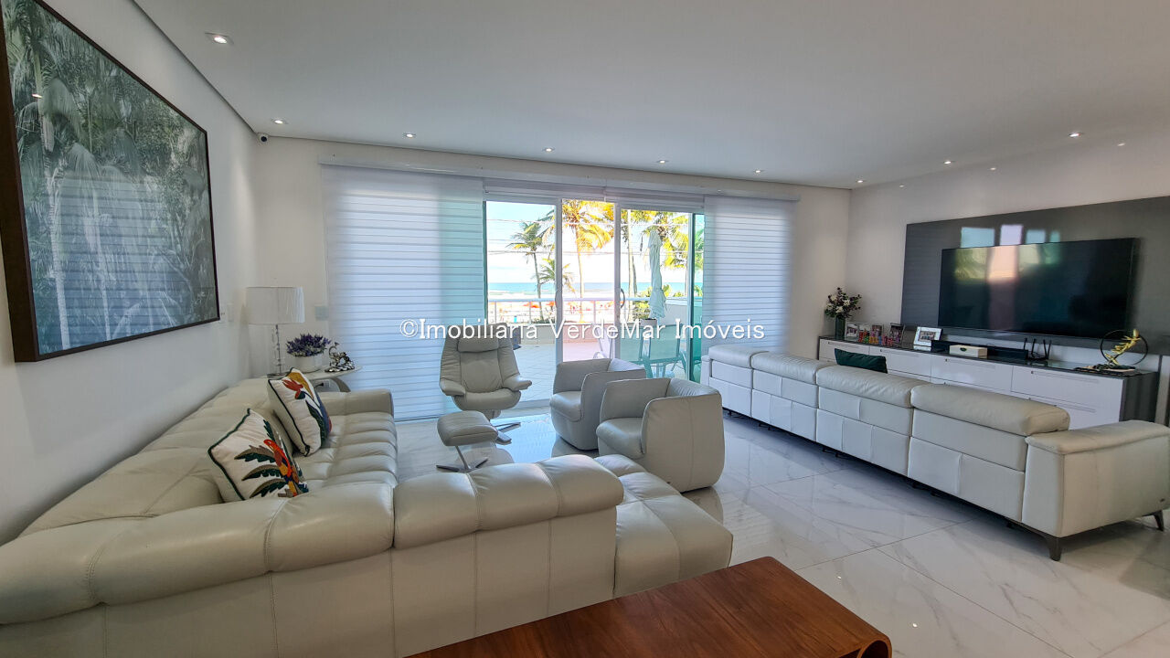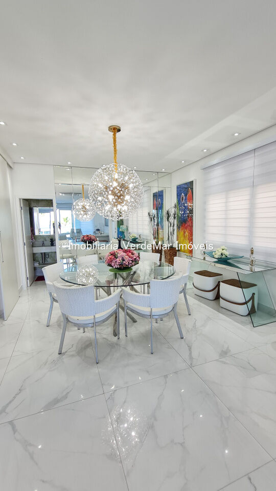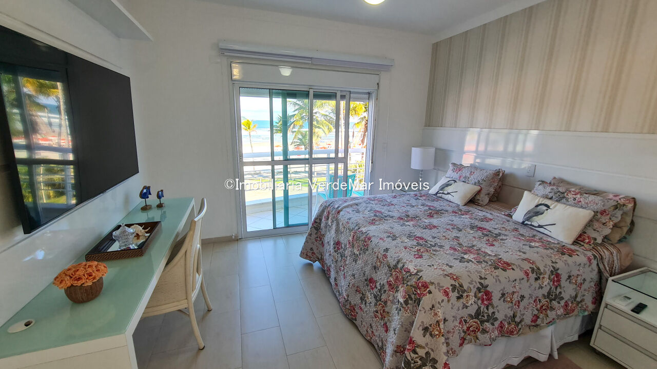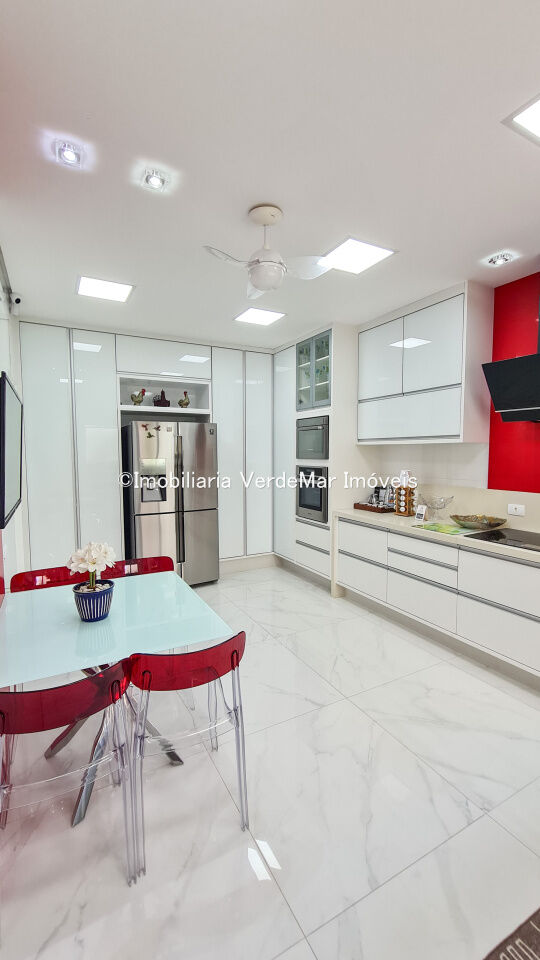 Casa frente a praia da Enseada em Guarujá, mobiliada, com 5 suítes, sala para 3 ambientes com ar condicionado, cozinha planejada, lavabo, área de serviço, e dependência de empregada. Lazer da casa com piscina aquecida e churrasqueira.