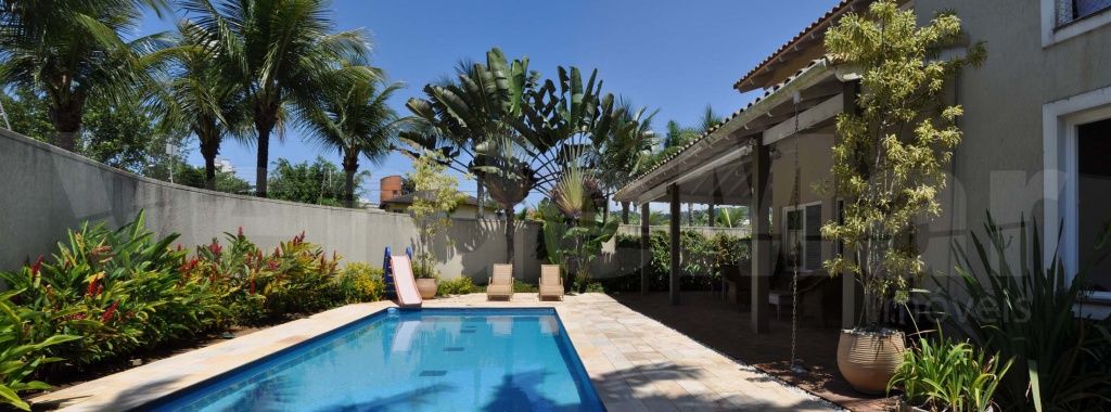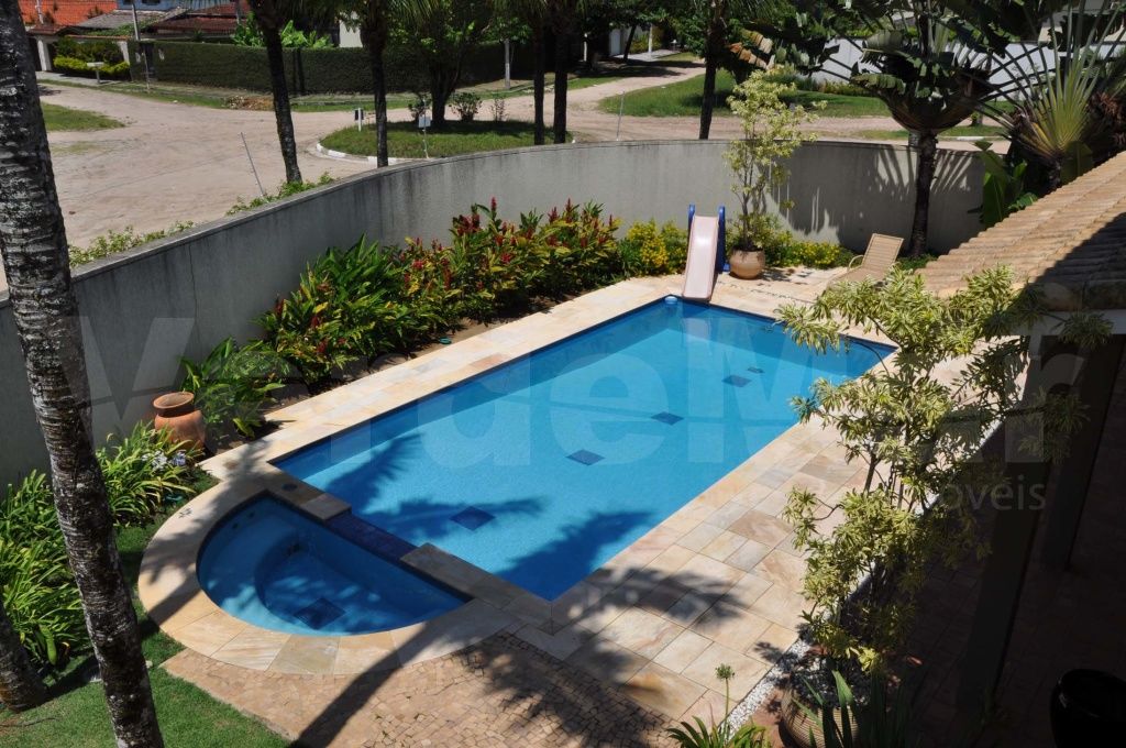 Casa a 600 metros da praia da Enseada em Guarujá, mobiliada e decorada, com 5 suítes sendo 1 máster com closet e hidromassagem, sala ampla para 2 ambientes, home theater, lareira, cozinha planejada, lavabo, lavanderia e casa de caseiro completa.