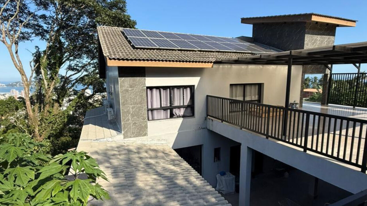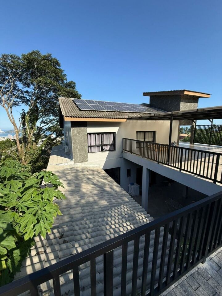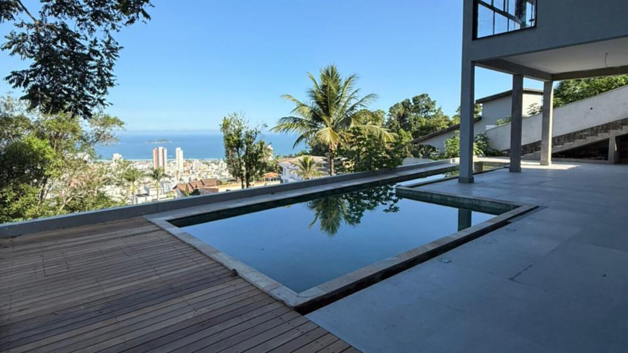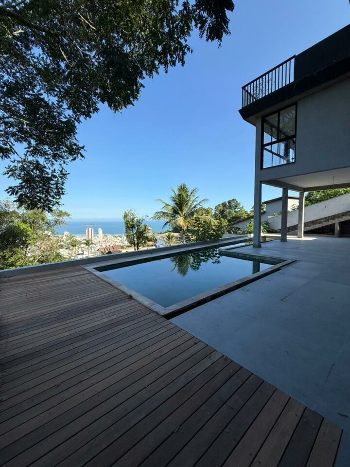Casa no condomínio Mirante da Enseada com vista para o mar, com 5 suítes, lavabo, sala de estar, sala de jantar, cozinha planejada, área de serviços, depósito e suíte de empregada.