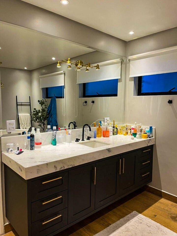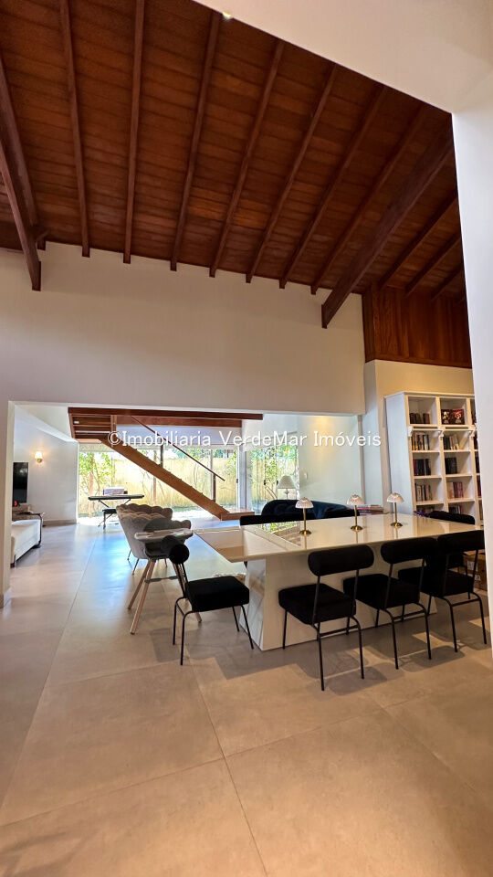 Casa no Condomínio Granville na praia da Enseada em Guarujá, com 03 suítes, sala para 04 ambientes com varanda e pé direito duplo, mezanino, cozinha e lavanderia.