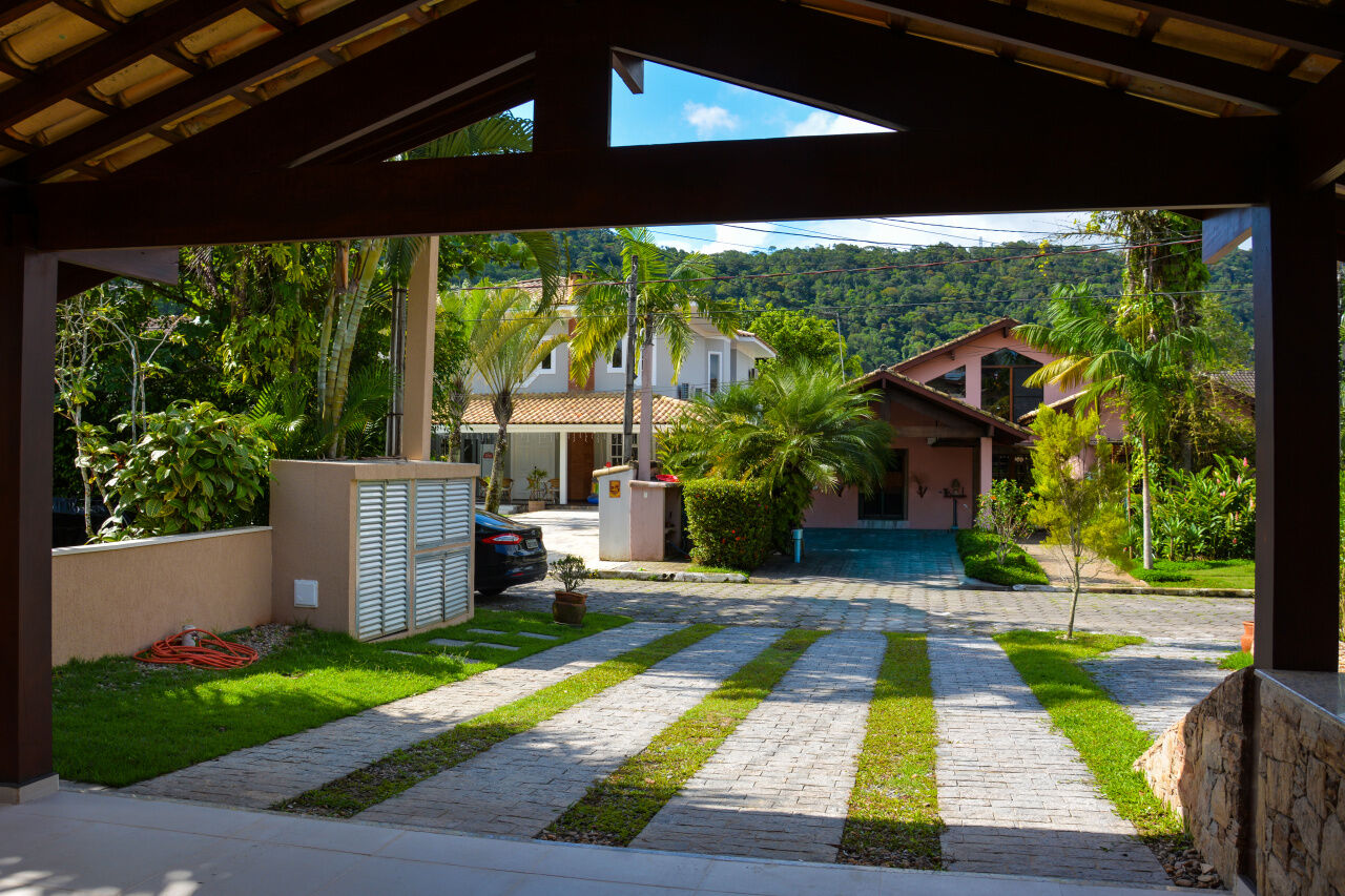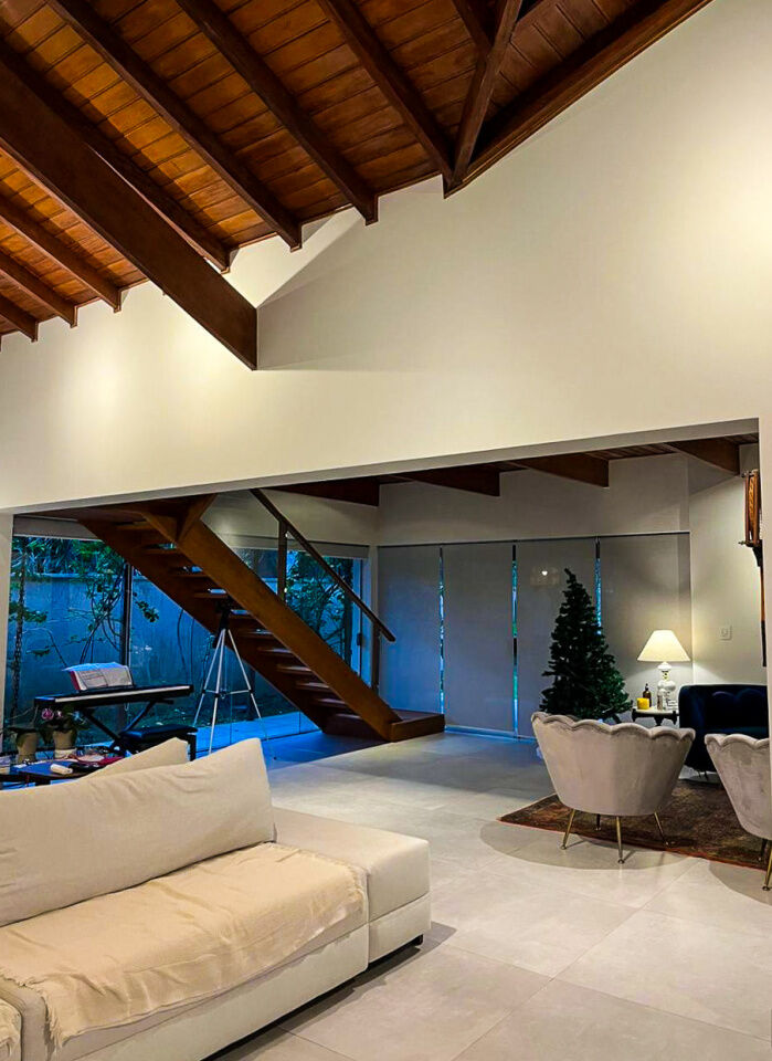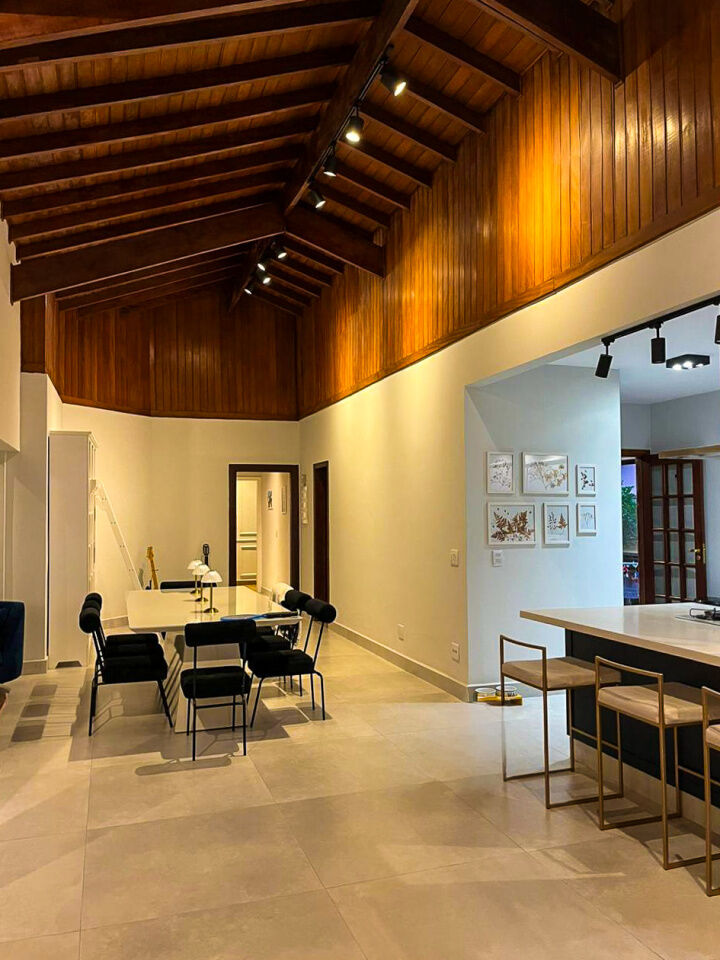 Casa no Condomínio Granville na praia da Enseada em Guarujá, com 05 dormitórios sendo 04 suítes, sala para 04 ambientes com varanda e pé direito duplo, cozinha e lavanderia.
