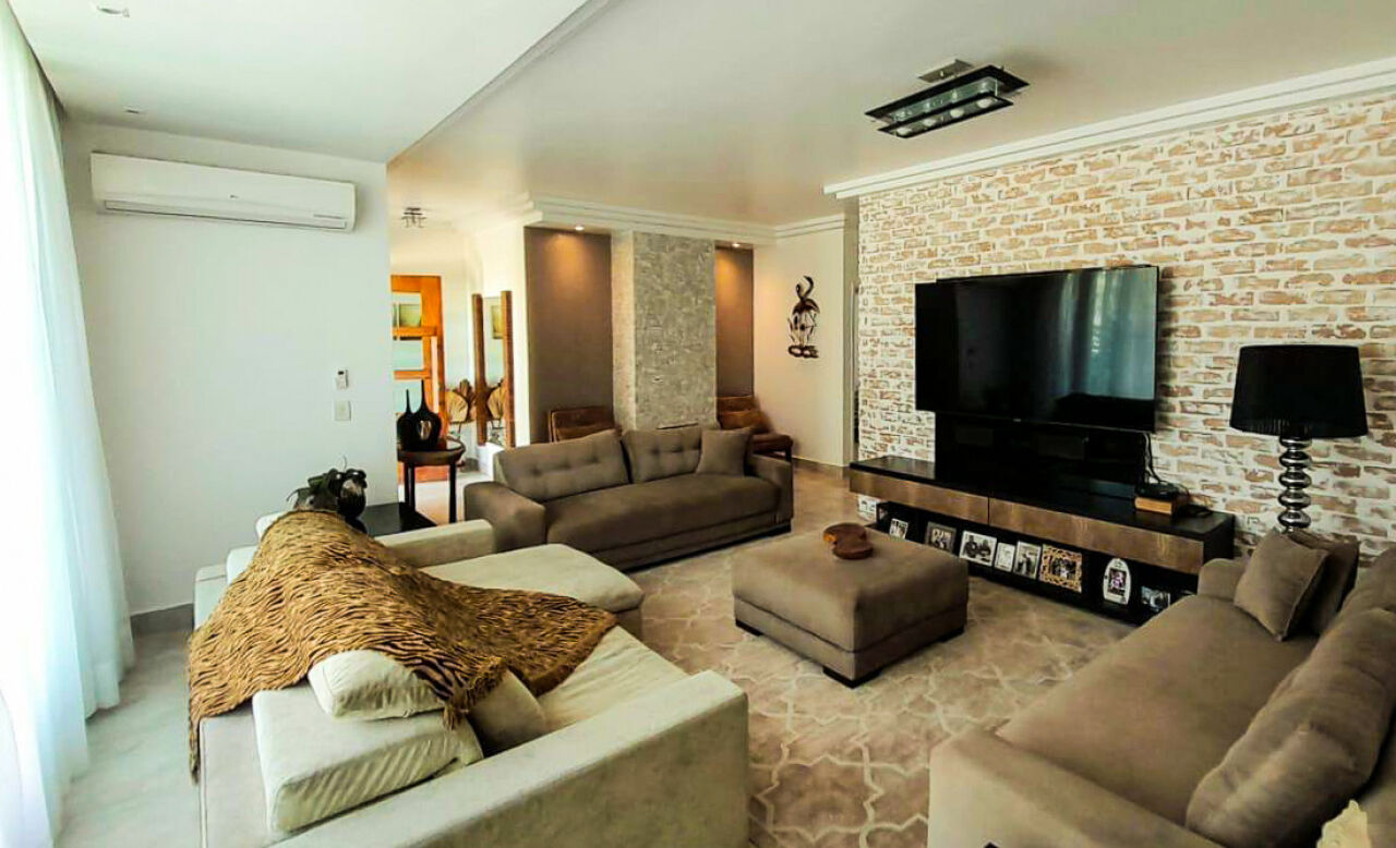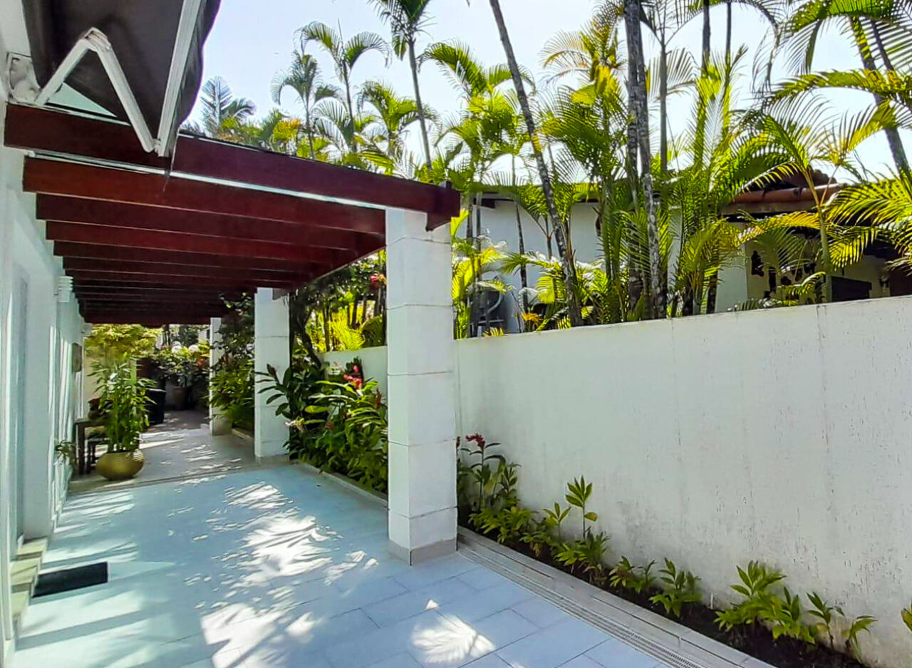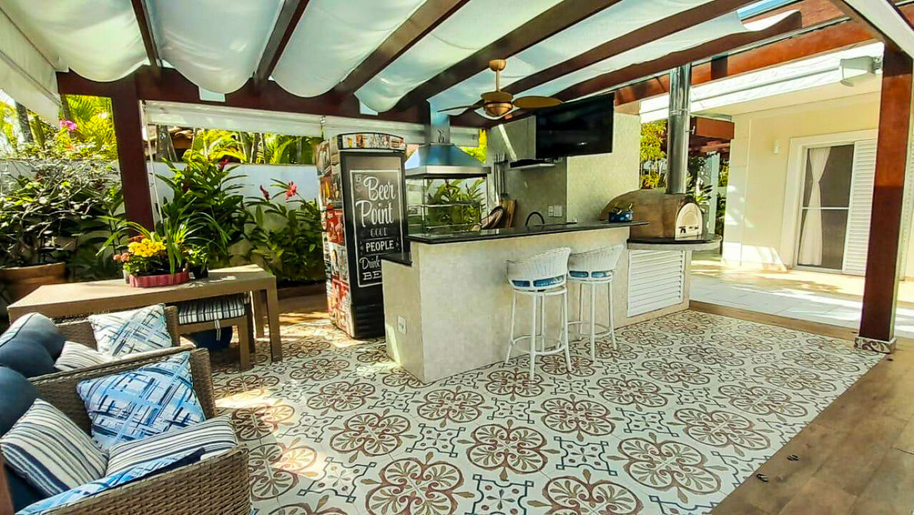 Granville Guarujá, casa térrea a venda em condominio fechado, mobiliada e decorada com 05 suítes, sala para 2 ambientes com lareira, escritório, ampla sala de jantar, cozinha e lavanderia.