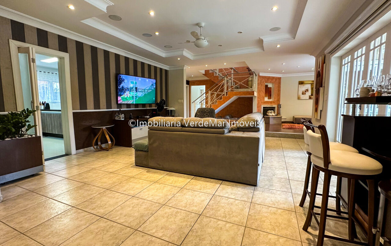 Granville Guarujá, casa à venda em condomínio fechado, mobiliada com 06 dormitórios sendo 05 suítes, sala para 03 ambientes, lareira, lavabo, home theater, cozinha planejada, lavanderia e dependência de empregada.