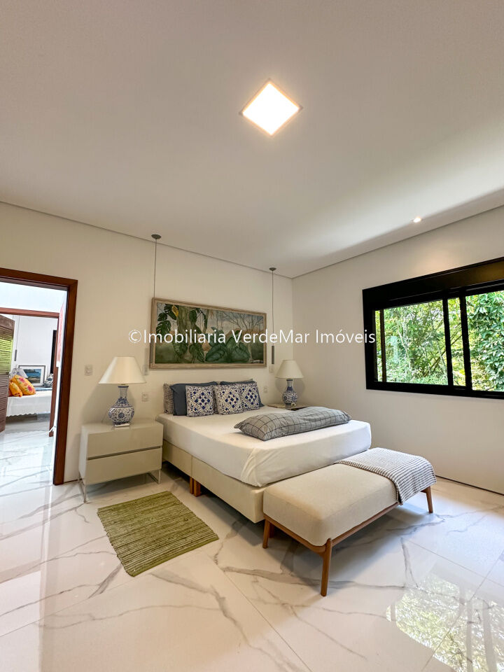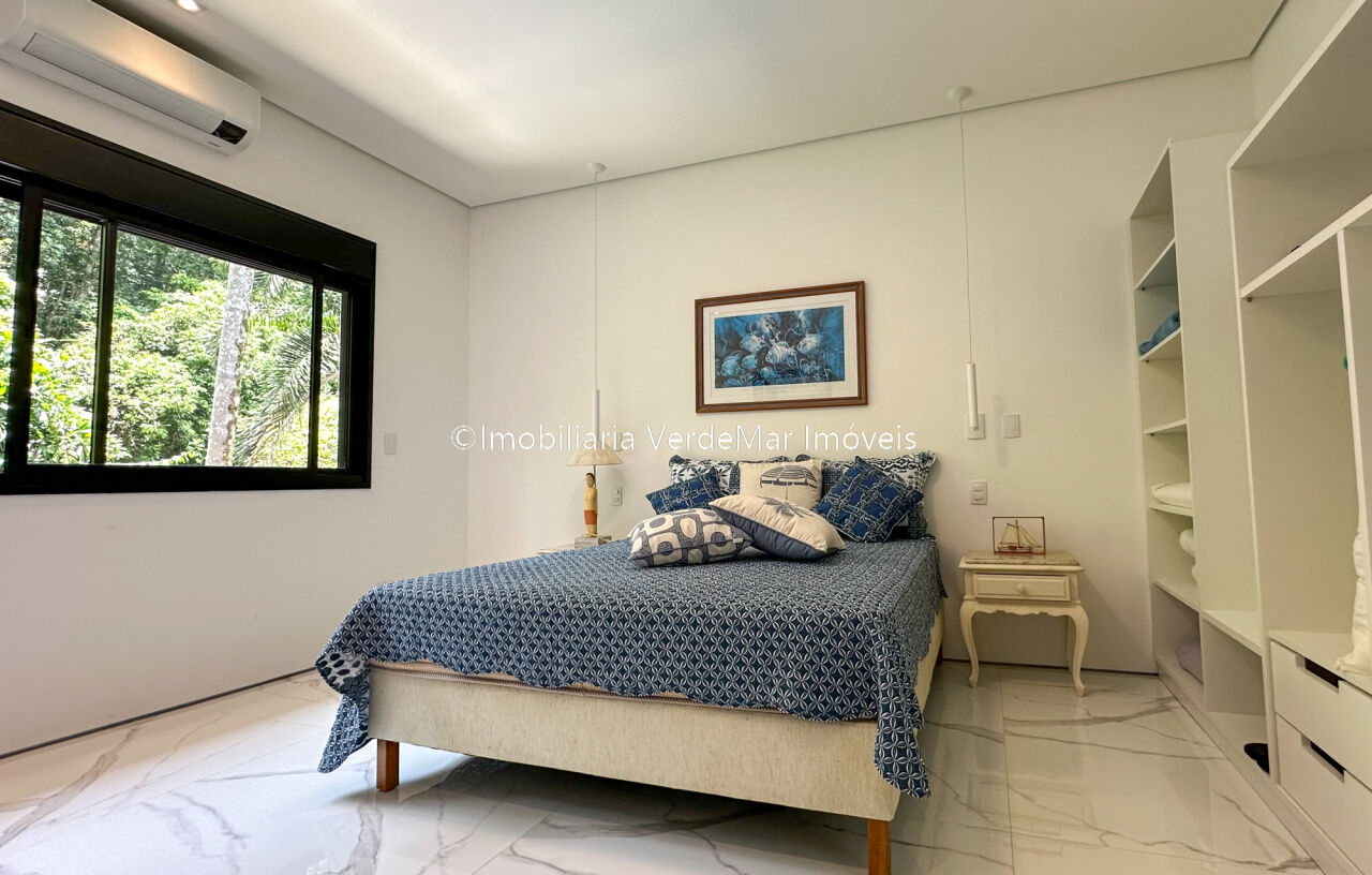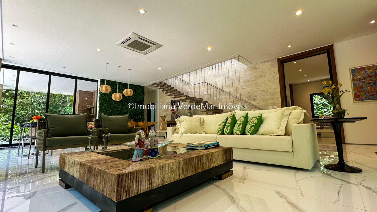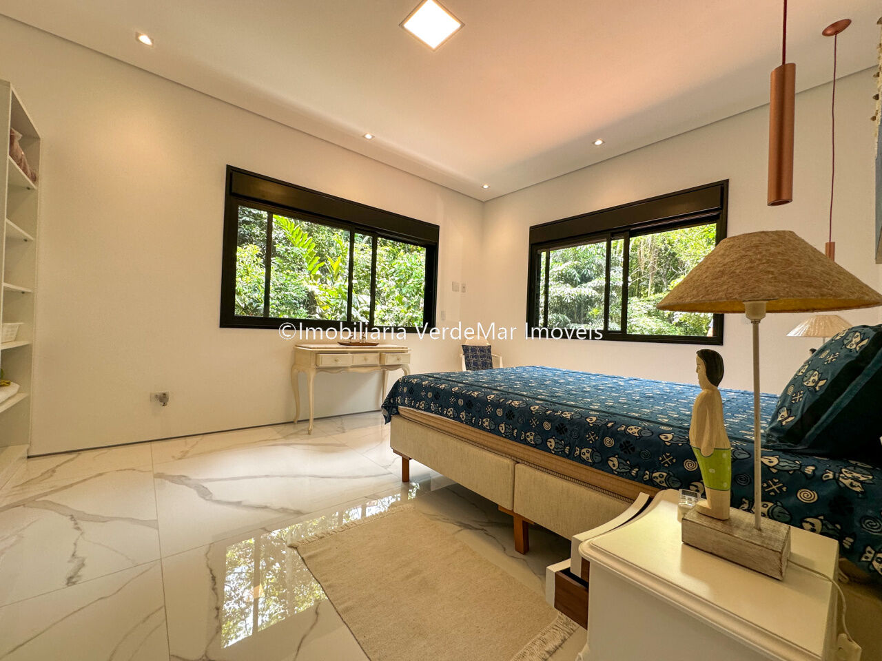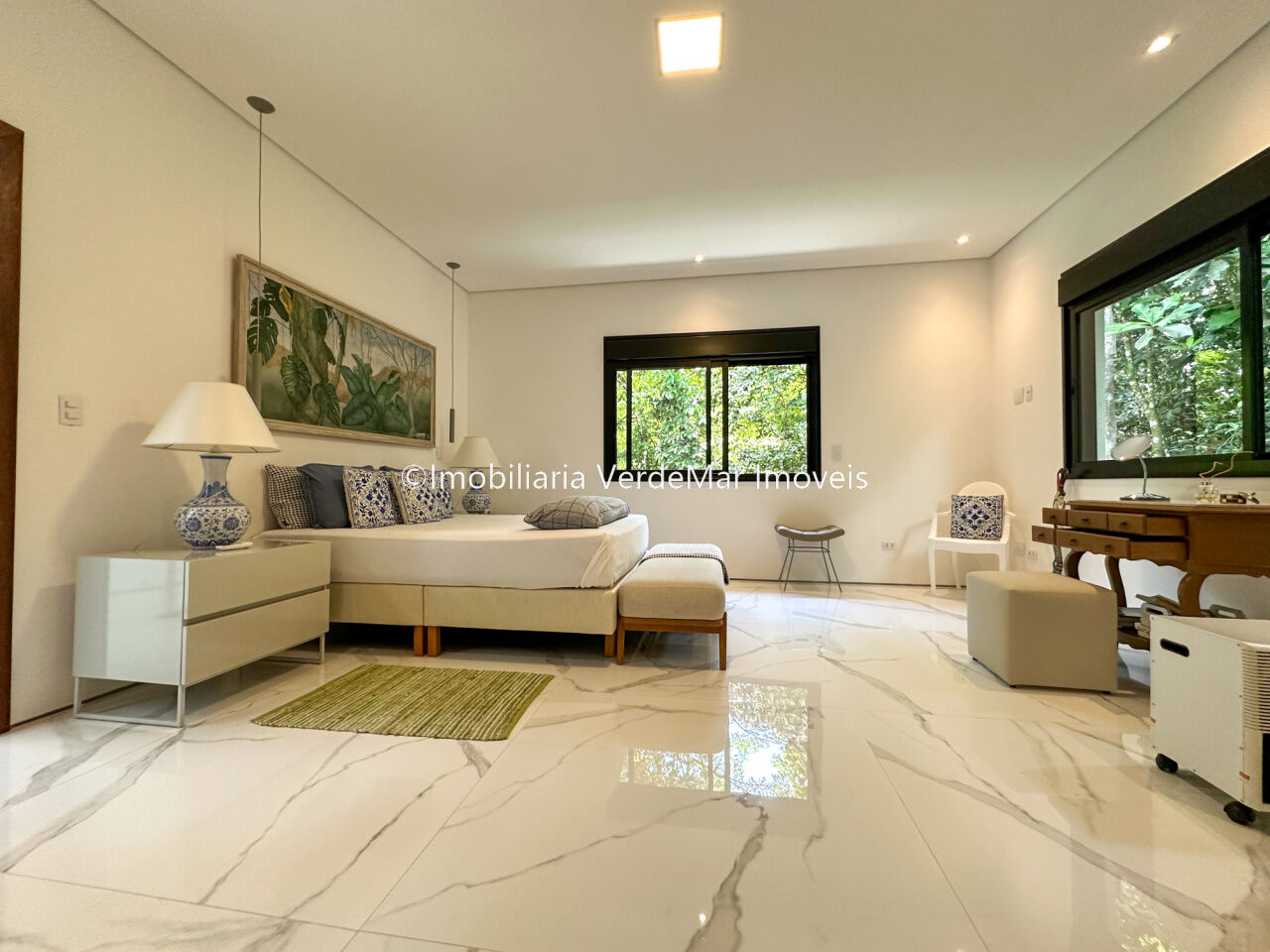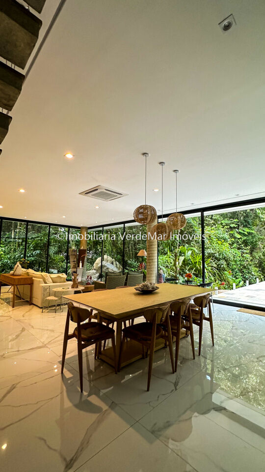 Residência NOVA a venda na praia de Iporanga em Guarujá, com 05 suítes todas com ar condicionado, sala para 02 ambientes com varanda, cozinha gourmet, despensa, lavanderia e casa de caseiros.