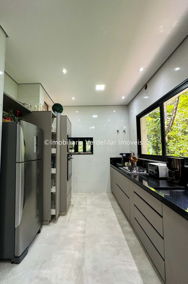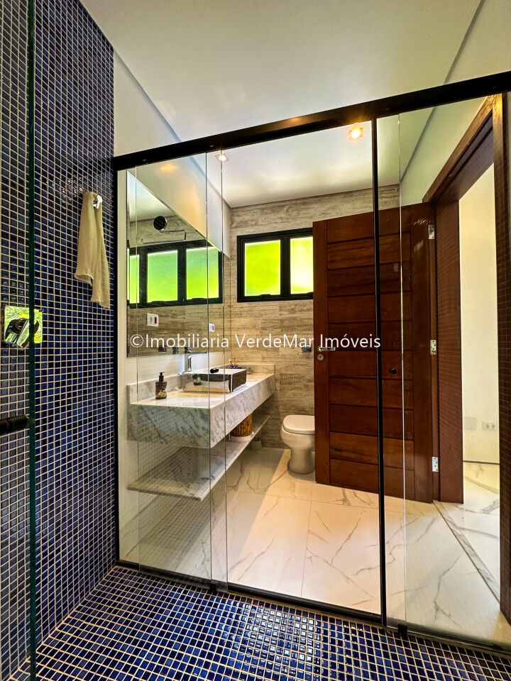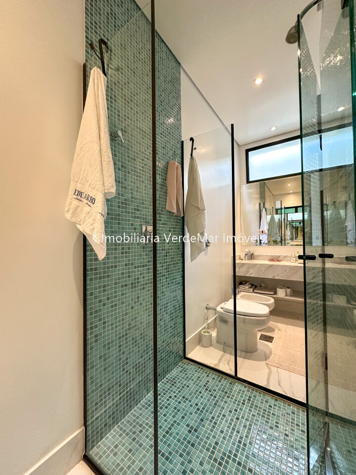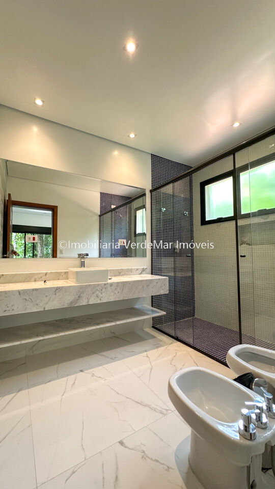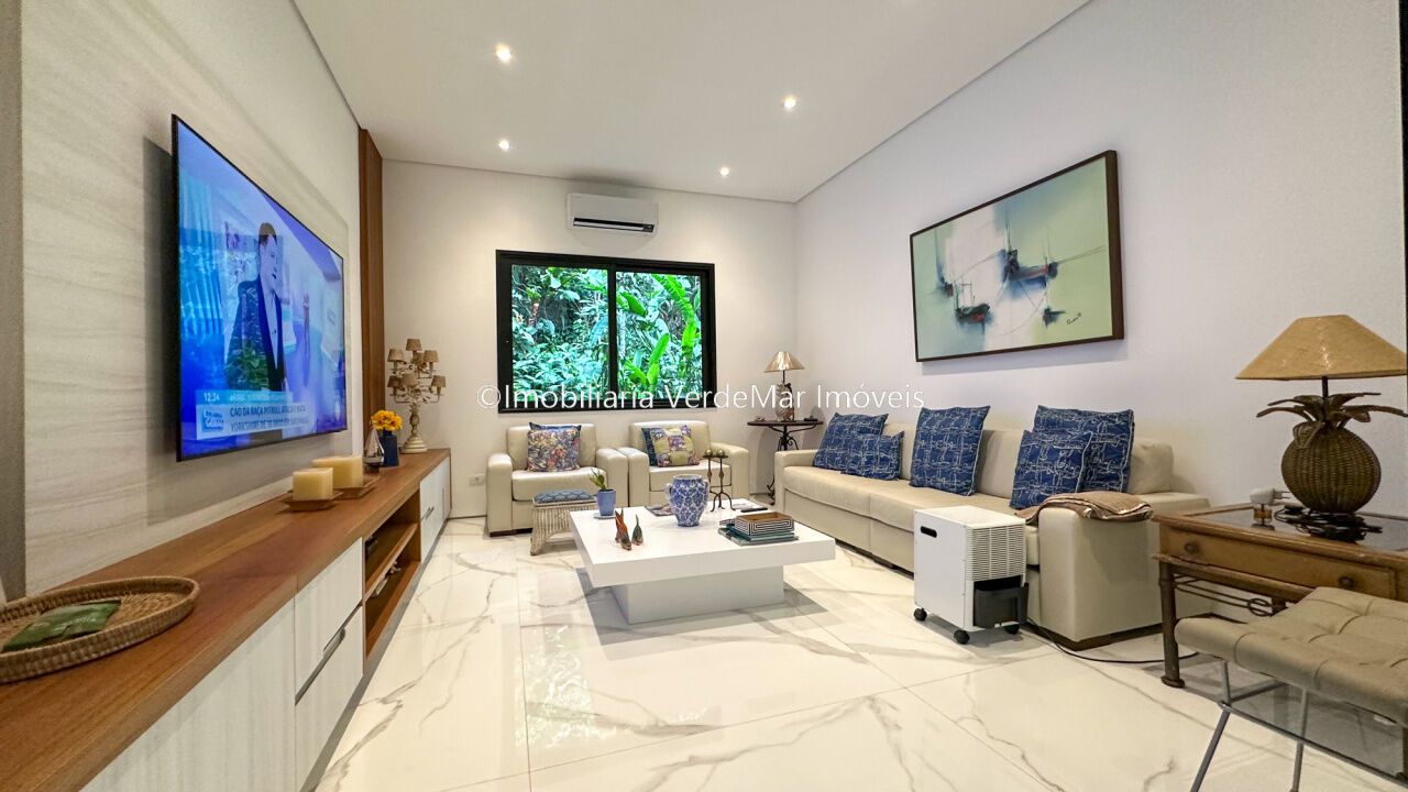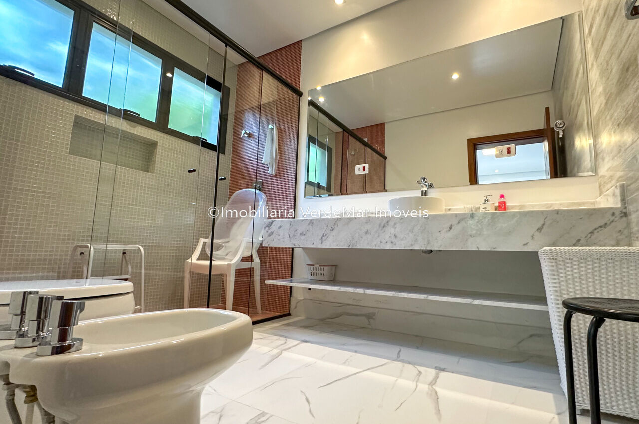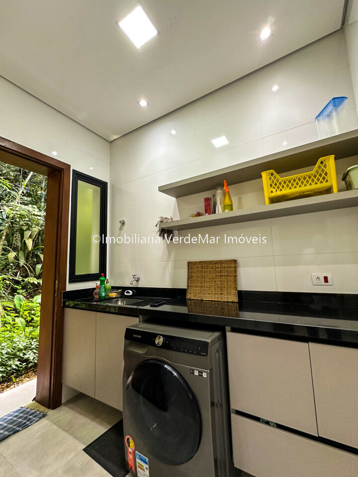 Residência NOVA a venda na praia de Iporanga em Guarujá, com 05 suítes todas com ar condicionado, sala para 02 ambientes com varanda, cozinha gourmet, despensa, lavanderia e casa de caseiros.
