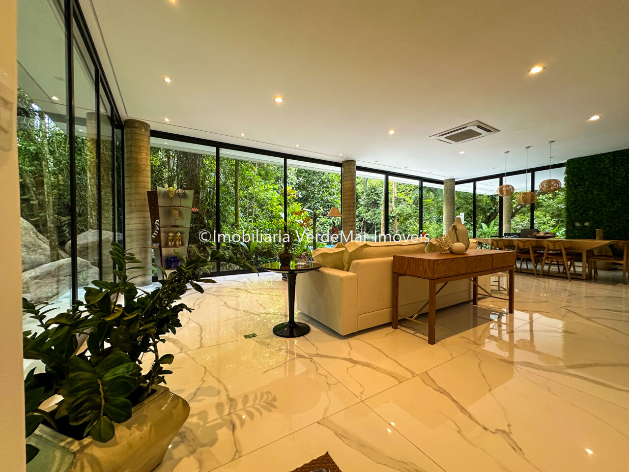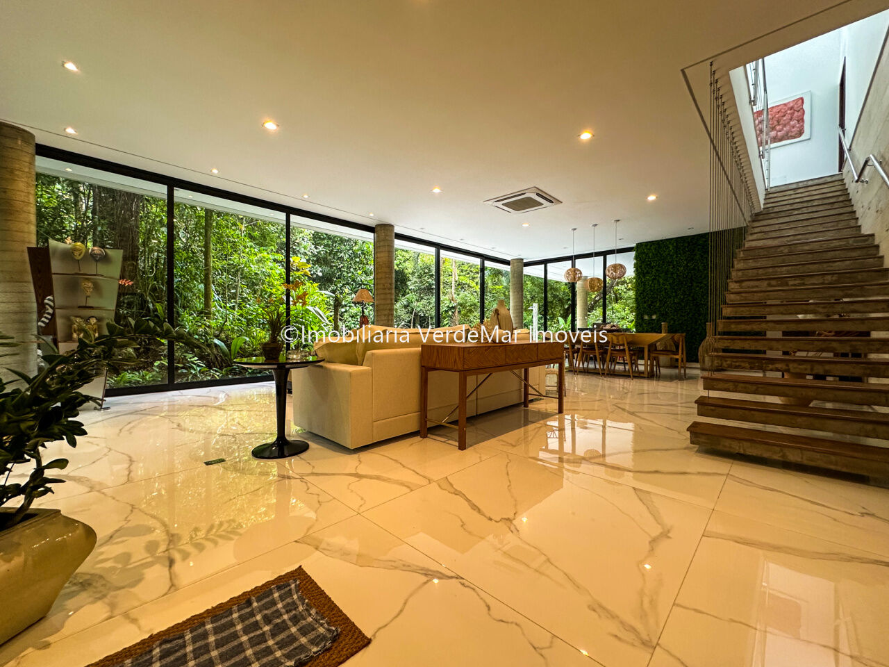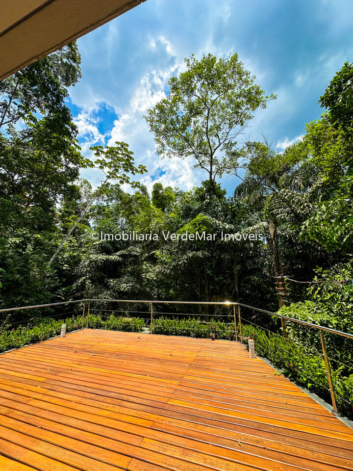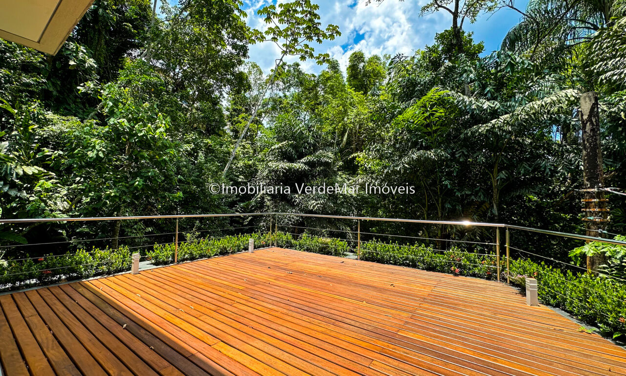 A privacidade é total a casa é rodeada pela mata Atlântica, vista excepcional e localização associada a topografia e ao projeto arquitetônico que fornece locais na copa das árvores.