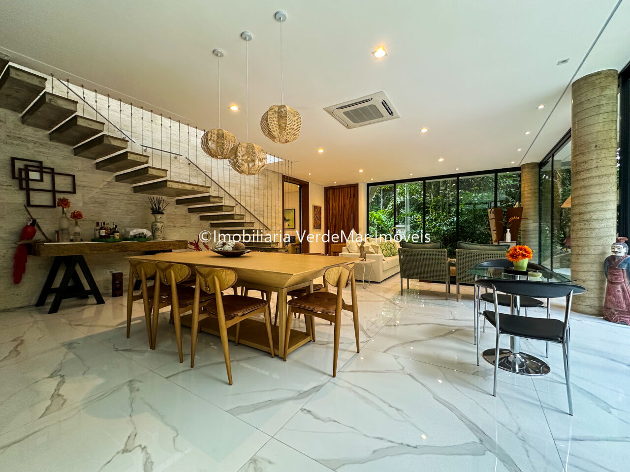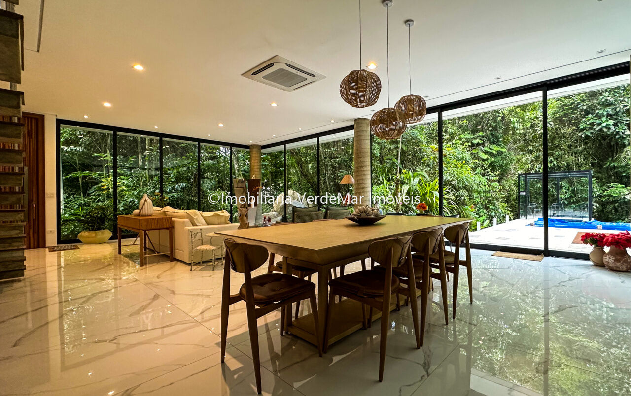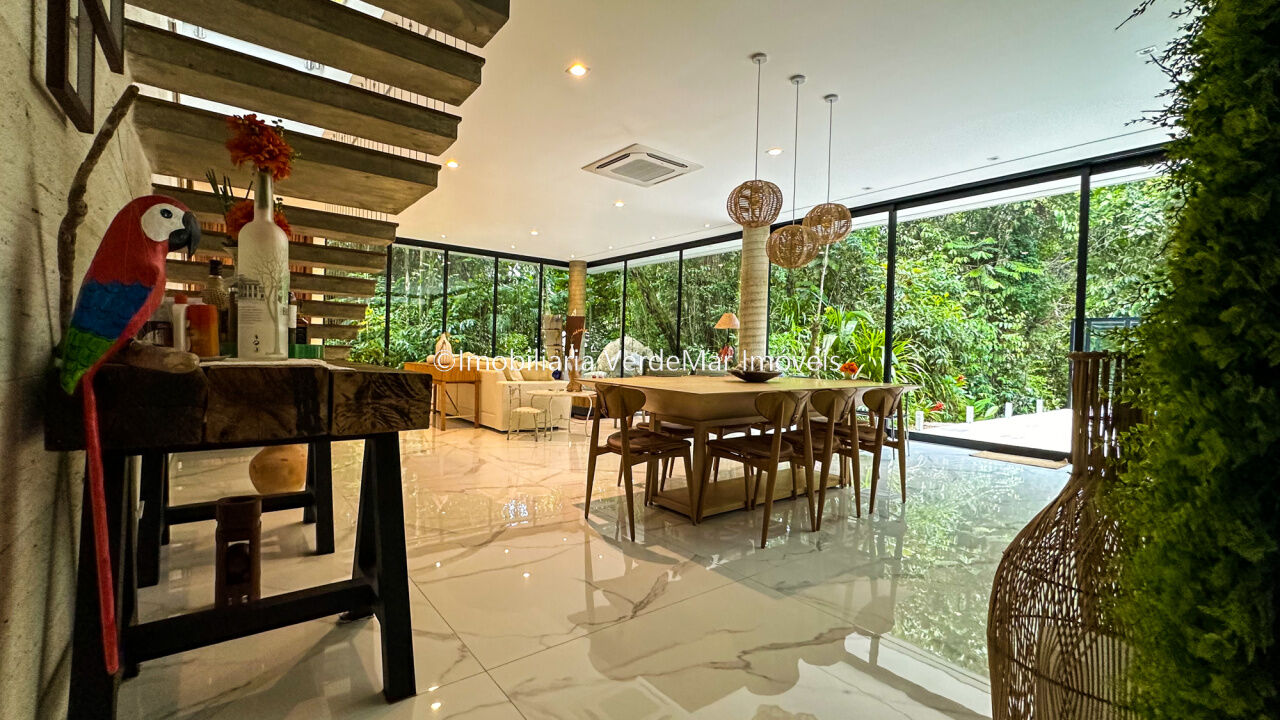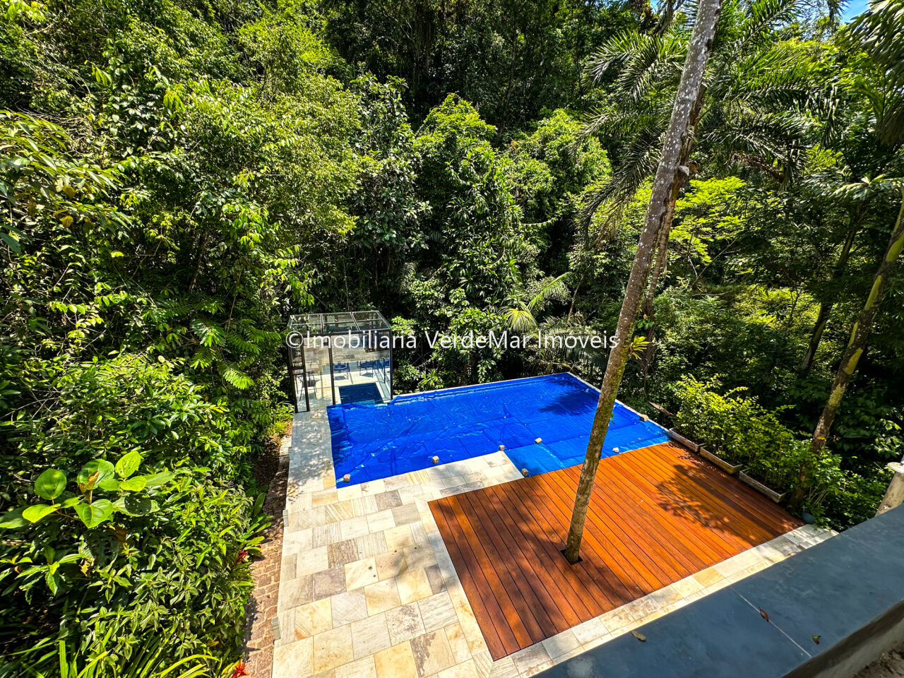 A privacidade é total a casa é rodeada pela mata Atlântica, vista excepcional e localização associada a topografia e ao projeto arquitetônico que fornece locais na copa das árvores.