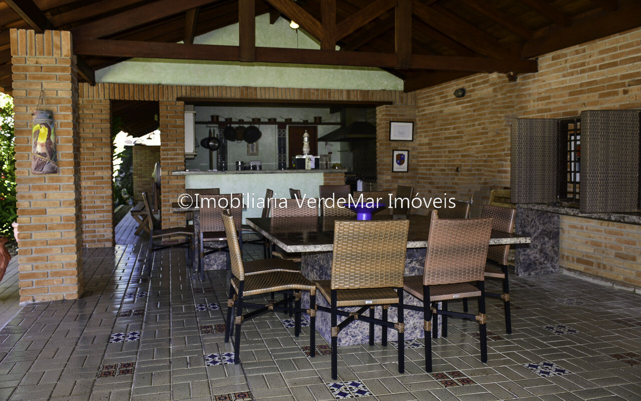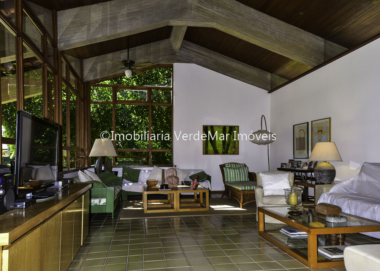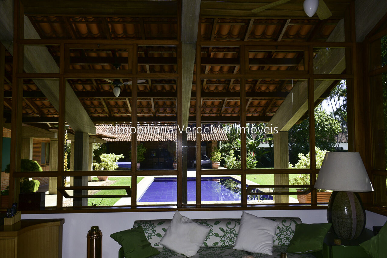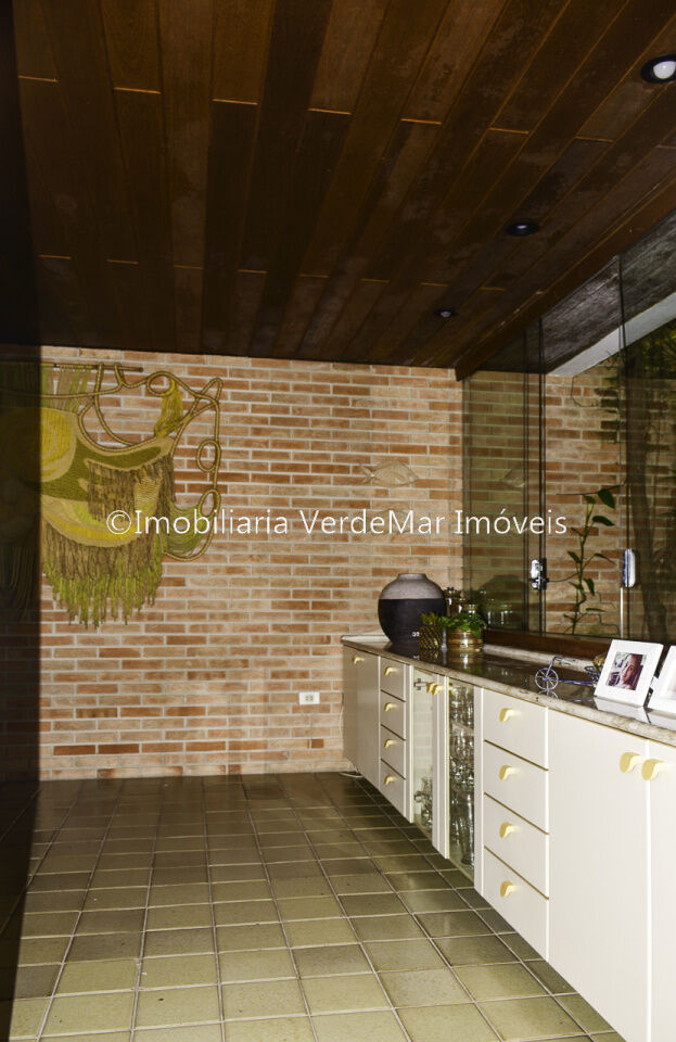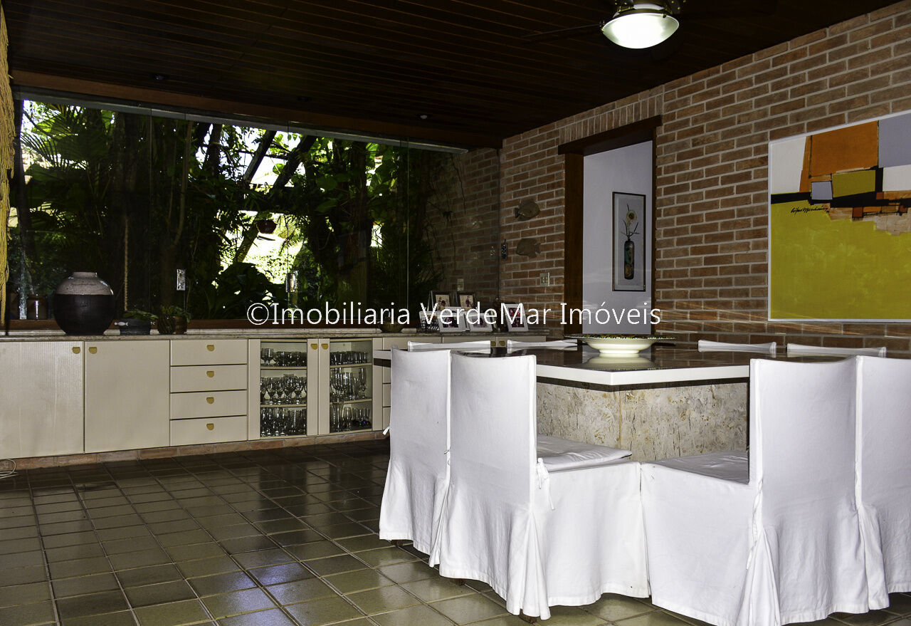 Casa térrea à venda no Jardim Acapulco na Praia de Pernambuco no Guarujá, mobiliada, com 4 suítes sala para 03 ambientes com ampla varanda lareira,, lavabo, sala de jantar, cozinha planejada, despensa, área de serviço e casa de caseiro com 2 dormitórios.