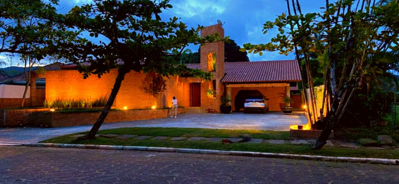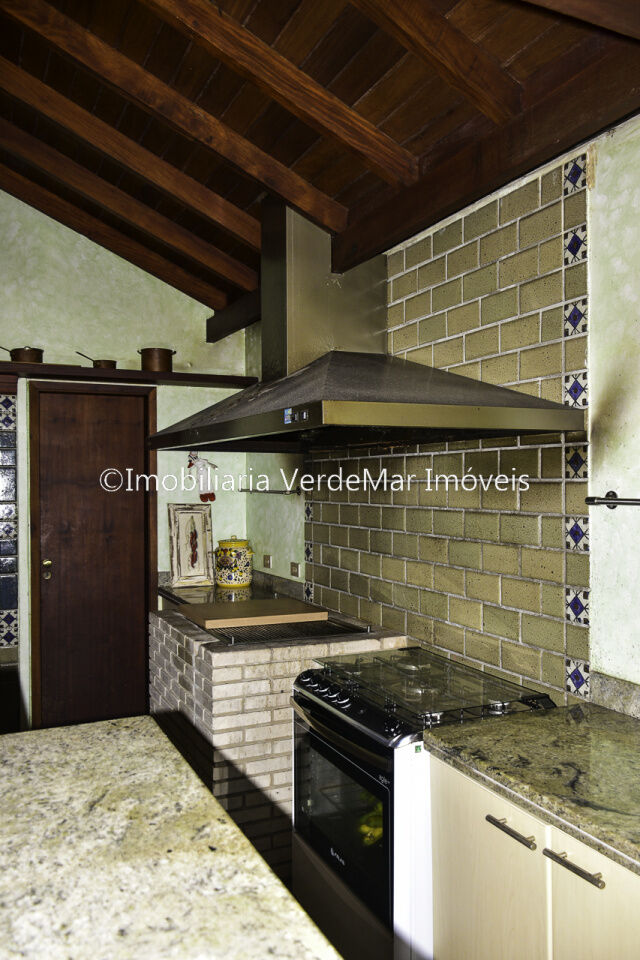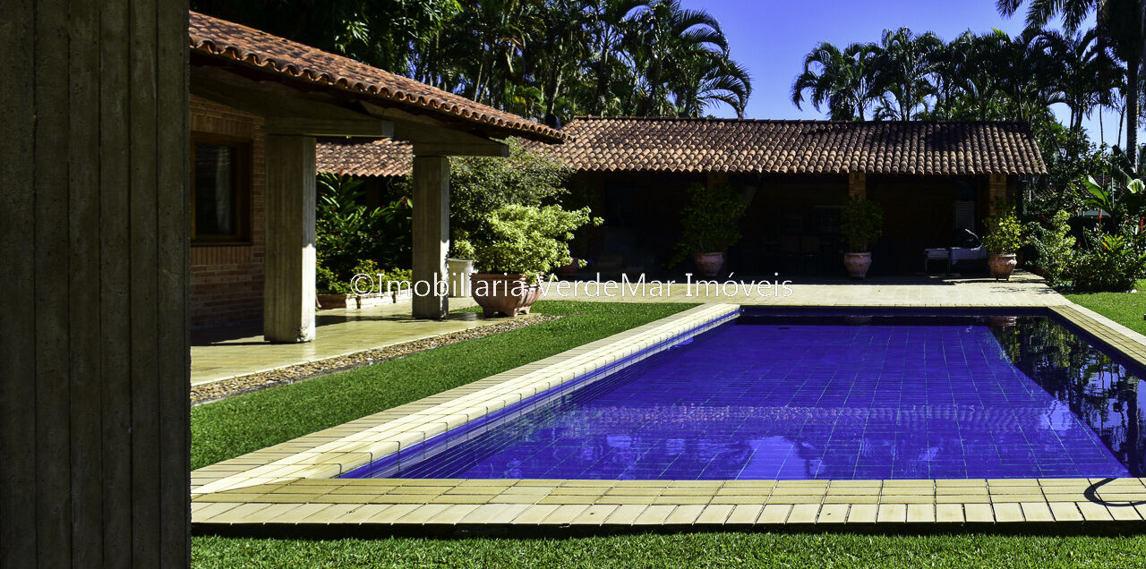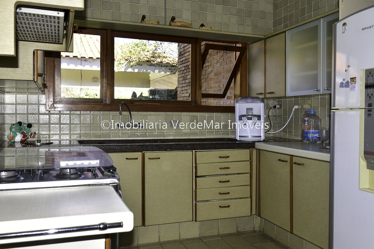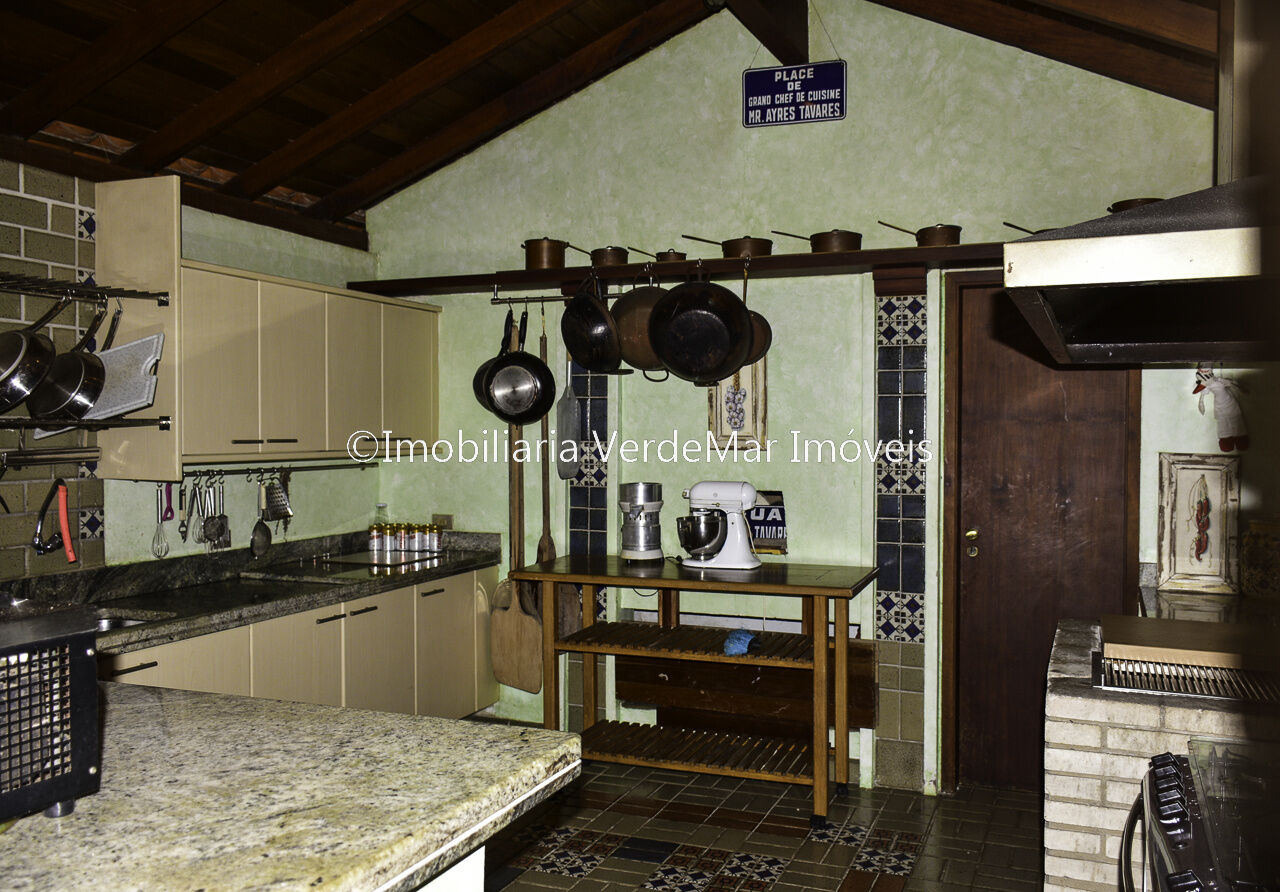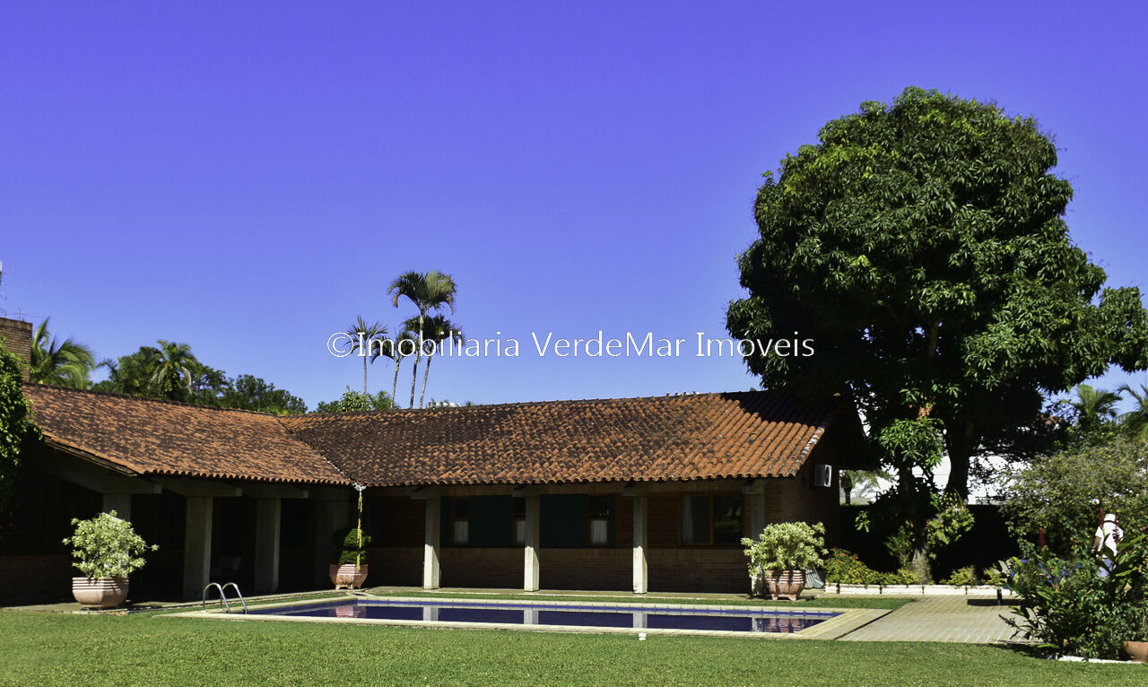 Casa térrea à venda no Jardim Acapulco na Praia de Pernambuco no Guarujá, mobiliada, com 4 suítes sala para 03 ambientes com ampla varanda lareira,, lavabo, sala de jantar, cozinha planejada, despensa, área de serviço e casa de caseiro com 2 dormitórios.