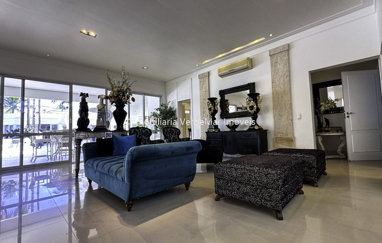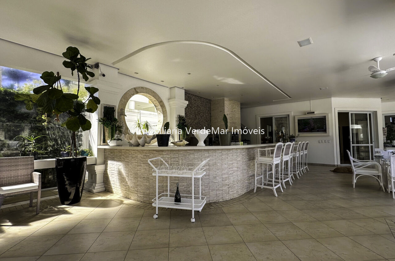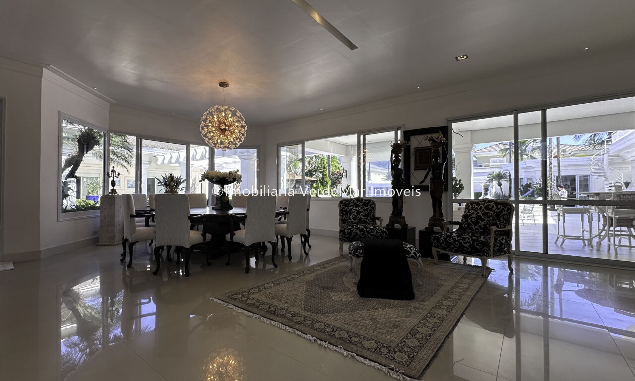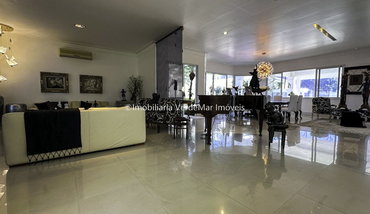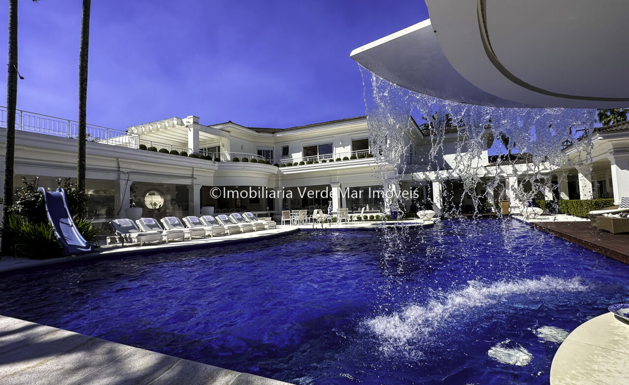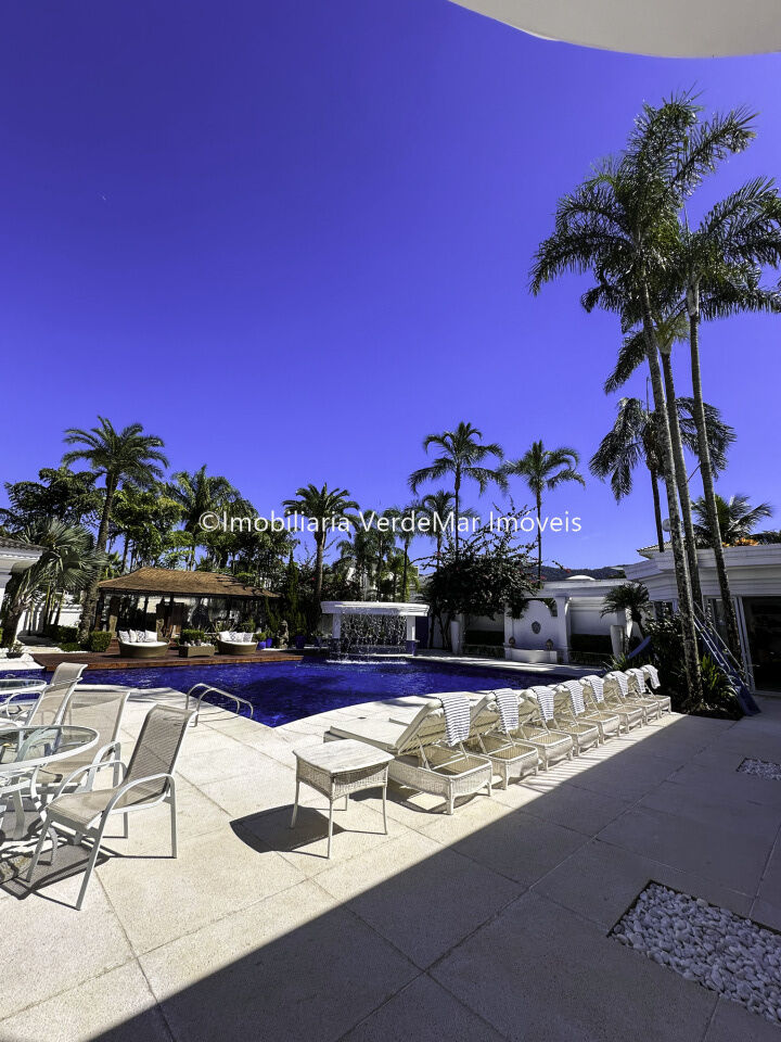 Magnífica Mansão à venda no Jardim Acapulco na Praia de Pernambuco no Guarujá, mobiliada, com 10 suítes sendo 05 no térreo, e a máster com closet e hidromassagem, sala para 04 ambientes com ampla varanda, cinema com sistema de som surround conta com caixas de som embutidas no teto, lavabo, sala de jantar, cozinha planejada, despensa, área de serviço e casa de caseiro completa.