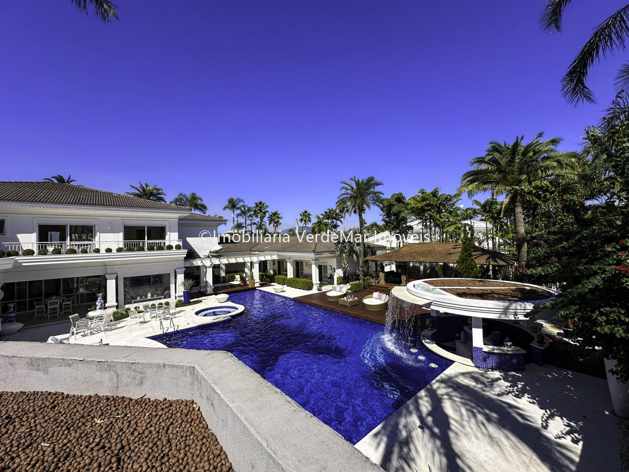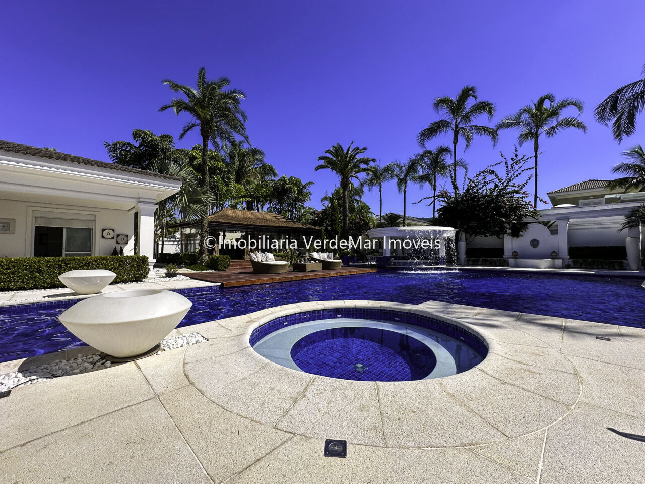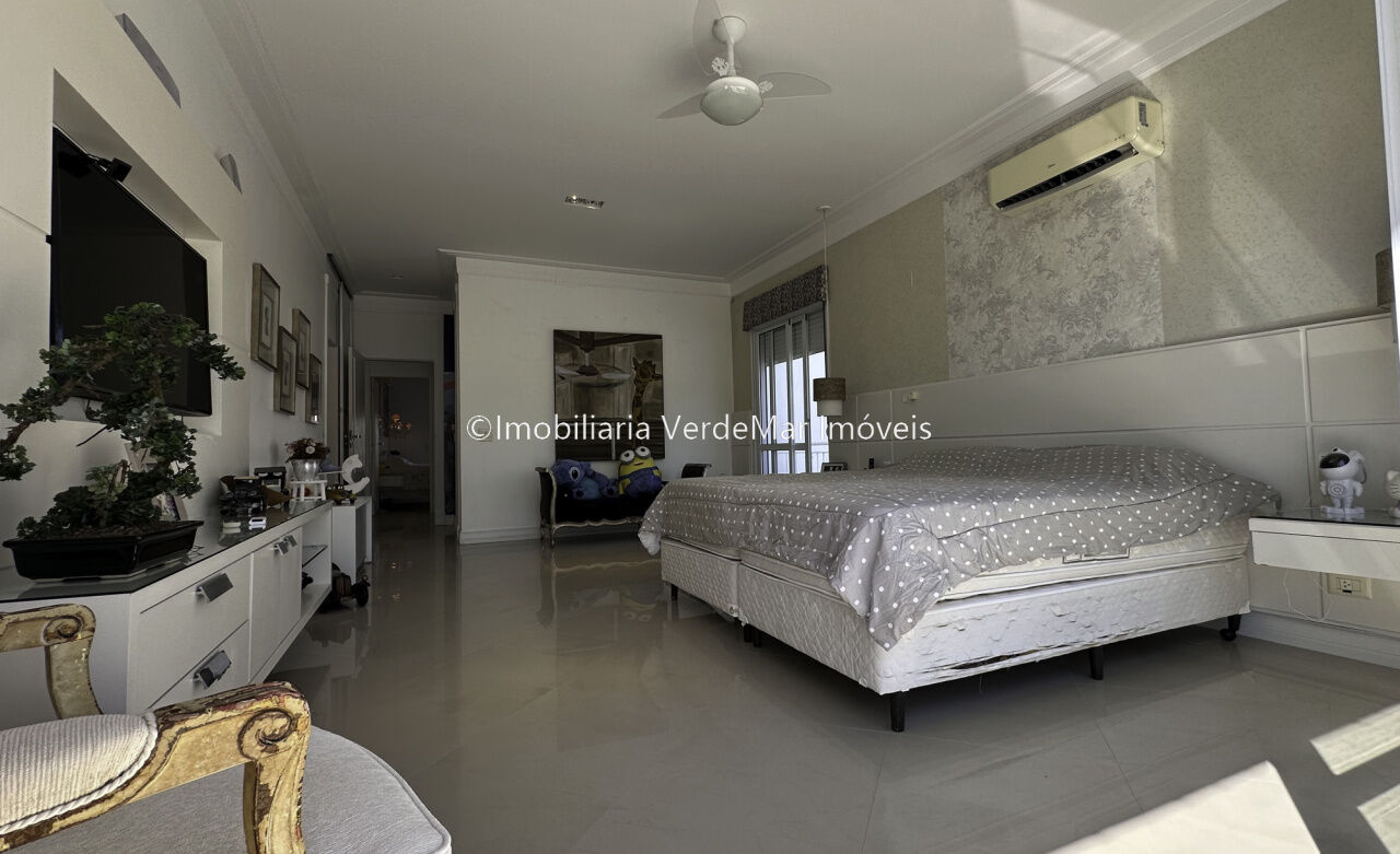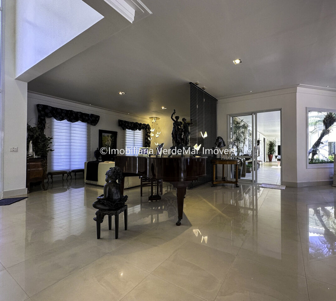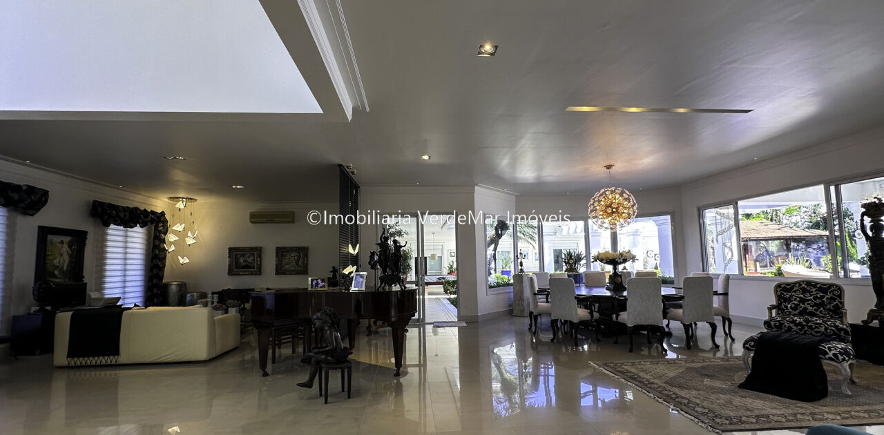Magnífica Mansão à venda no Jardim Acapulco na Praia de Pernambuco no Guarujá, mobiliada, com 10 suítes sendo 05 no térreo, e a máster com closet e hidromassagem, sala para 04 ambientes com ampla varanda, cinema com sistema de som surround conta com caixas de som embutidas no teto, lavabo, sala de jantar, cozinha planejada, despensa, área de serviço e casa de caseiro completa.