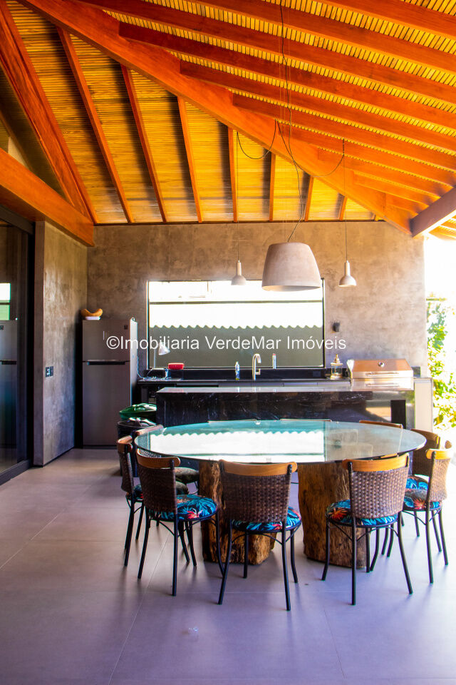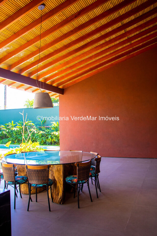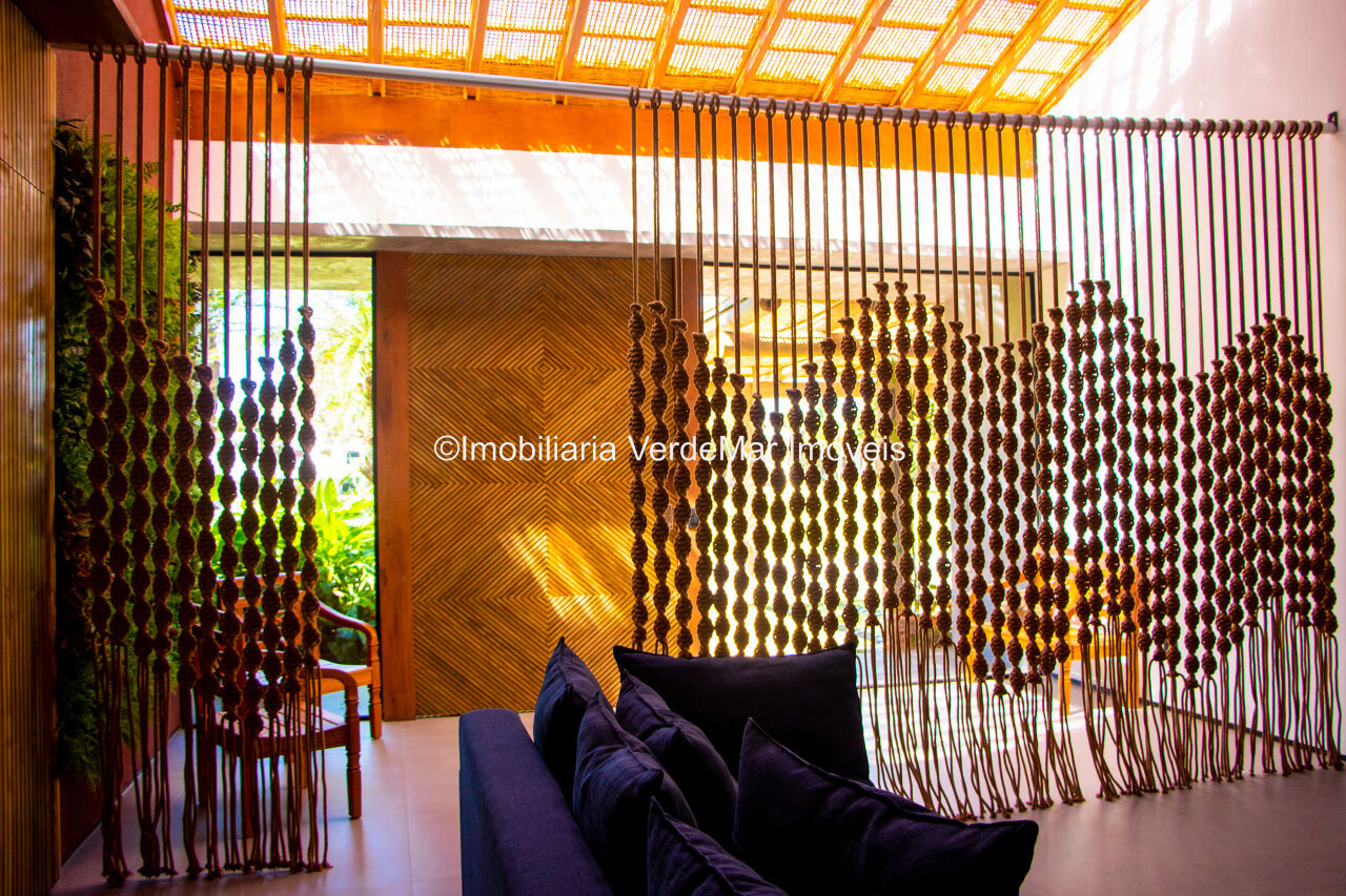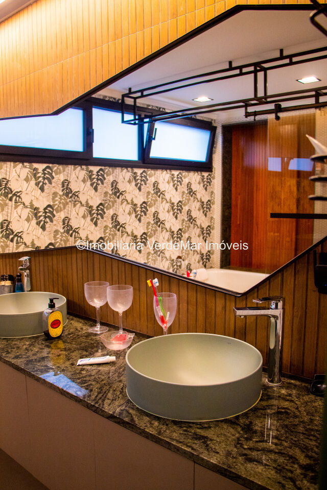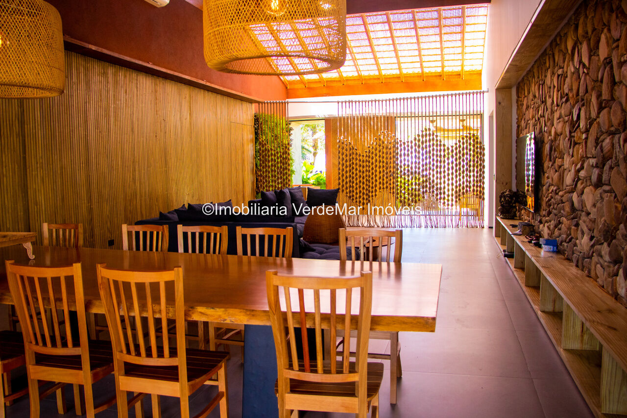 Casa térrea em estilo Balinês à venda no Jardim Acapulco na praia de Pernambuco em Guarujá, frente praça, mobiliada e decorada, conta com 05 suítes, sendo uma máster com hidromassagem, sala para 02 ambientes com pé direito duplo e terraço mobiliado, lavabo, cozinha planejada, lavanderia e área de serviços.