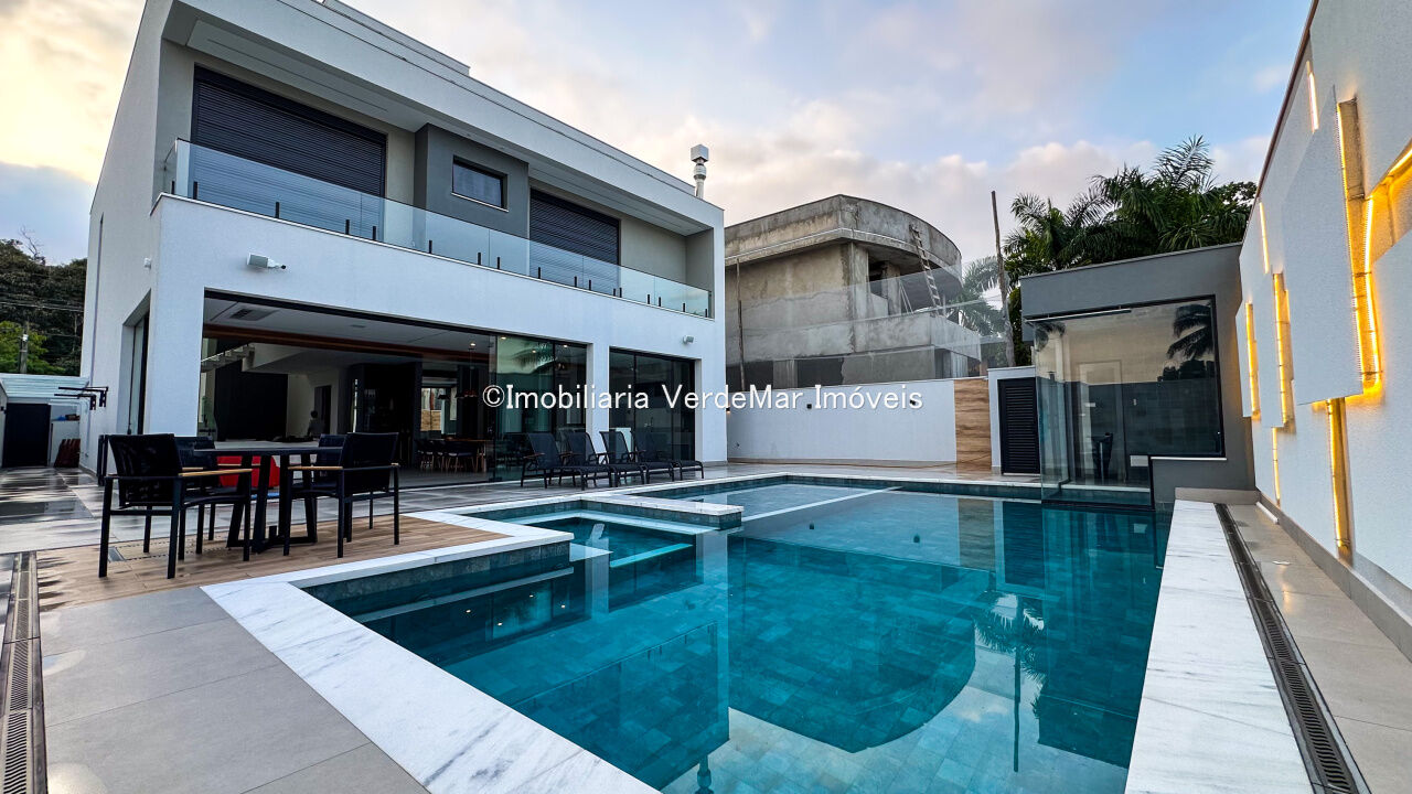 Apresentamos esta magnífica residência nova, localizada em uma das ruas mais tranquilas do Condomínio Jardim Acapulco, no Guarujá.