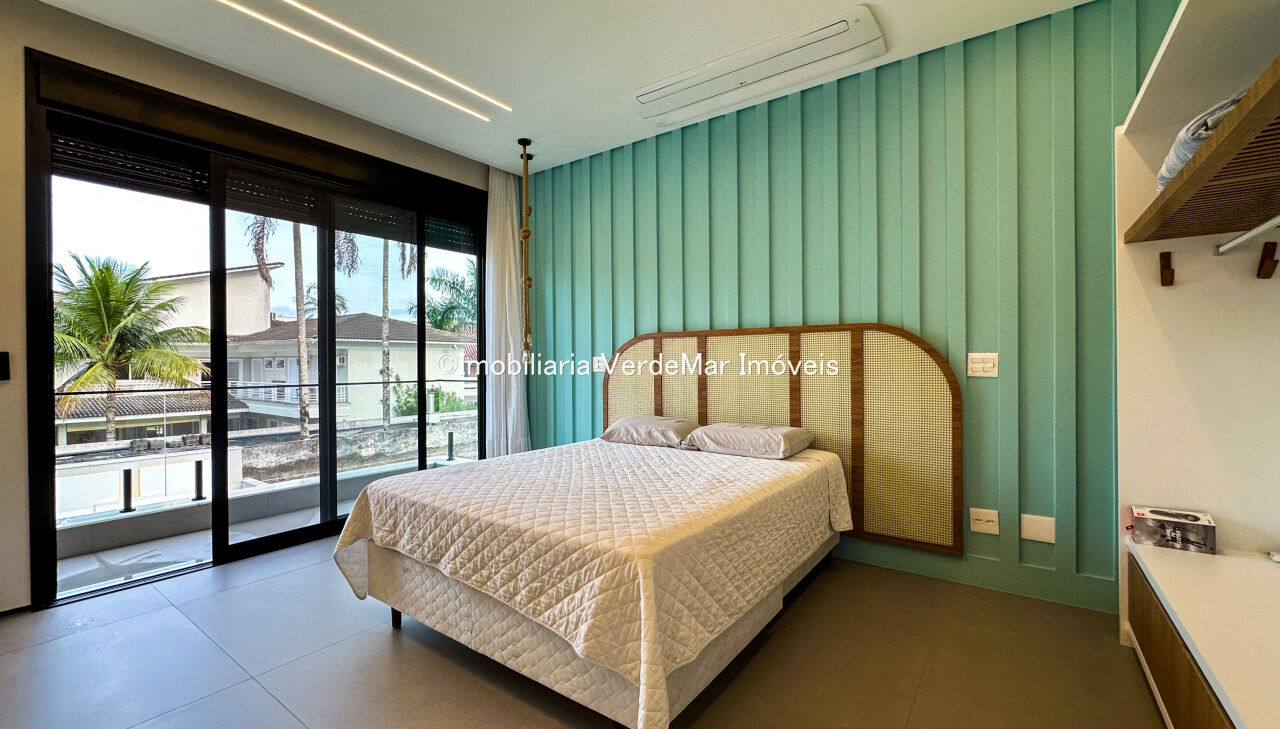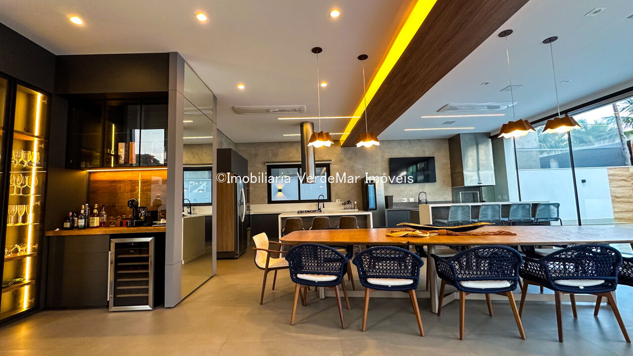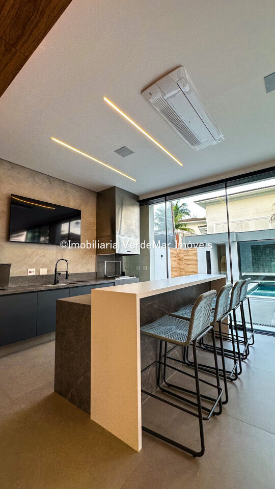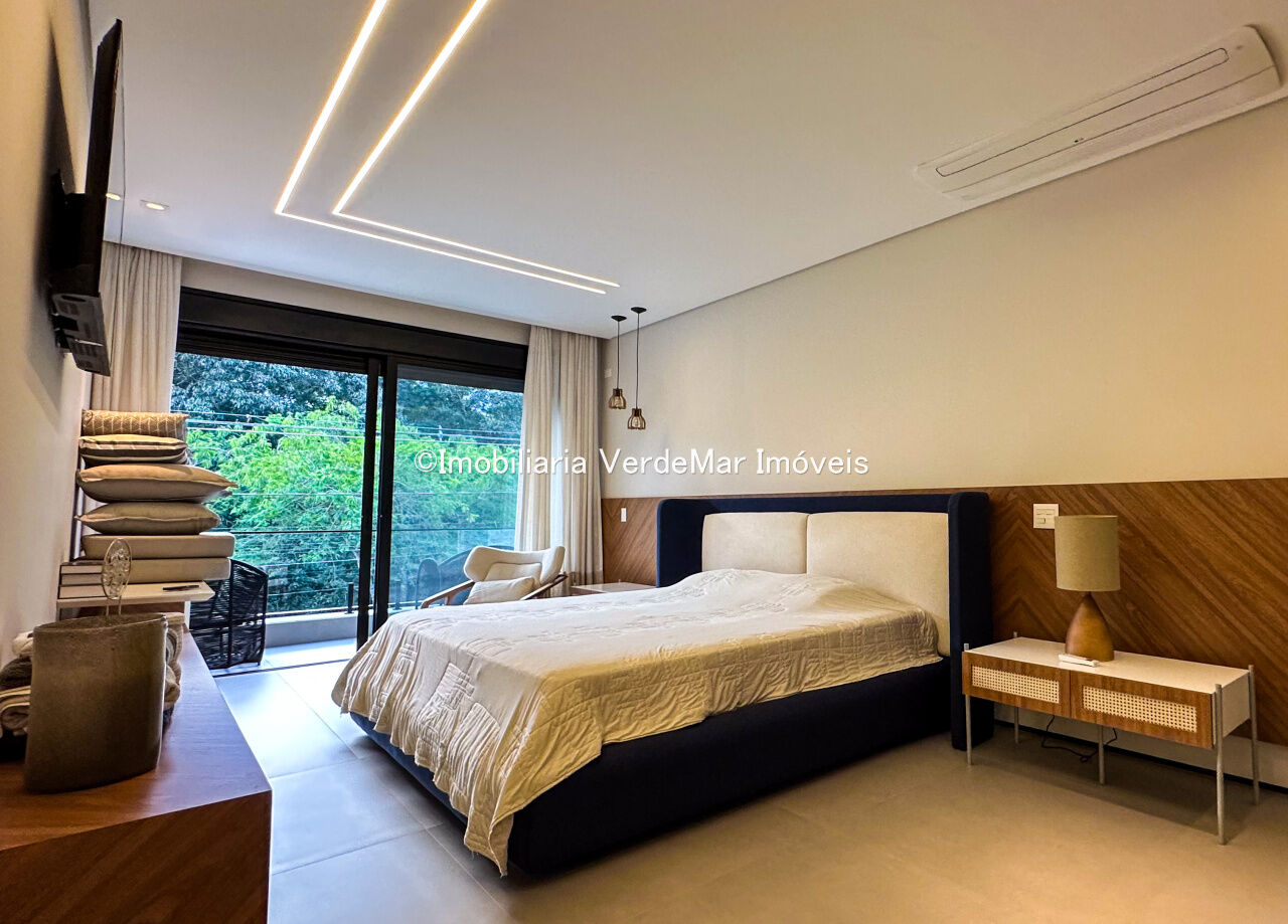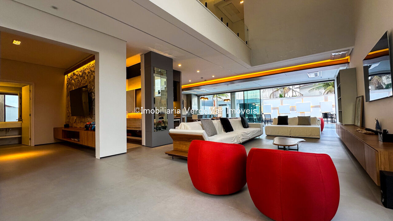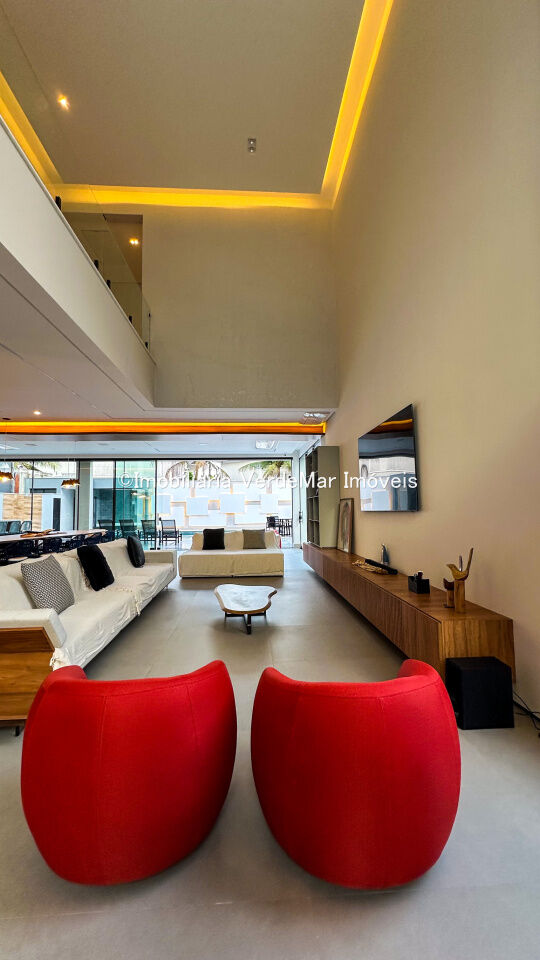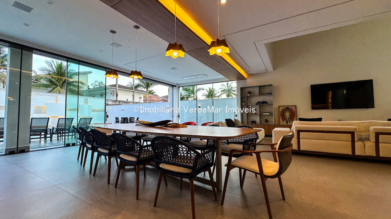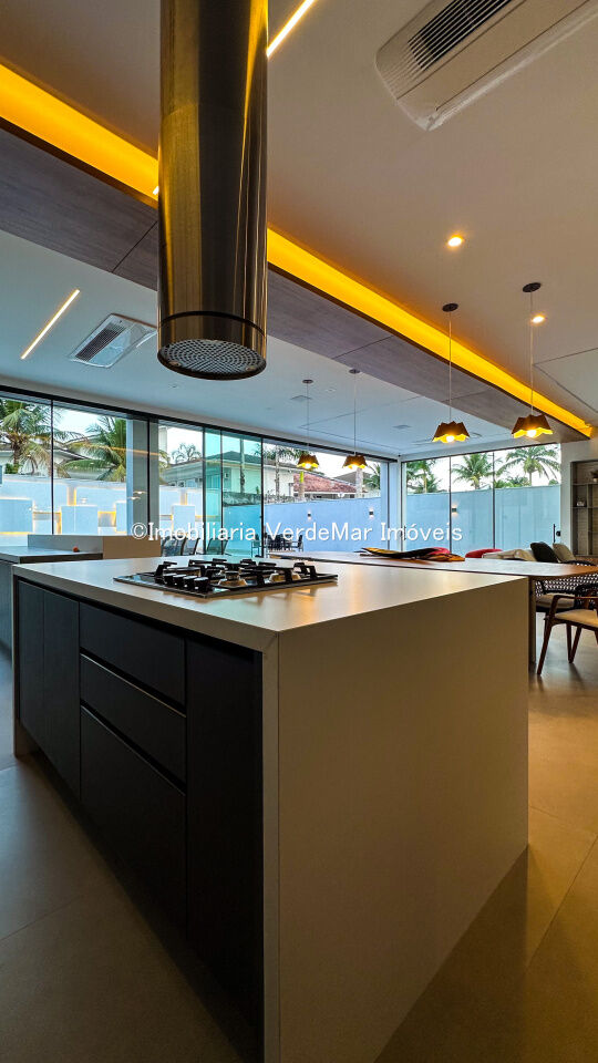 Casa nova à venda no Jardim Acapulco na Praia de Pernambuco em Guarujá, projeto moderno, mobiliado e decorado, com 05 suítes sendo 01 máster com hidromassagem, sala para 03 ambientes com varanda, cozinha planejada integrada, despensa, área de serviço e dependência de empregada.
