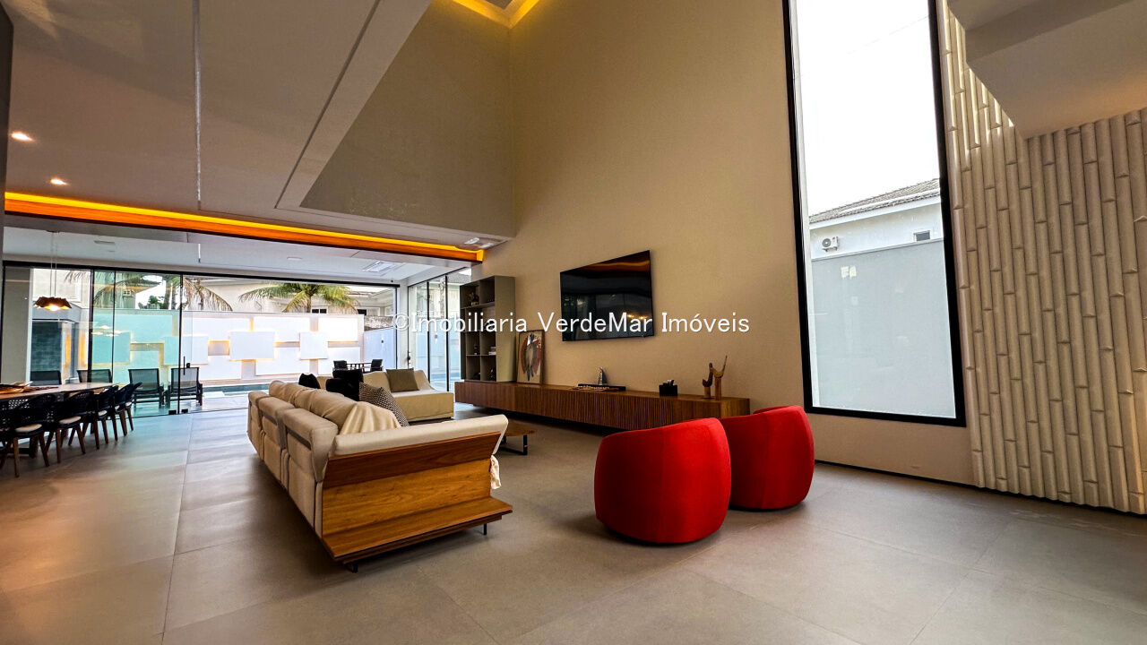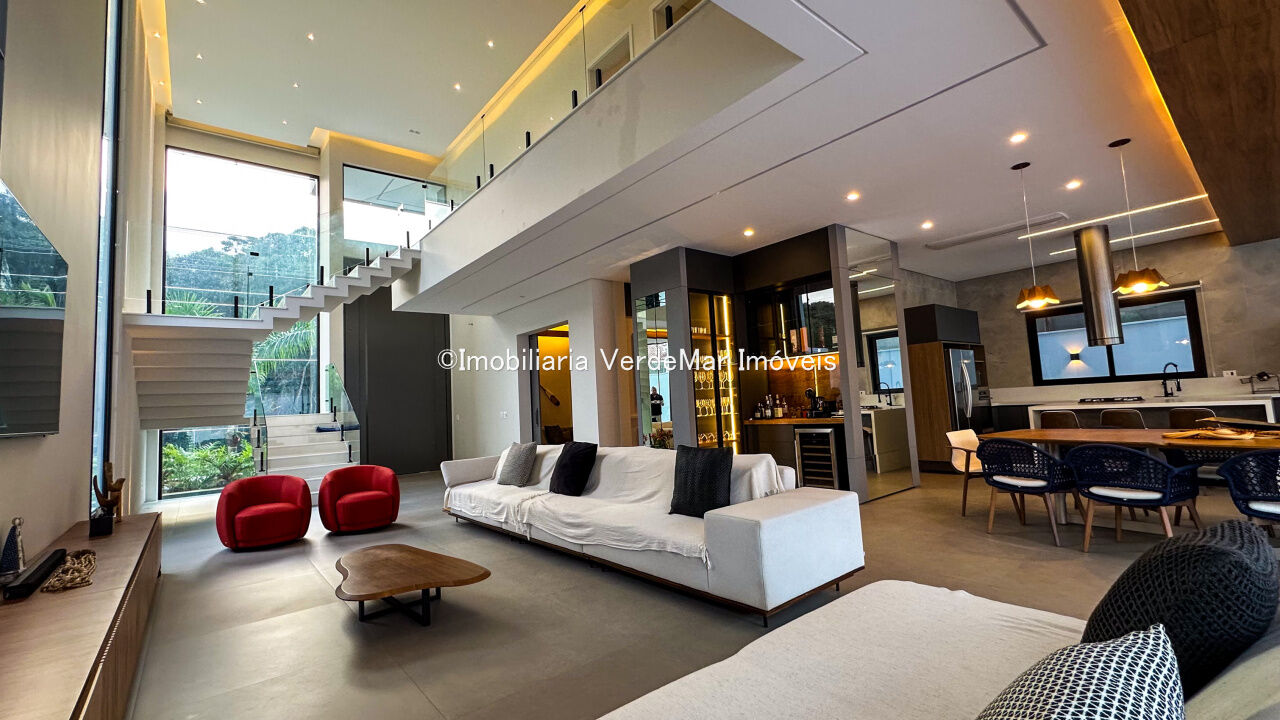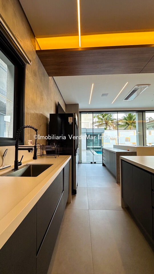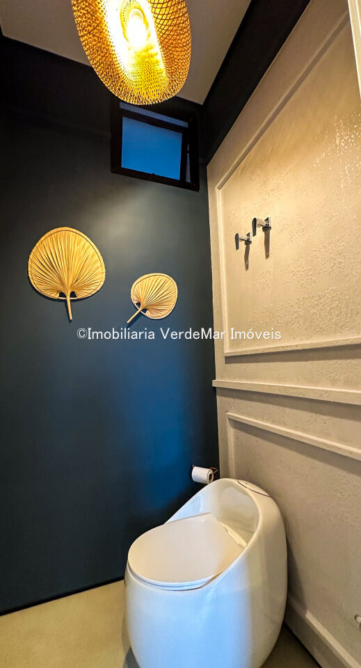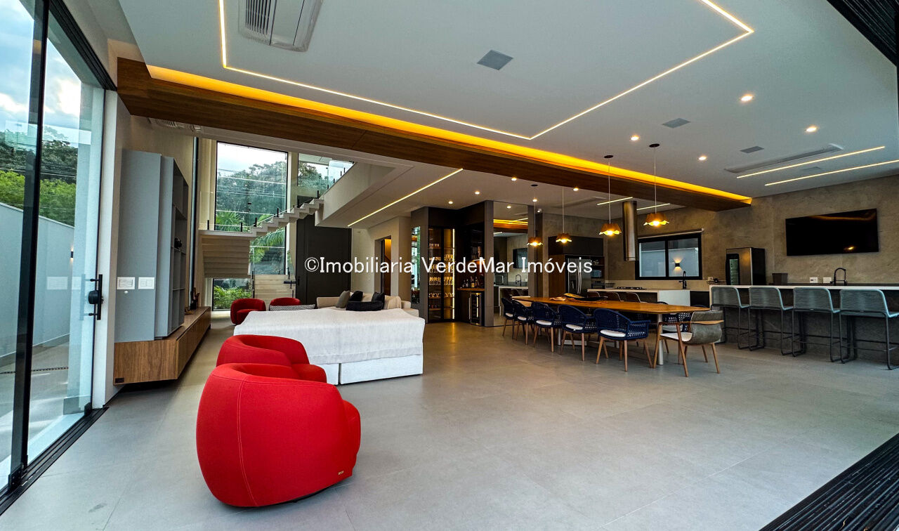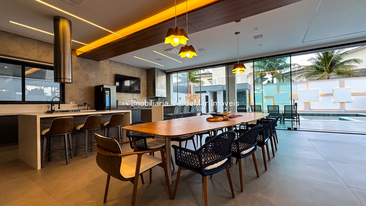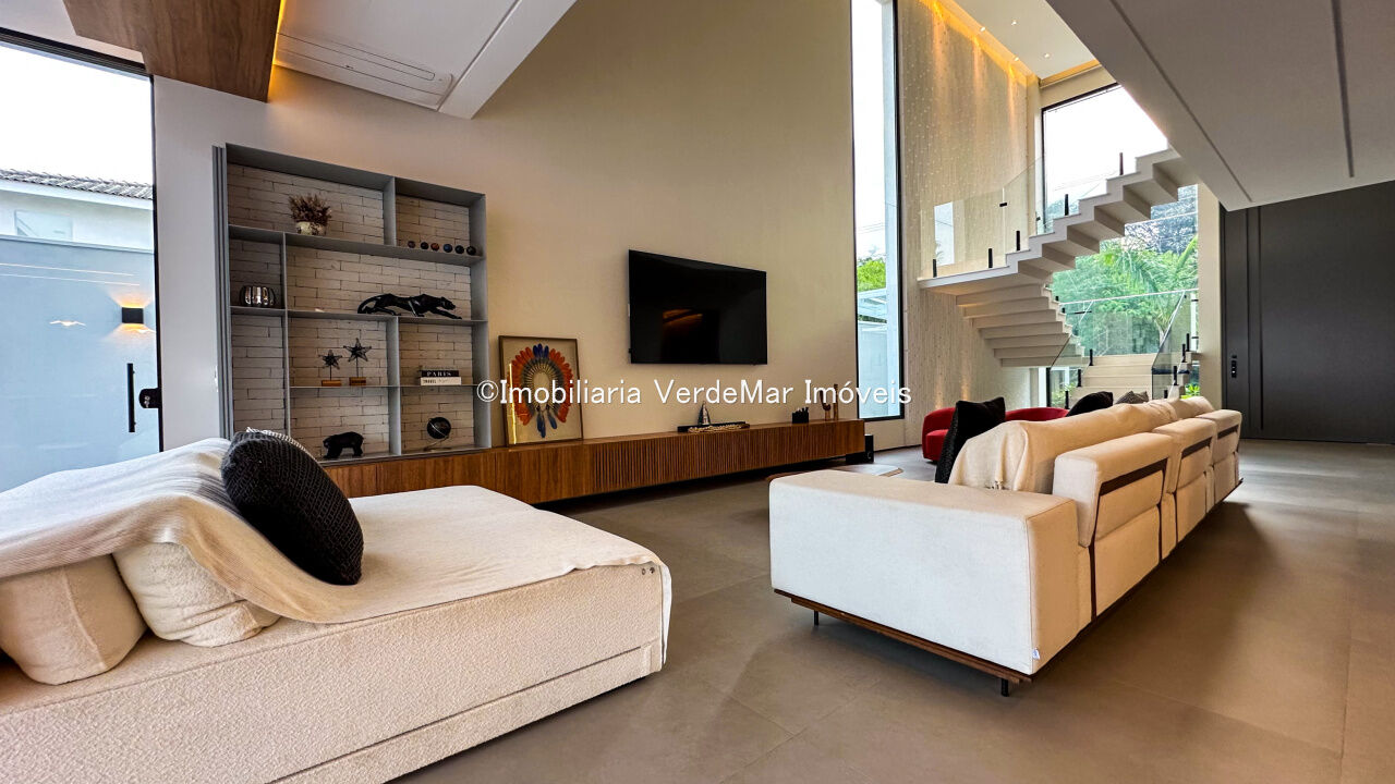 Casa nova à venda no Jardim Acapulco na Praia de Pernambuco em Guarujá, projeto moderno, mobiliado e decorado, com 05 suítes sendo 01 máster com hidromassagem, sala para 03 ambientes com varanda, cozinha planejada integrada, despensa, área de serviço e dependência de empregada.