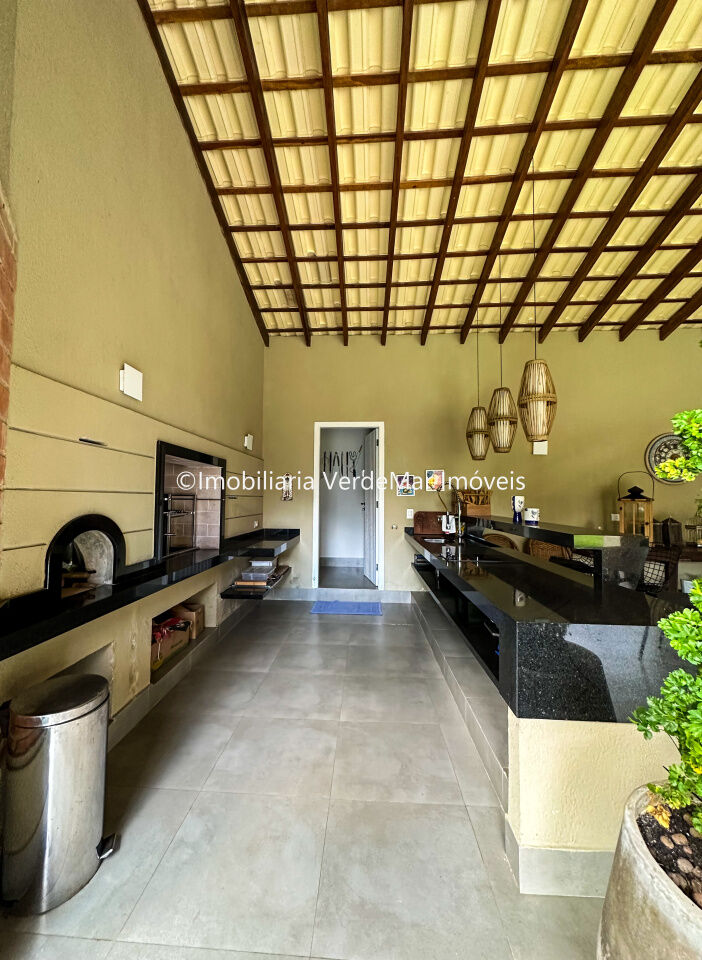 Lazer com amplo jardim, piscina com cascata e deck solarium, amplo espaço gourmet com churrasqueira, cozinha de apoio, despensa e forno de pizza.