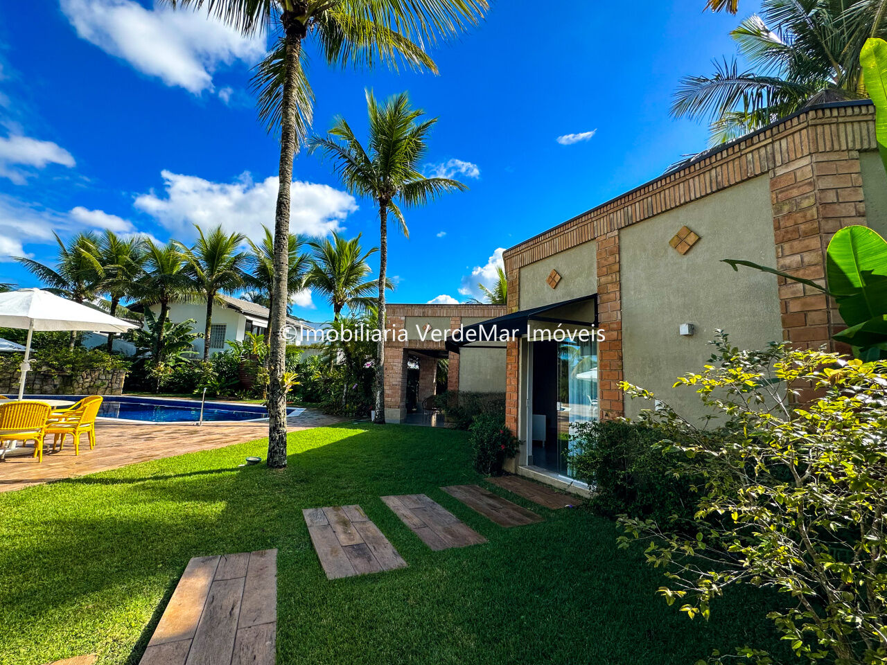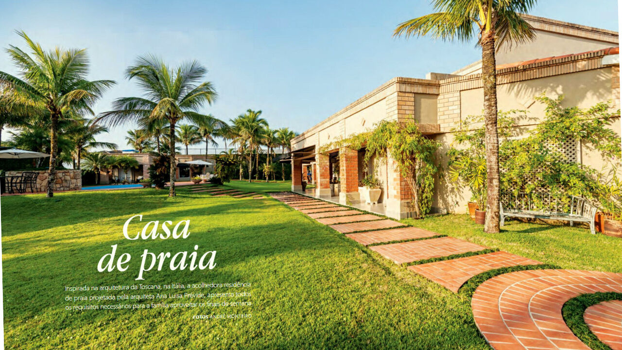 Casa de praia inspirada na arquitetura da Toscana no Jardim Acapulco na Praia de Pernambuco em Guarujá, frente praça, mobiliada e decorada, com 07 dormitórios sendo 05 suítes sendo 01 máster com closet e hidromassagem, sala para 3 ambientes com varanda, jardim interno, lavabo, home theater, copa, cozinha planejada, ar condicionado em todos os cômodos, despensa, área de serviço e dependência de empregada.