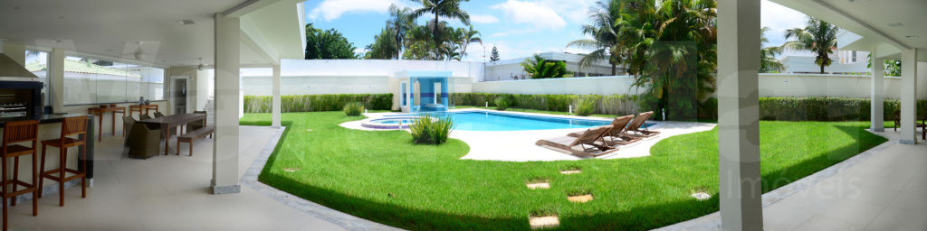 Casa no Jardim Acapulco na Praia de Pernambuco no Guarujá, decorada, com 7 suítes climatizadas sendo 6 com closet's, 1 máster com hidromassagem, sala para 2 ambientes com terraço mobiliável, lavabo, home theater, sala íntima, sala de jantar, cozinha planejada, despensa, área de serviço e casa de caseiro planejada.
