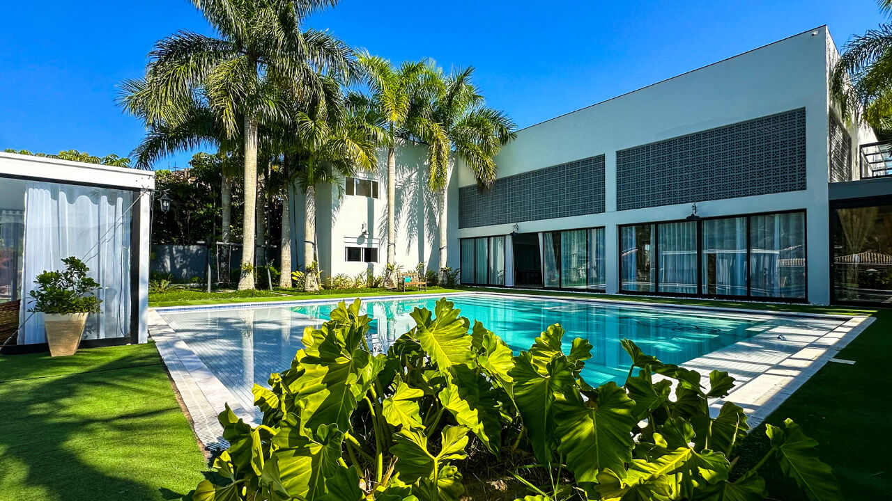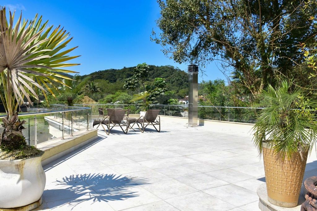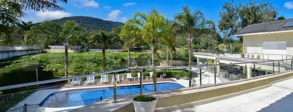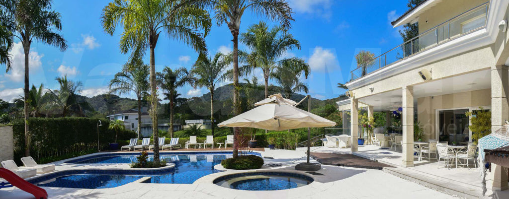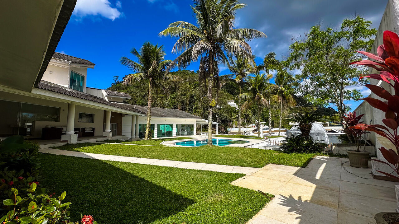 Lazer com jardim e rico paisagismo, piscina com spa e deck, terraço gourmet com churrasqueira, forno de pizza e chopeira, rampa e píer para embarcação até 80 pés.