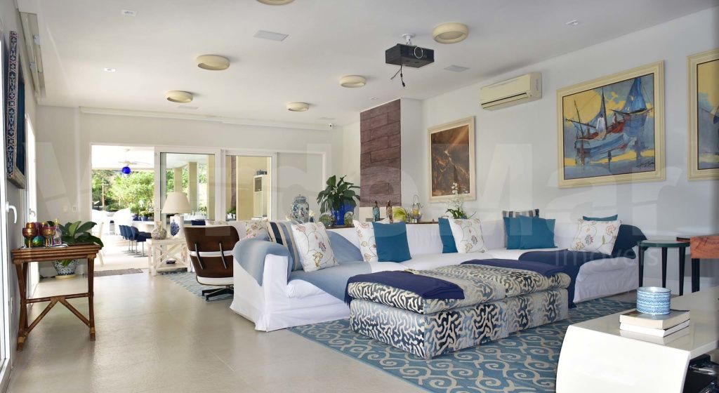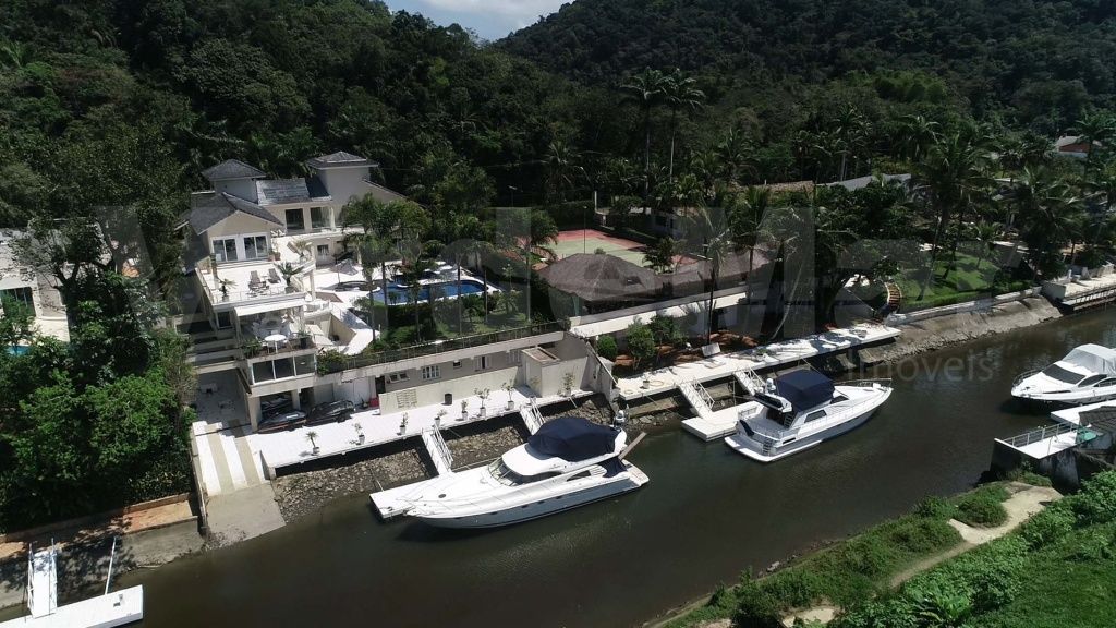 Mansão à venda no Residencial Marina Guarujá no canal de Bertioga, mobiliada e decorada, com vista para o canal e montanhas, 06 suítes climatizadas sendo a máster com closet e hidromassagem, amplo living para 02 ambientes com varanda mobiliada, lareira, home theater, lavabo, sala de jantar, copa e cozinha planejada, despensa, lavanderia, dependência de empregada e casa de caseiro completa.