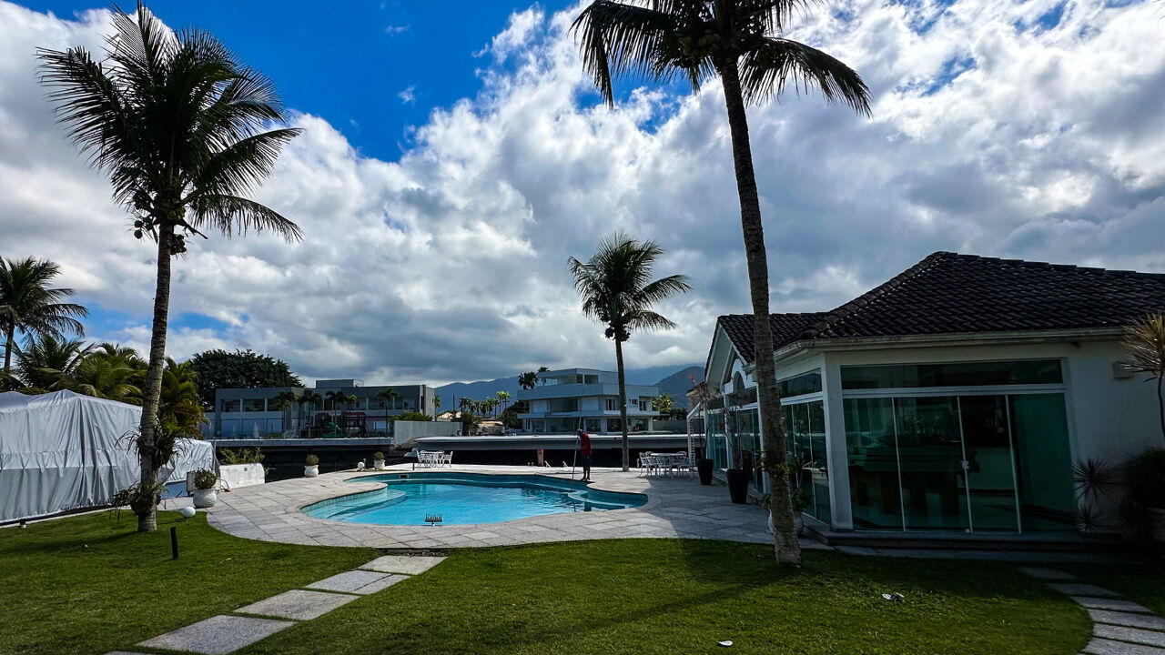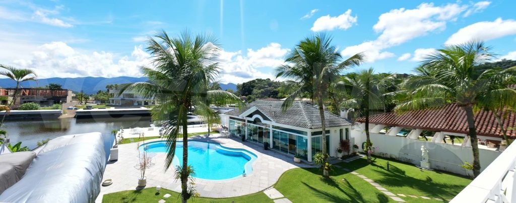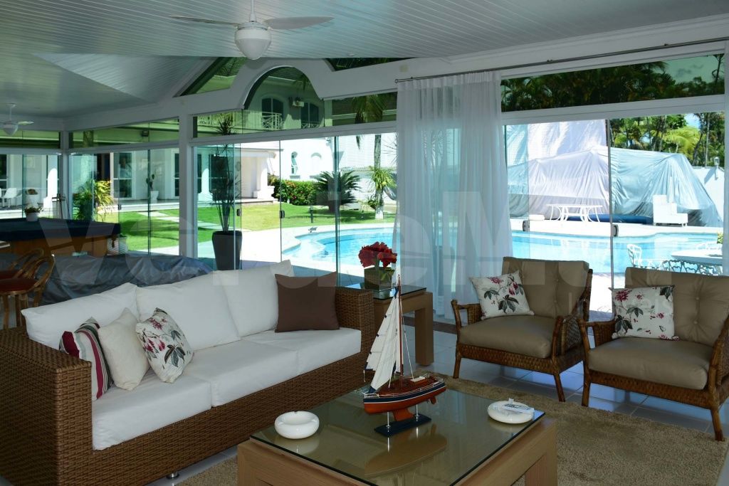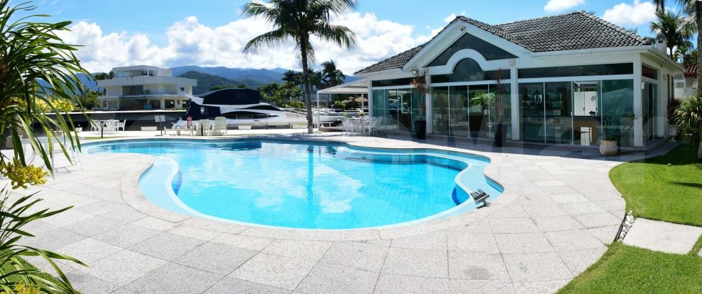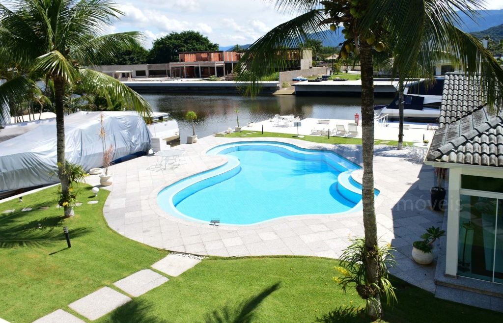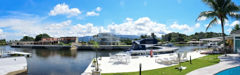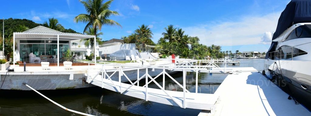 Casa com pier no Residencial Marina Guarujá no canal de Bertioga, com 5 suítes sendo a máster com closet e hidromassagem, sala para 4 ambientes com varanda, lavabo, varanda, cozinha planejada, copa, despensa, lavanderia e casa de caseiro.