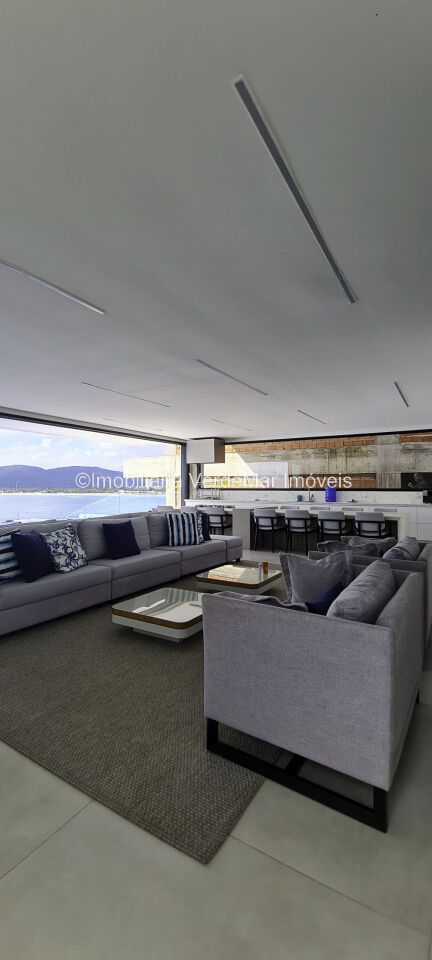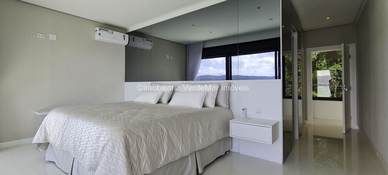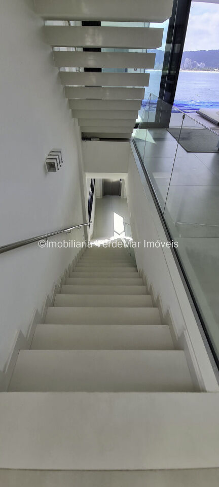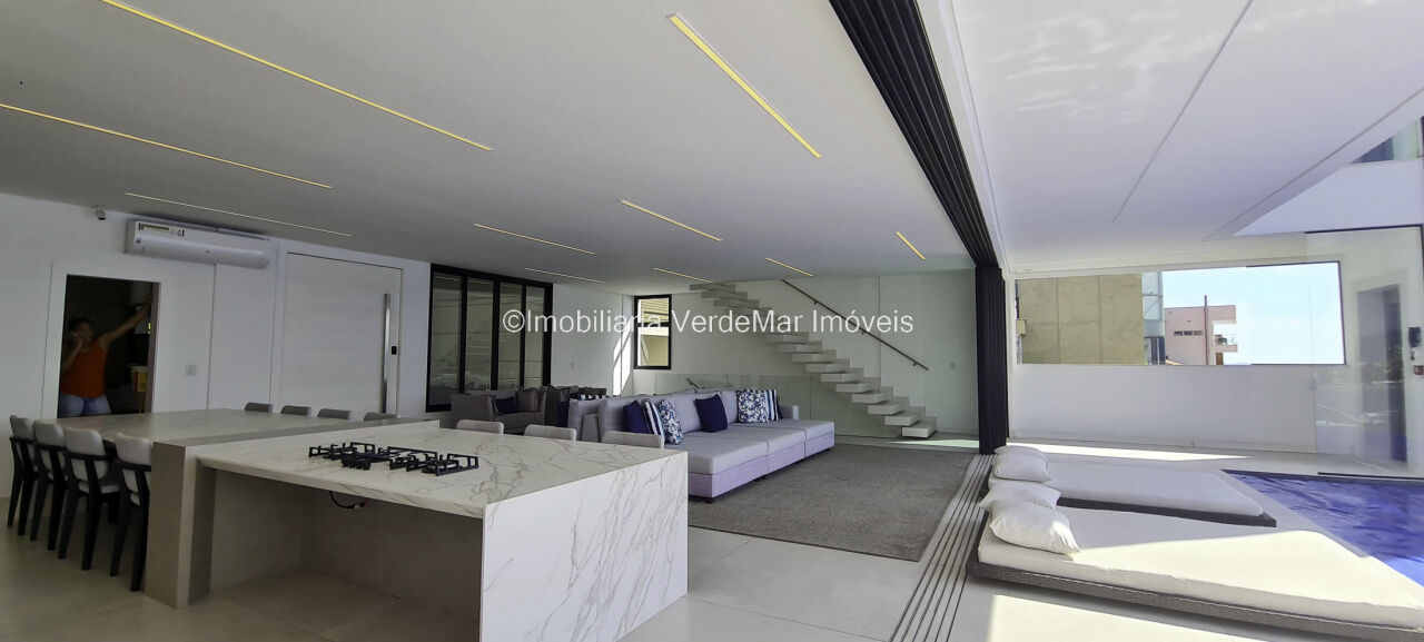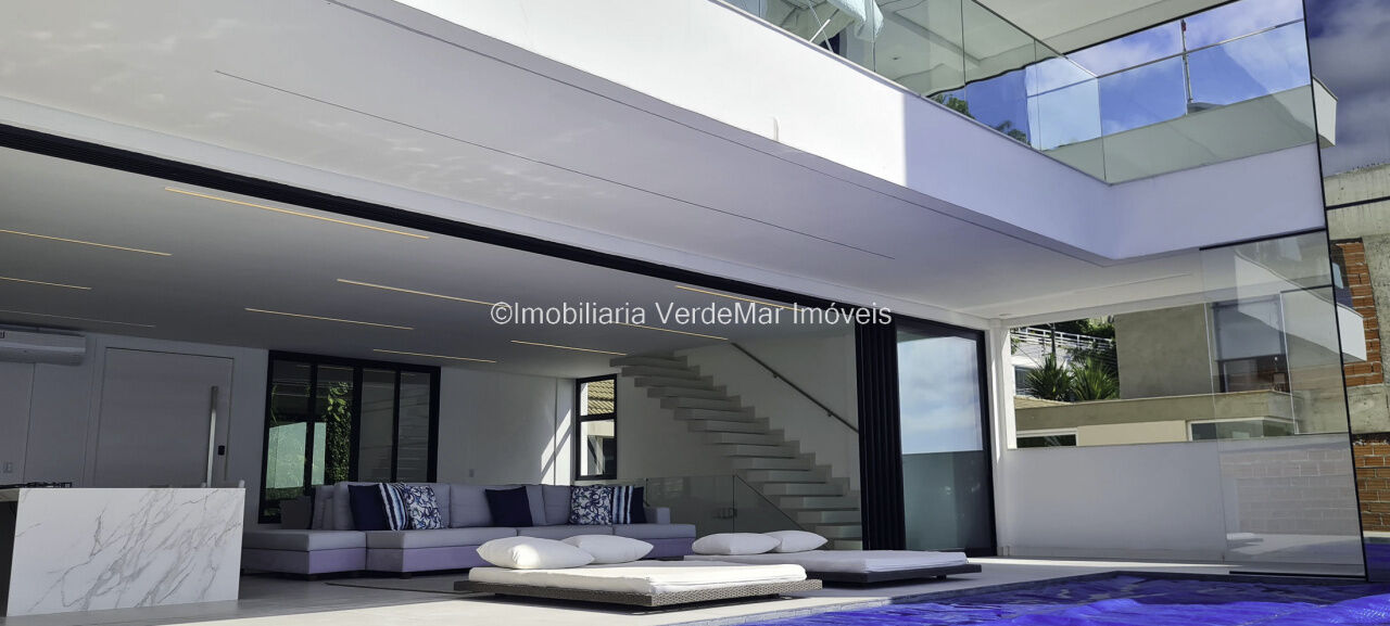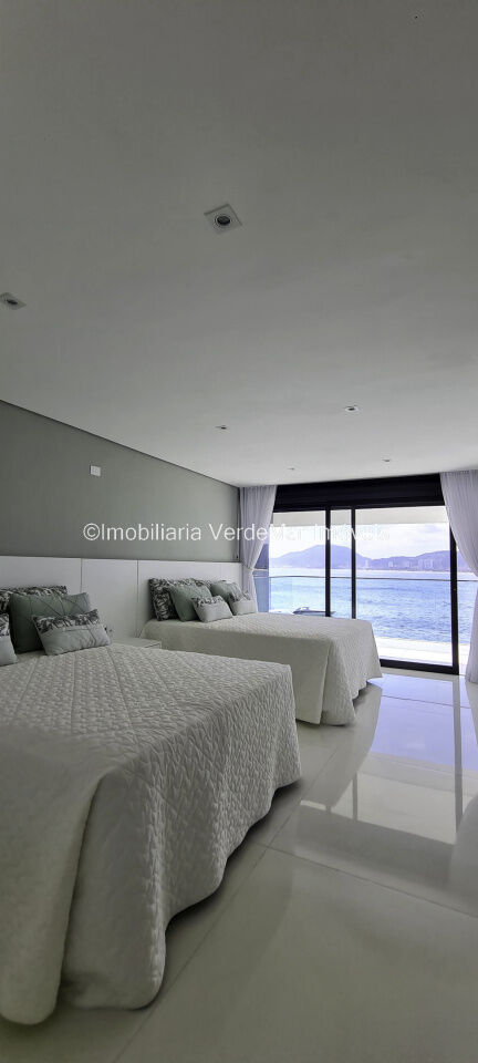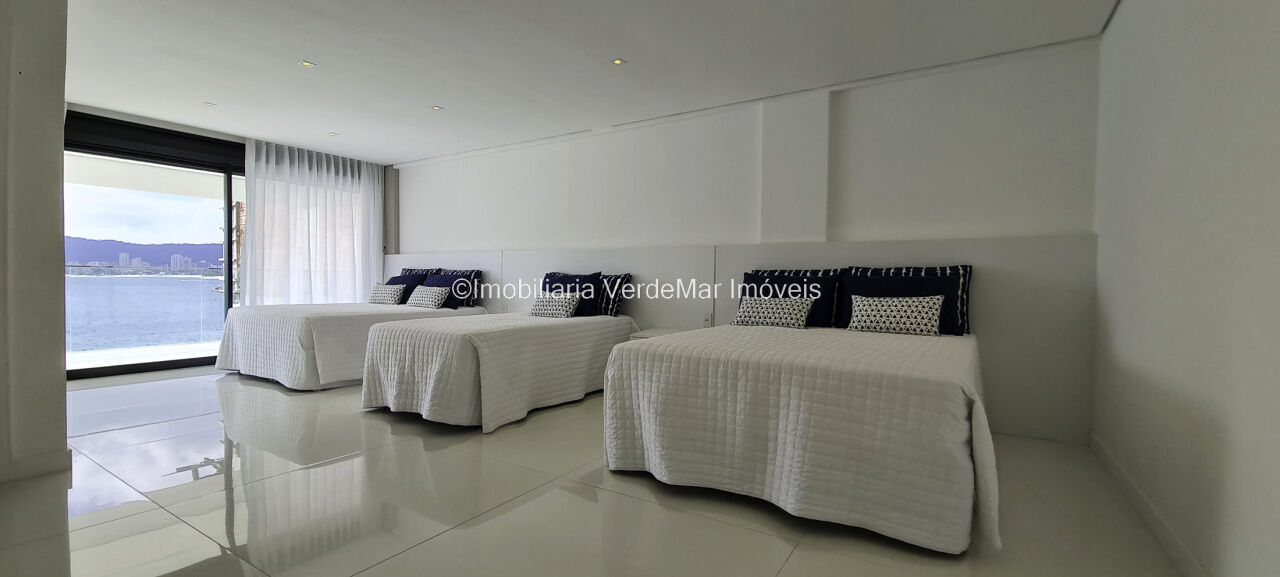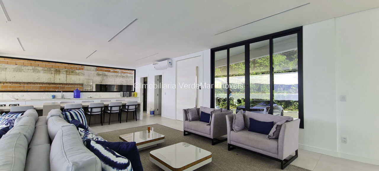 Belíssima casa nova à venda no condomínio Península na praia da Enseada em Guarujá. Com 06 suítes mobiliadas e com ar condicionado, amplo living decorado em 02 ambientes com sacada e cozinha planejada integrada, despensa, lavabo, elevador panorâmico, salão de jogos com vista ao mar e home theater.